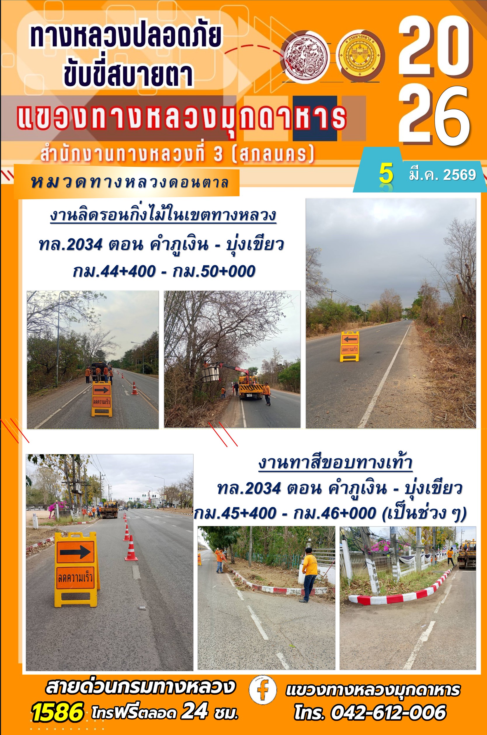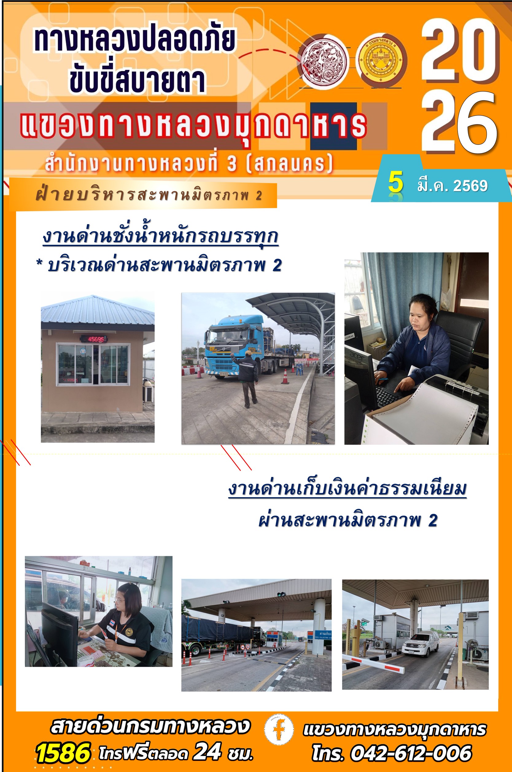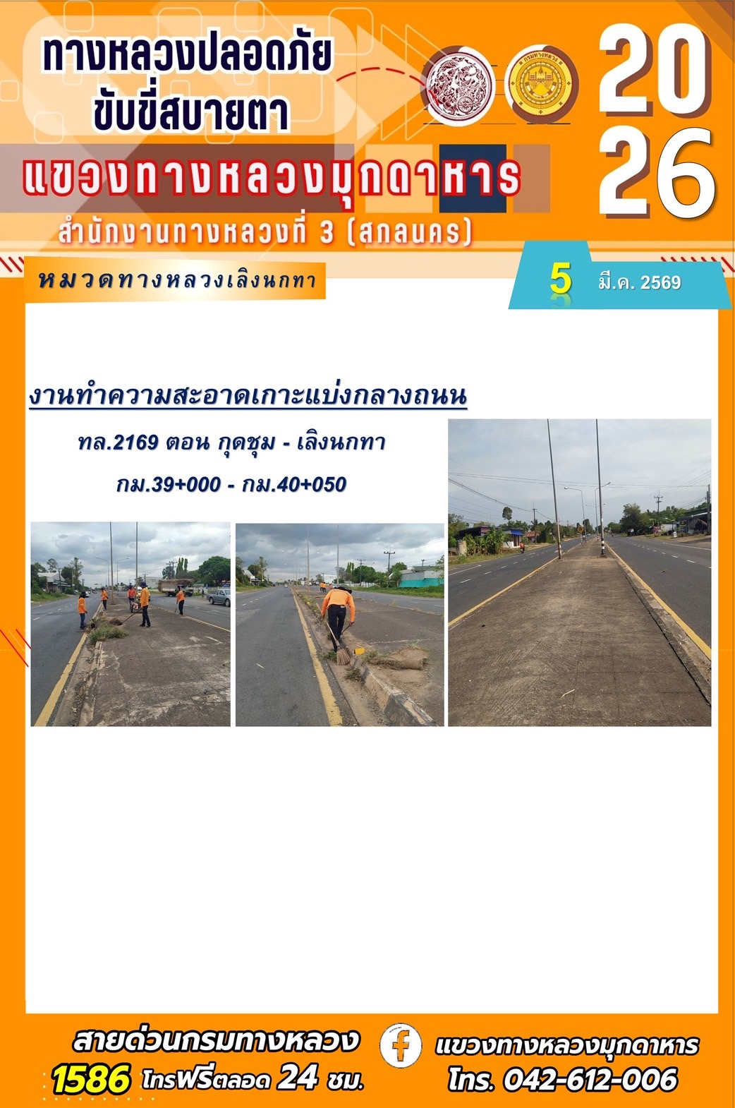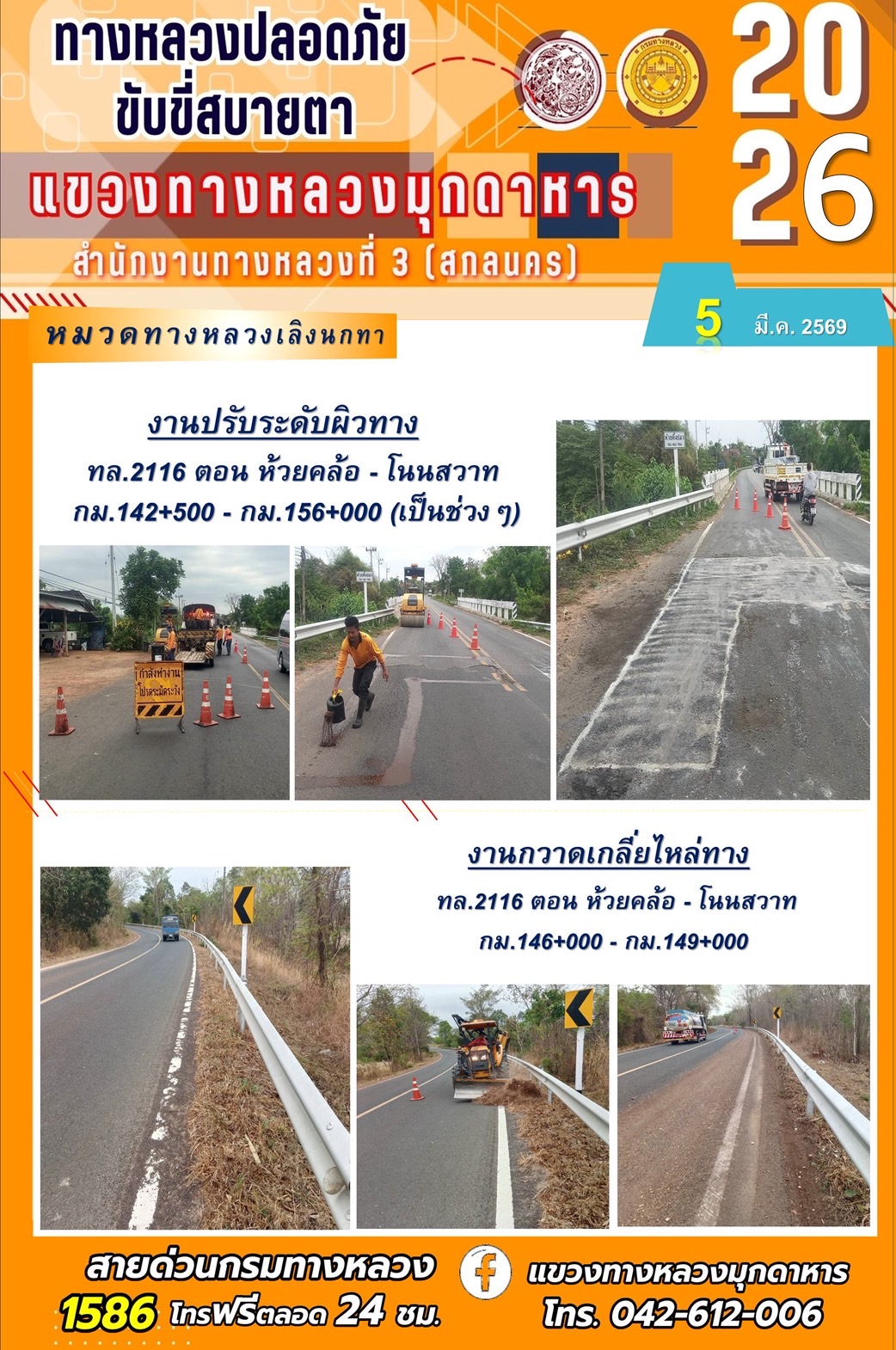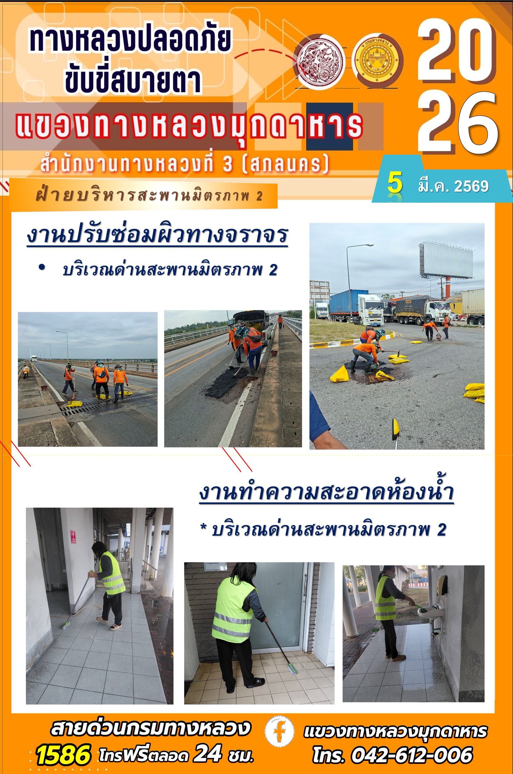 ข้อมูลภาพกิจกรรม : ประจำวันที่ 5 มีนาคม 2569 โครงการทางหลวงปลอดภัย ขับขี่สบายตา หน่วยงานในสังกัดแขวงทางหลวง