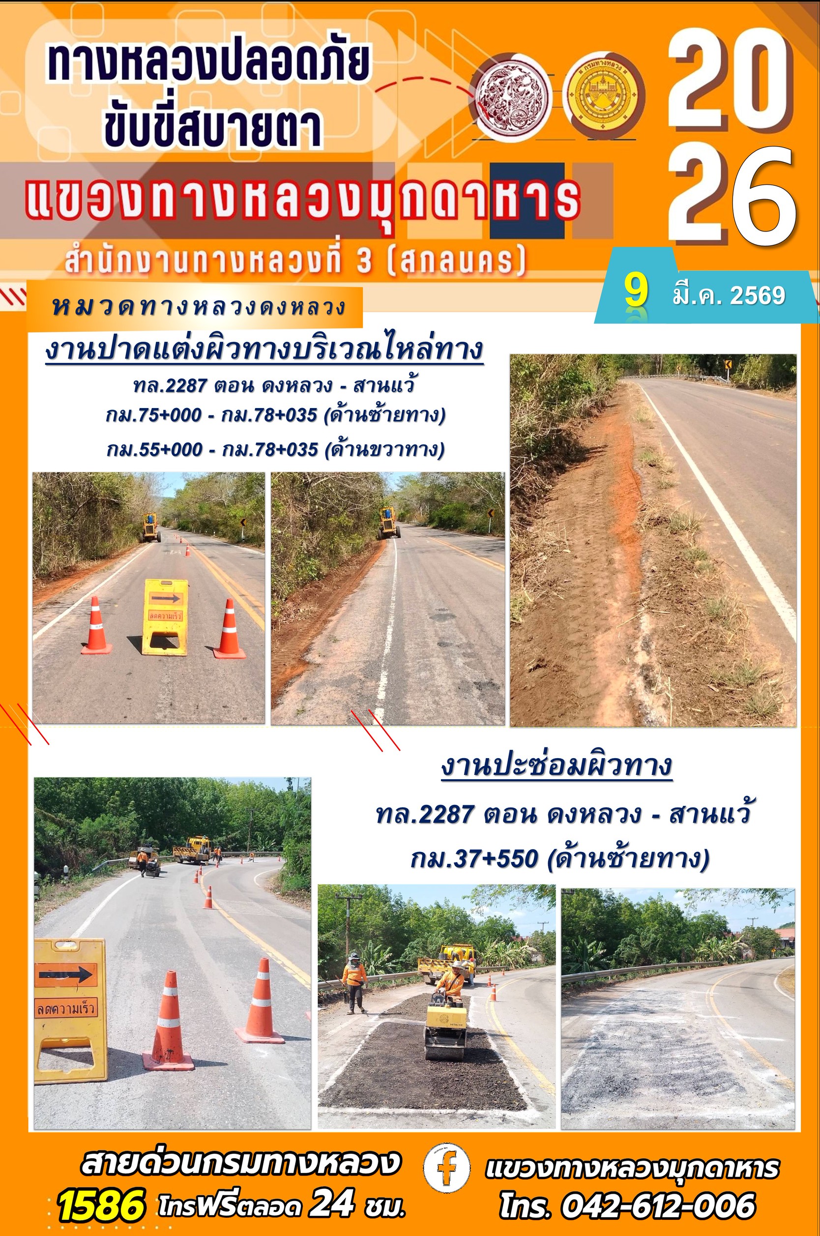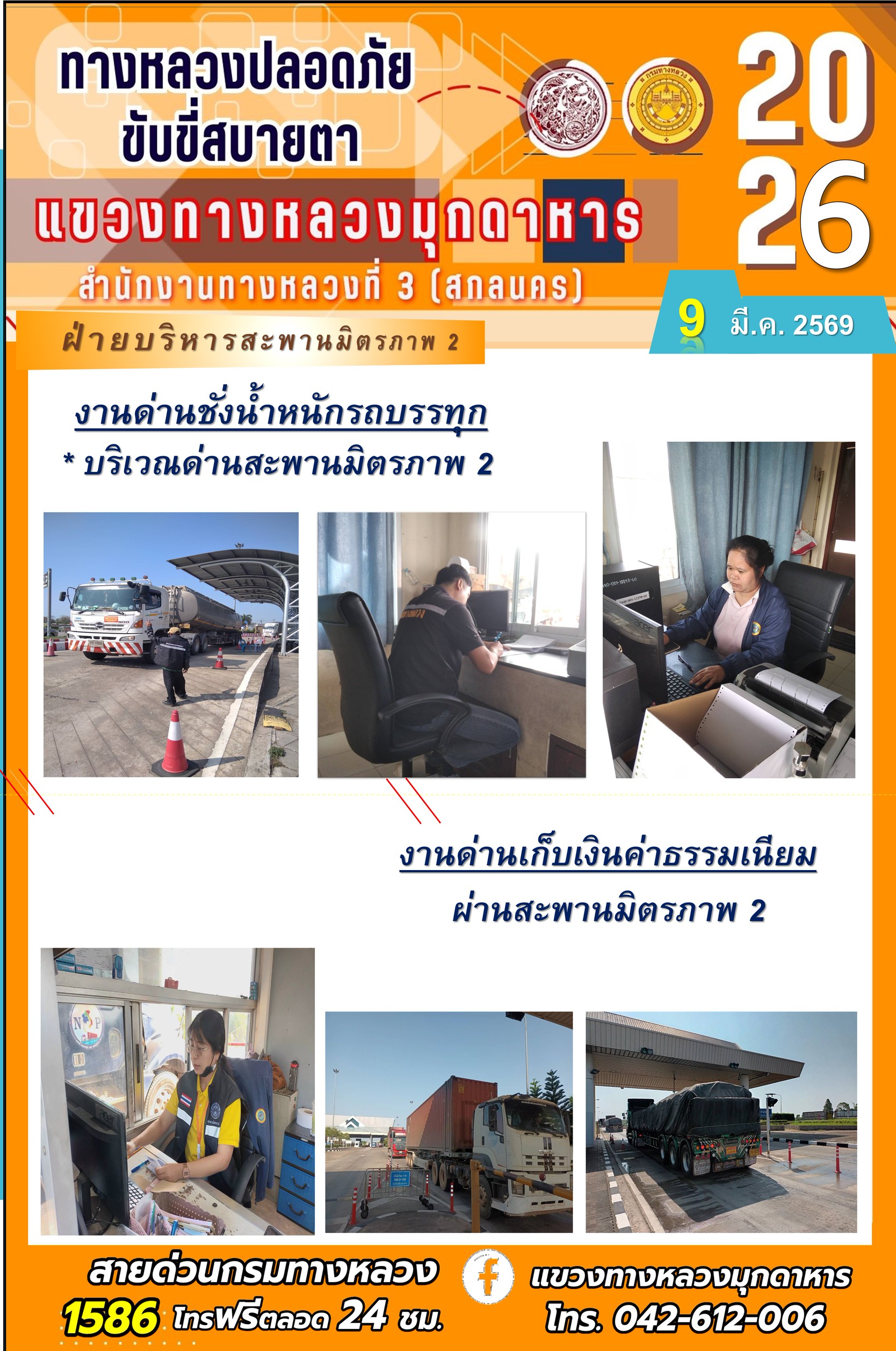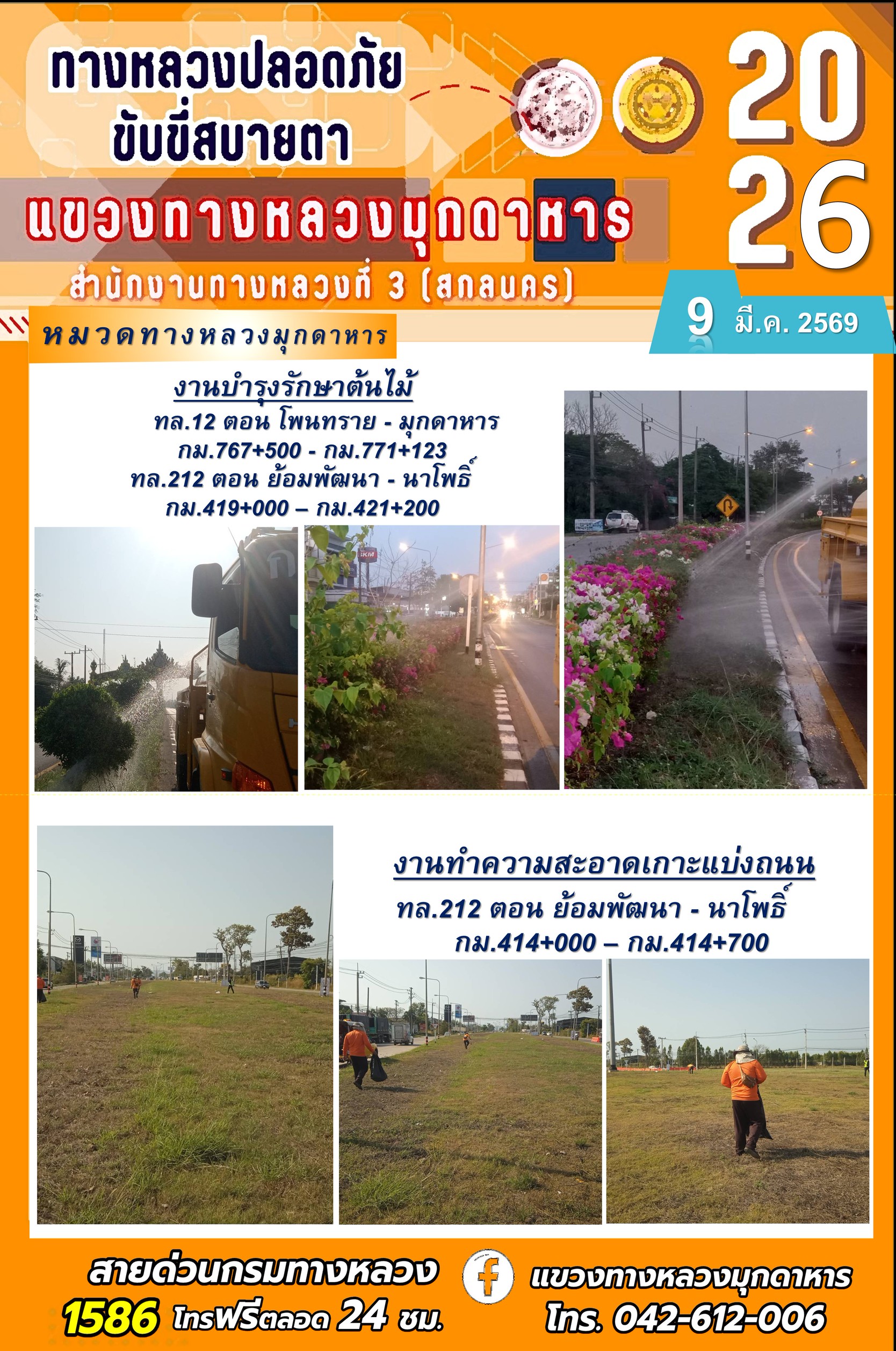 ประจำวันที่ 9 มีนาคม 2569 โครงการทางหลวงปลอดภัย ขับขี่สบายตา หน่วยงานในสังกัดแขวงทางหลวง