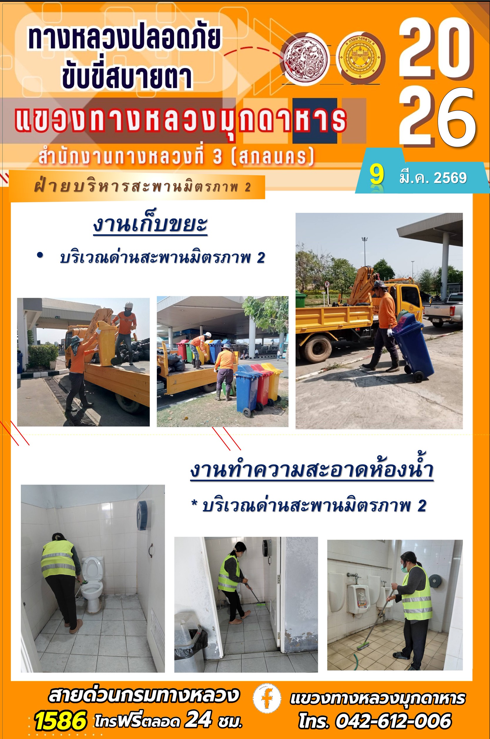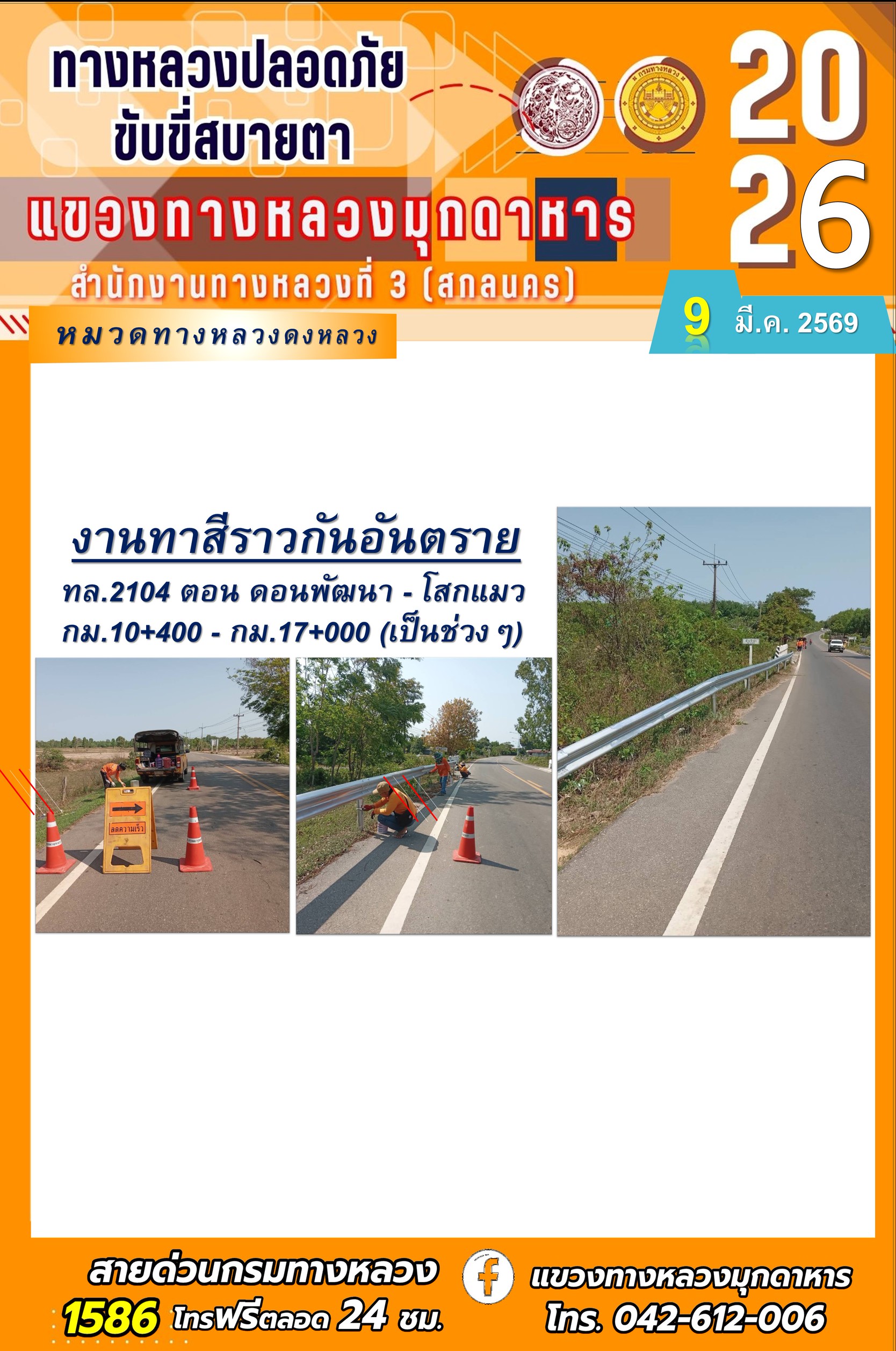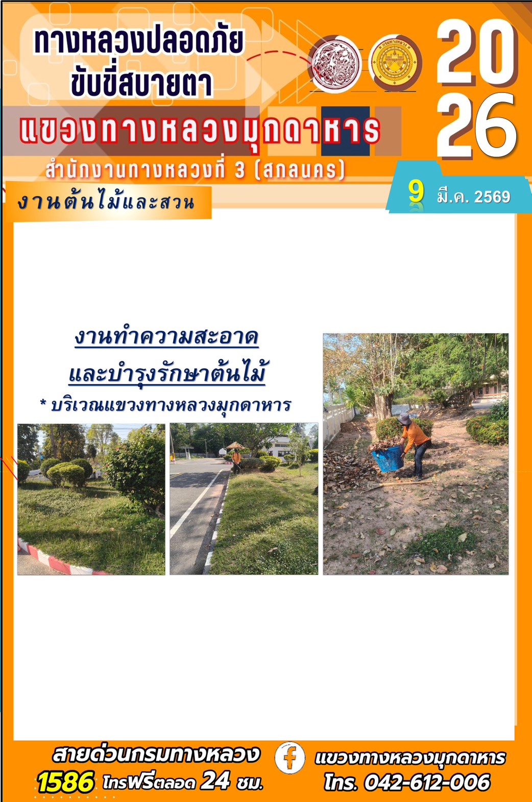 ประจำวันที่ 9 มีนาคม 2569 โครงการทางหลวงปลอดภัย ขับขี่สบายตา หน่วยงานในสังกัดแขวงทางหลวง