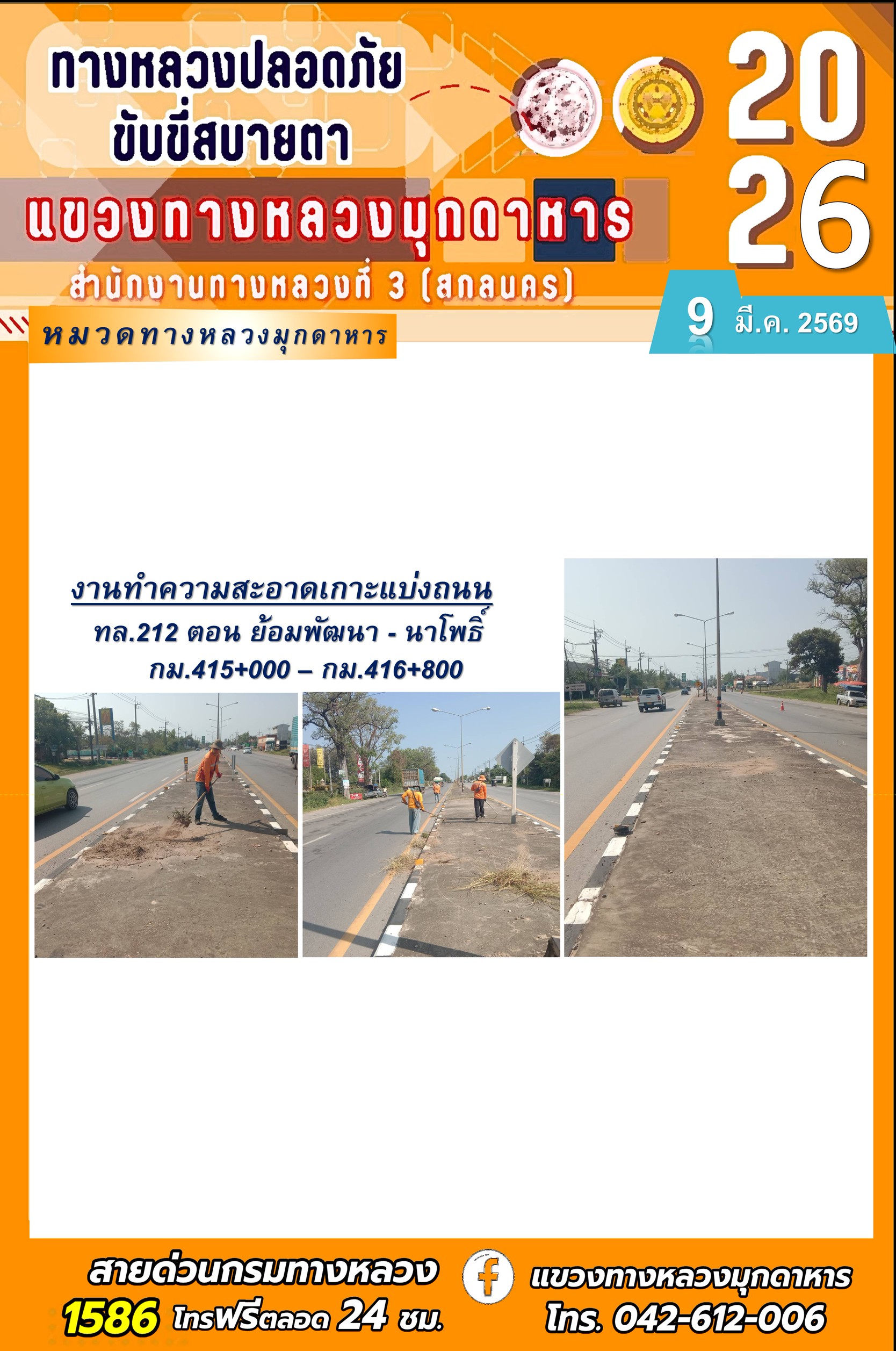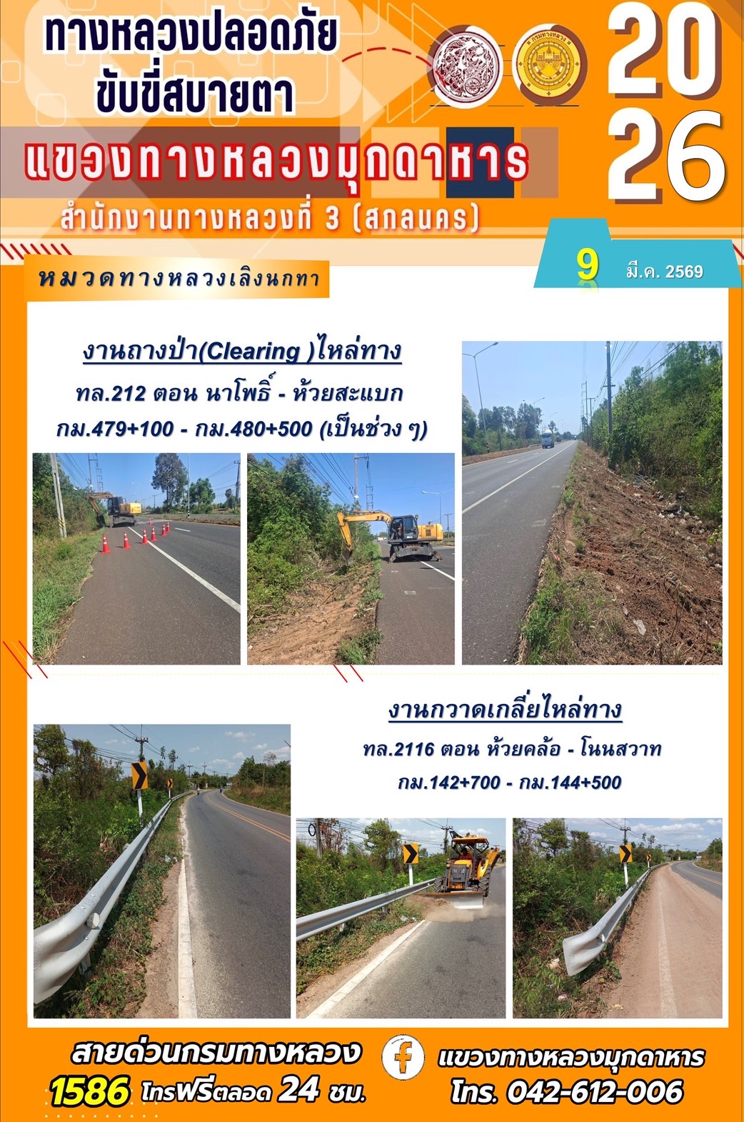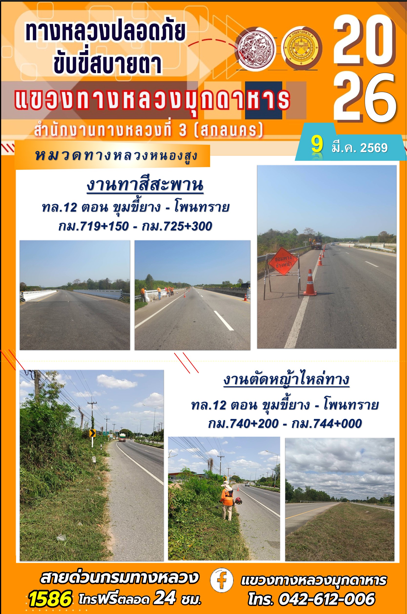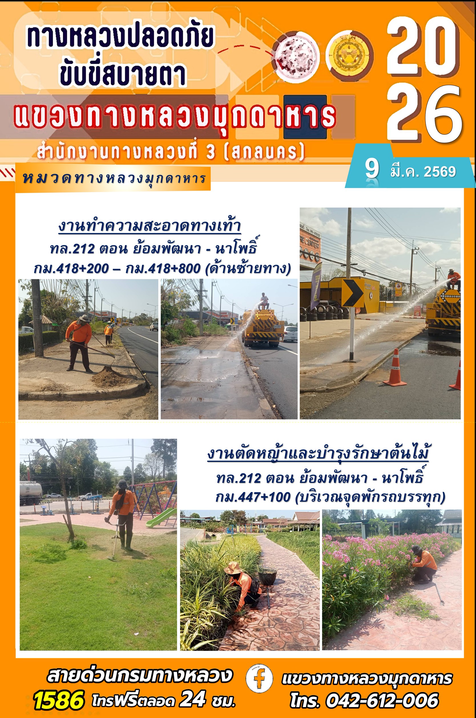 ข้อมูลภาพกิจกรรม : ประจำวันที่ 9 มีนาคม 2569 โครงการทางหลวงปลอดภัย ขับขี่สบายตา หน่วยงานในสังกัดแขวงทางหลวง