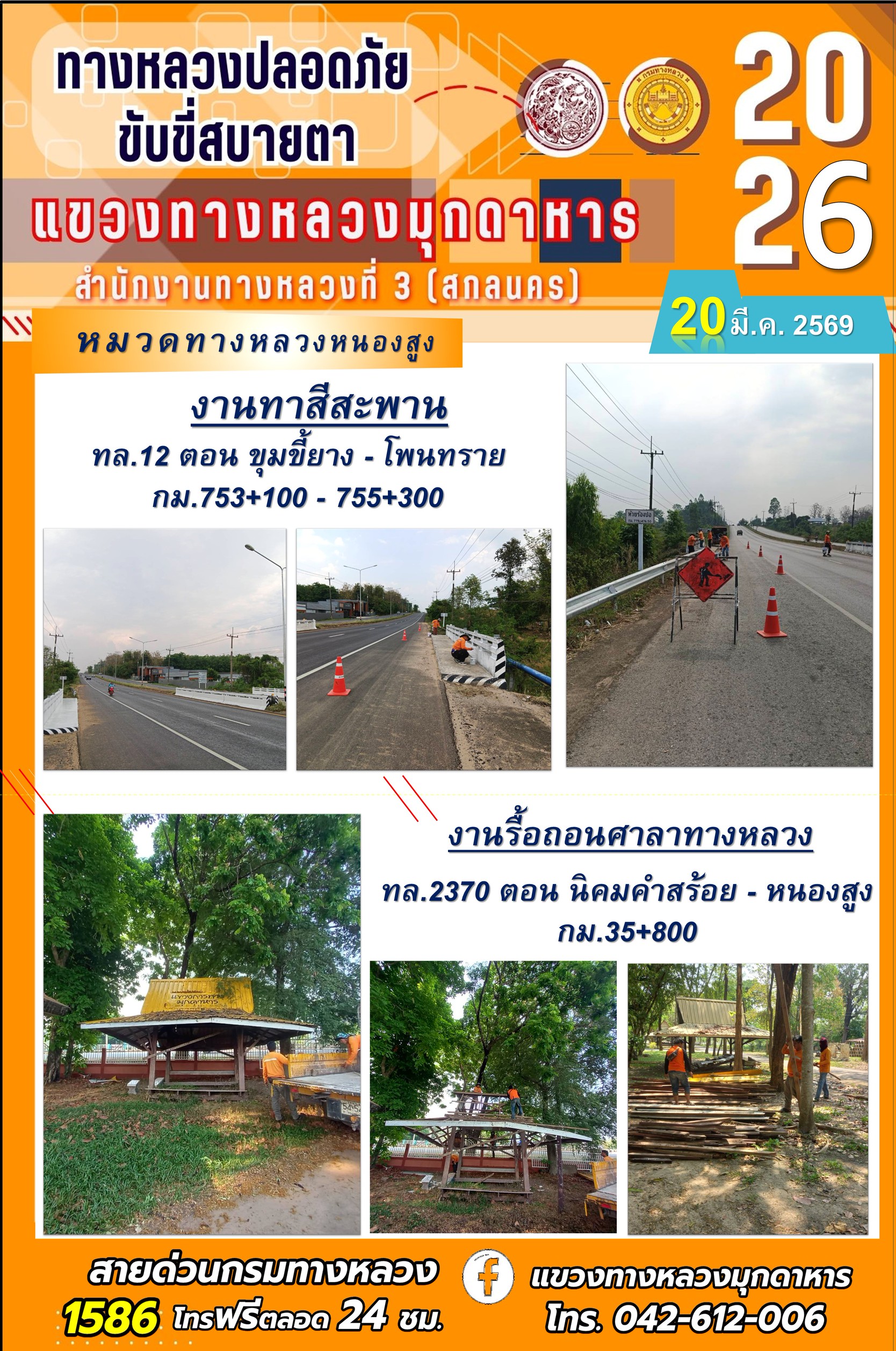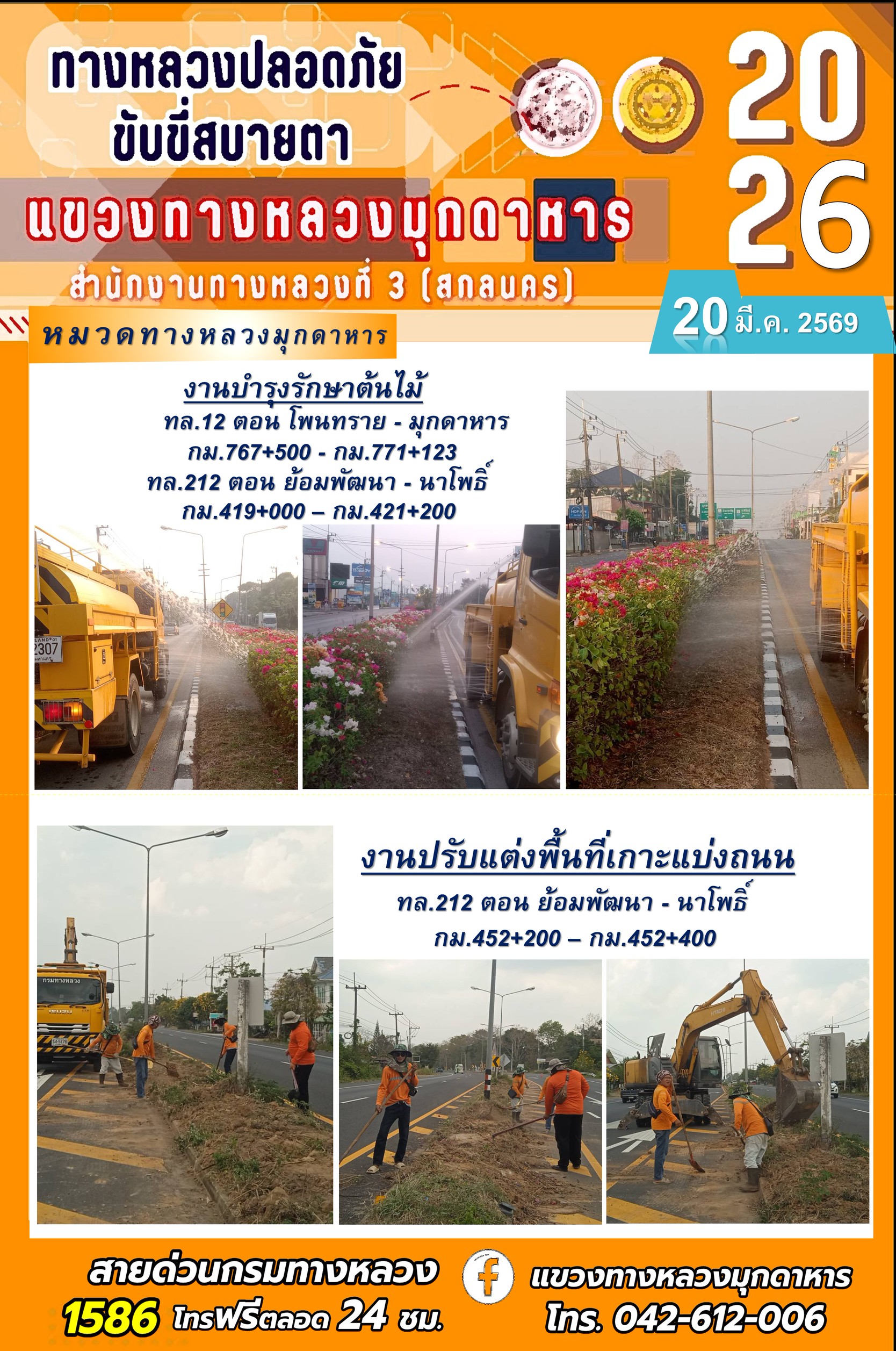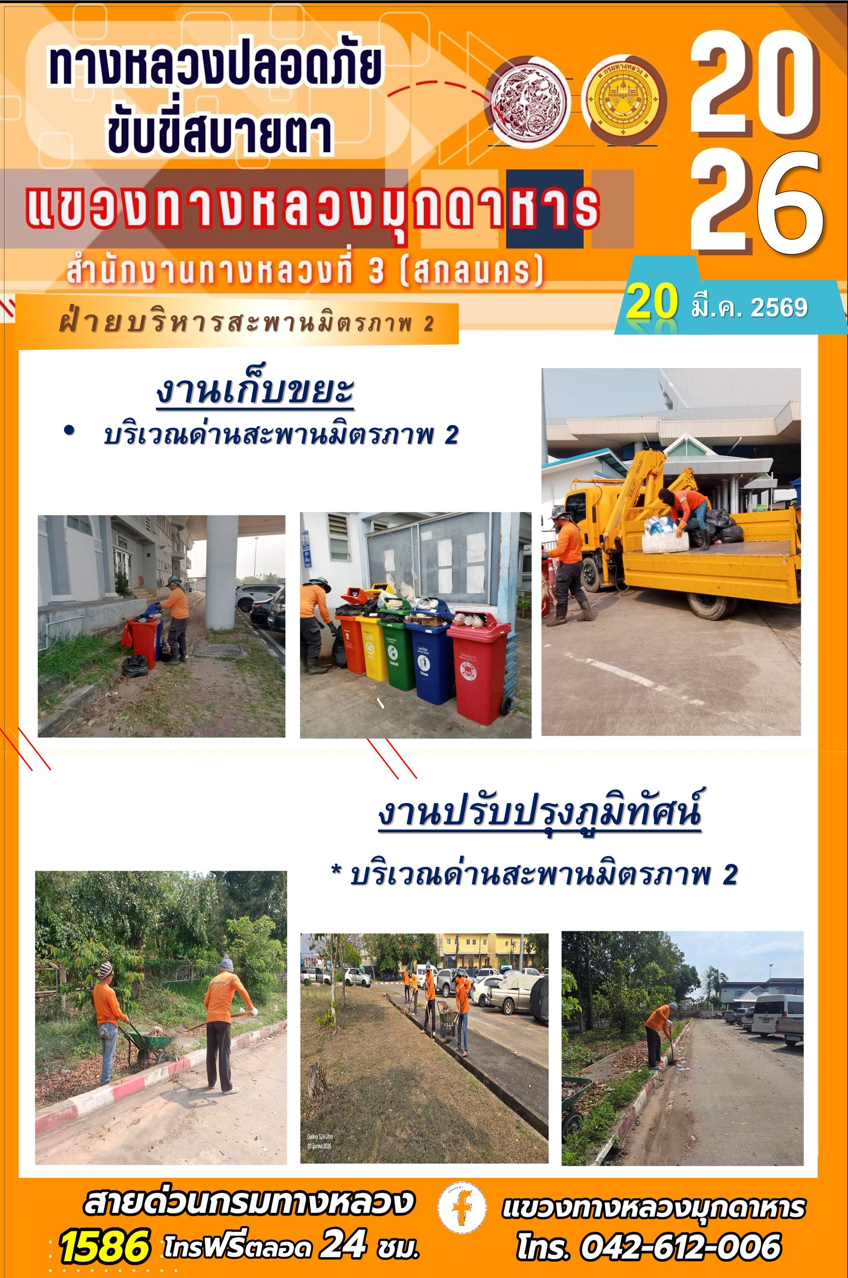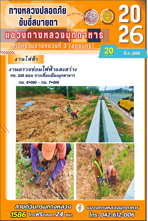 ข้อมูลภาพกิจกรรม : ประจำวันที่ 20 มีนาคม 2569 โครงการทางหลวงปลอดภัย ขับขี่สบายตา หน่วยงานในสังกัดแขวงทางหลวง