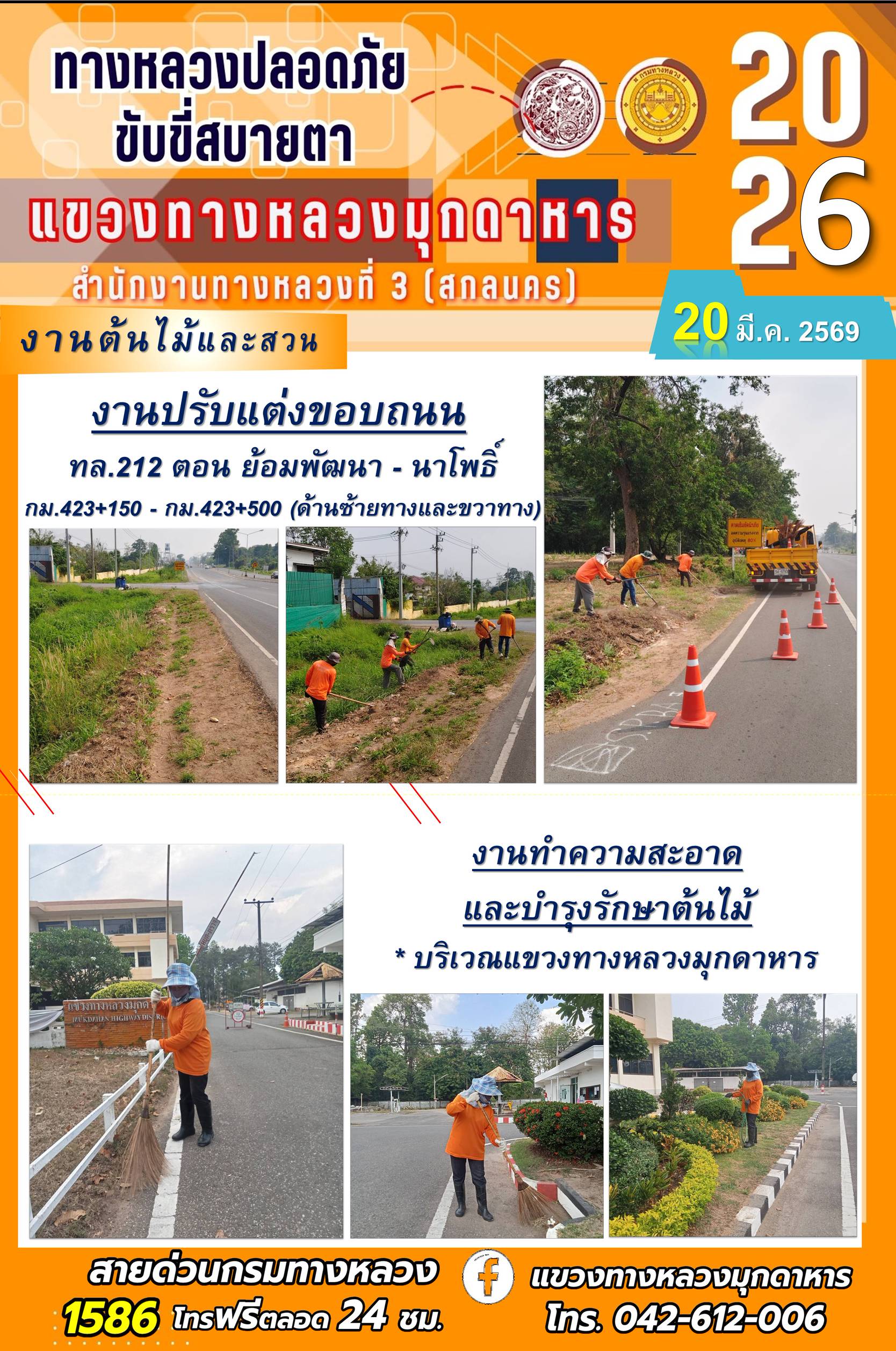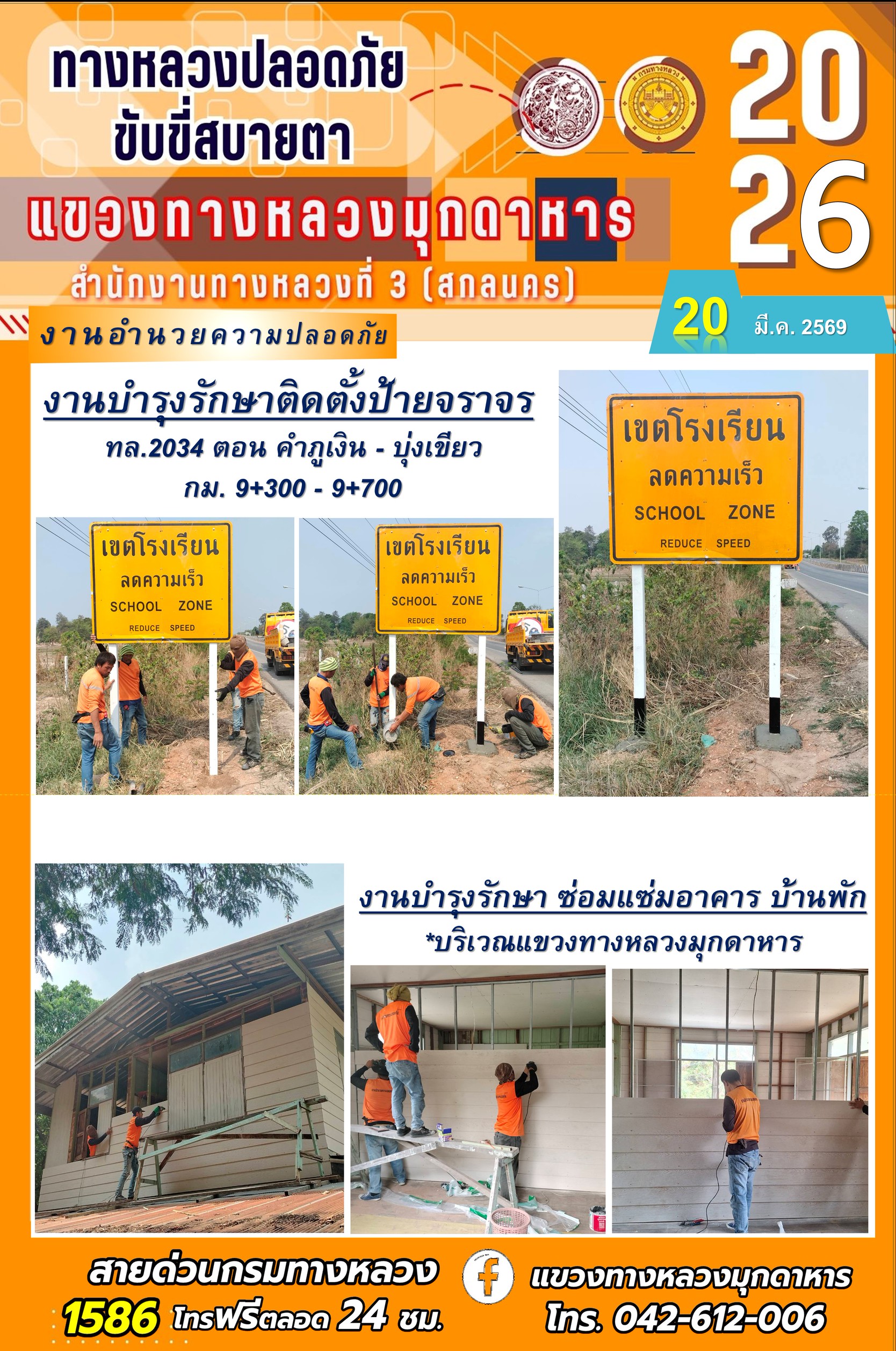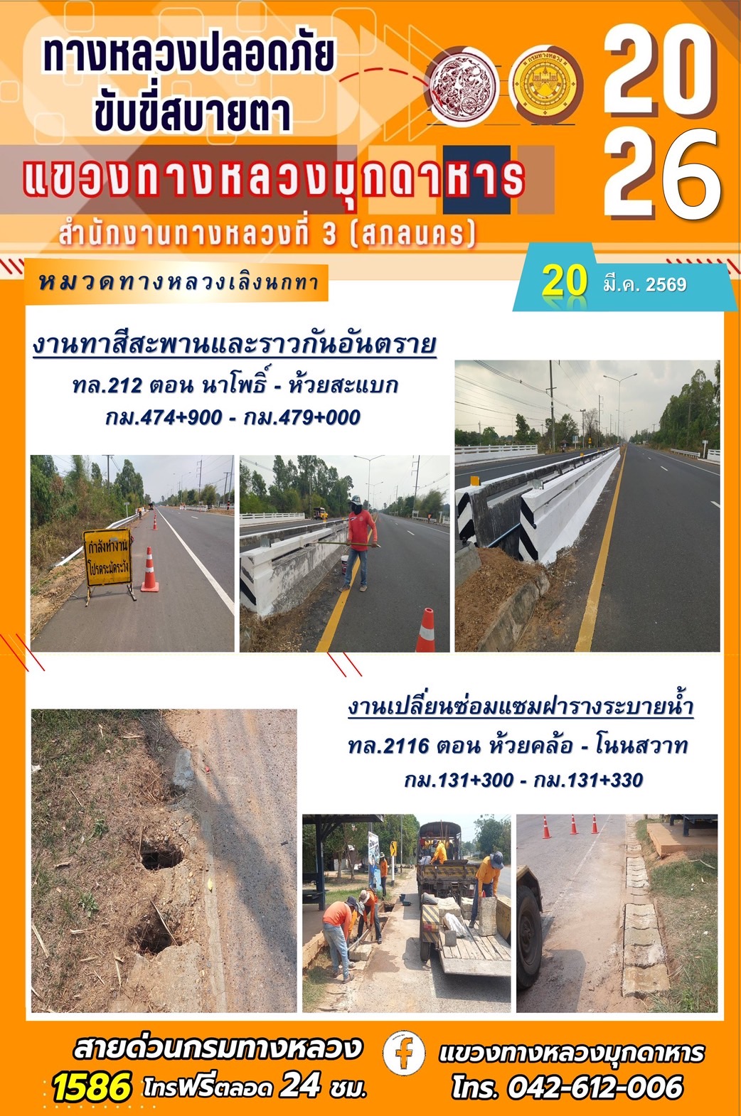 ประจำวันที่ 20 มีนาคม 2569 โครงการทางหลวงปลอดภัย ขับขี่สบายตา หน่วยงานในสังกัดแขวงทางหลวง