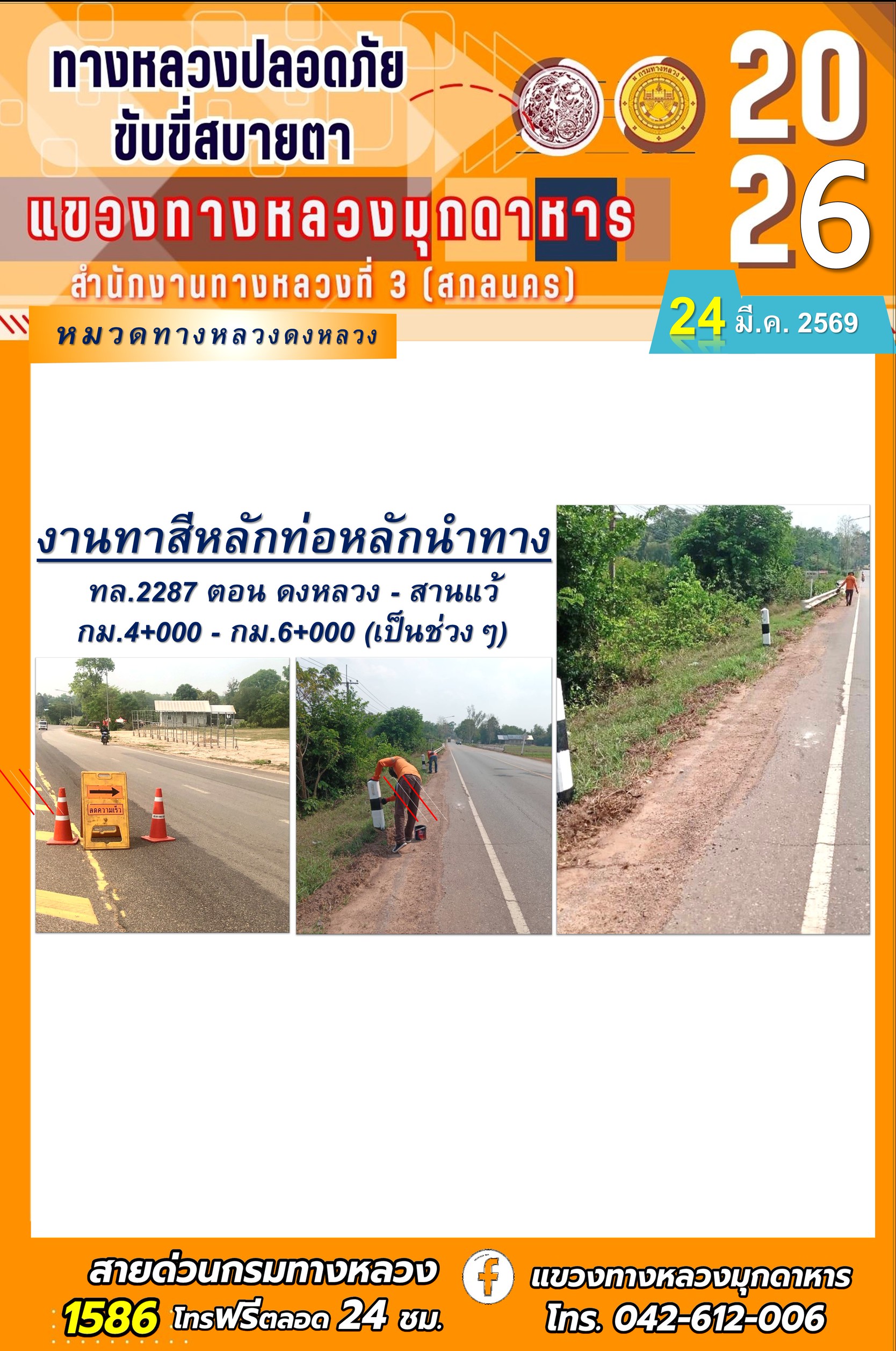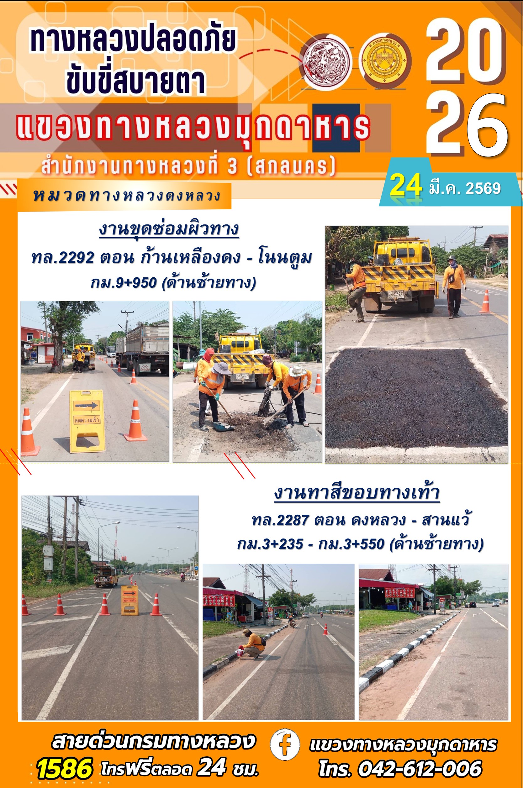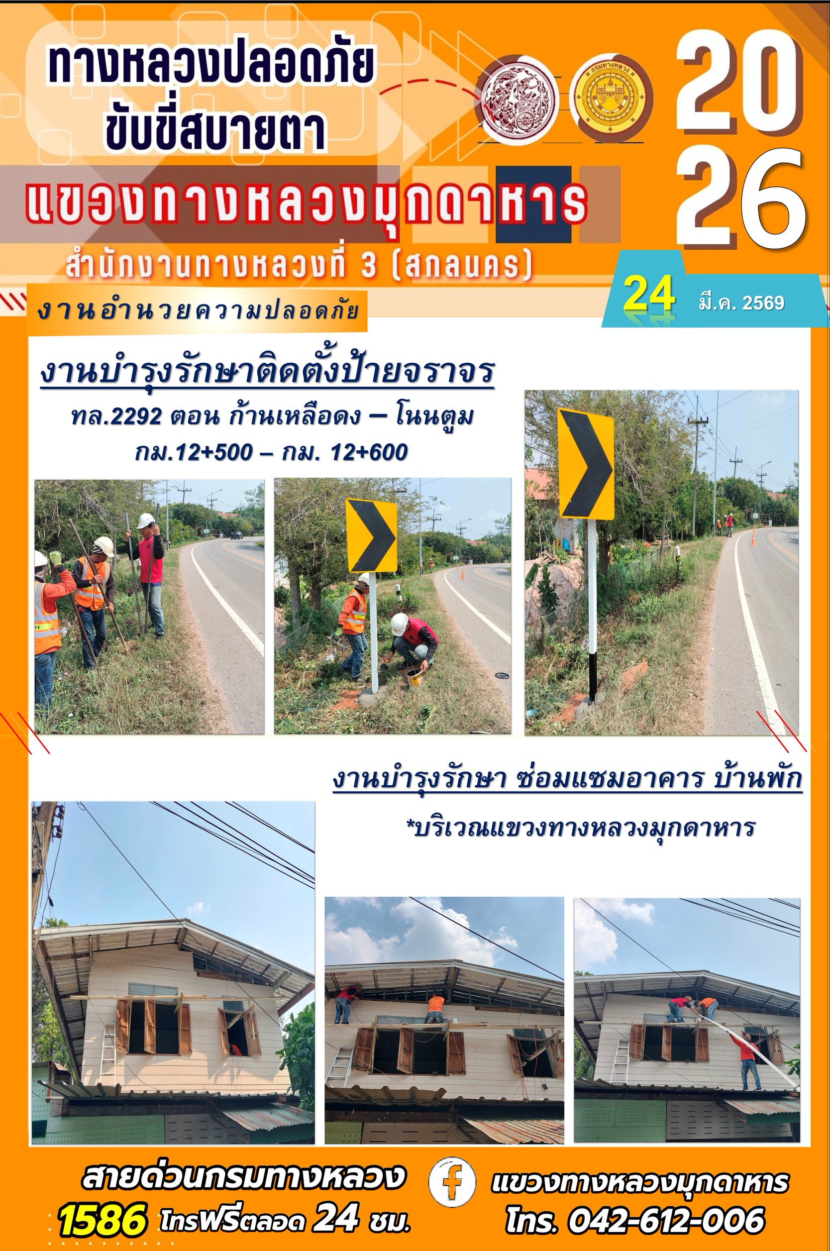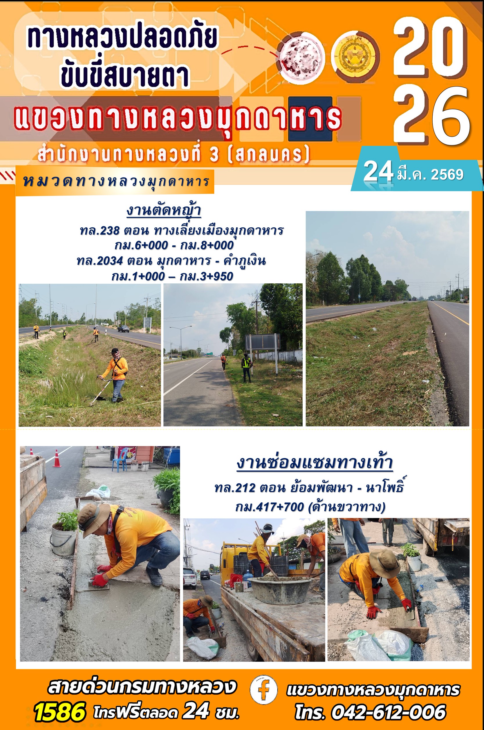 ประจำวันที่ 24 มีนาคม 2569 โครงการทางหลวงปลอดภัย ขับขี่สบายตา หน่วยงานในสังกัดแขวงทางหลวง