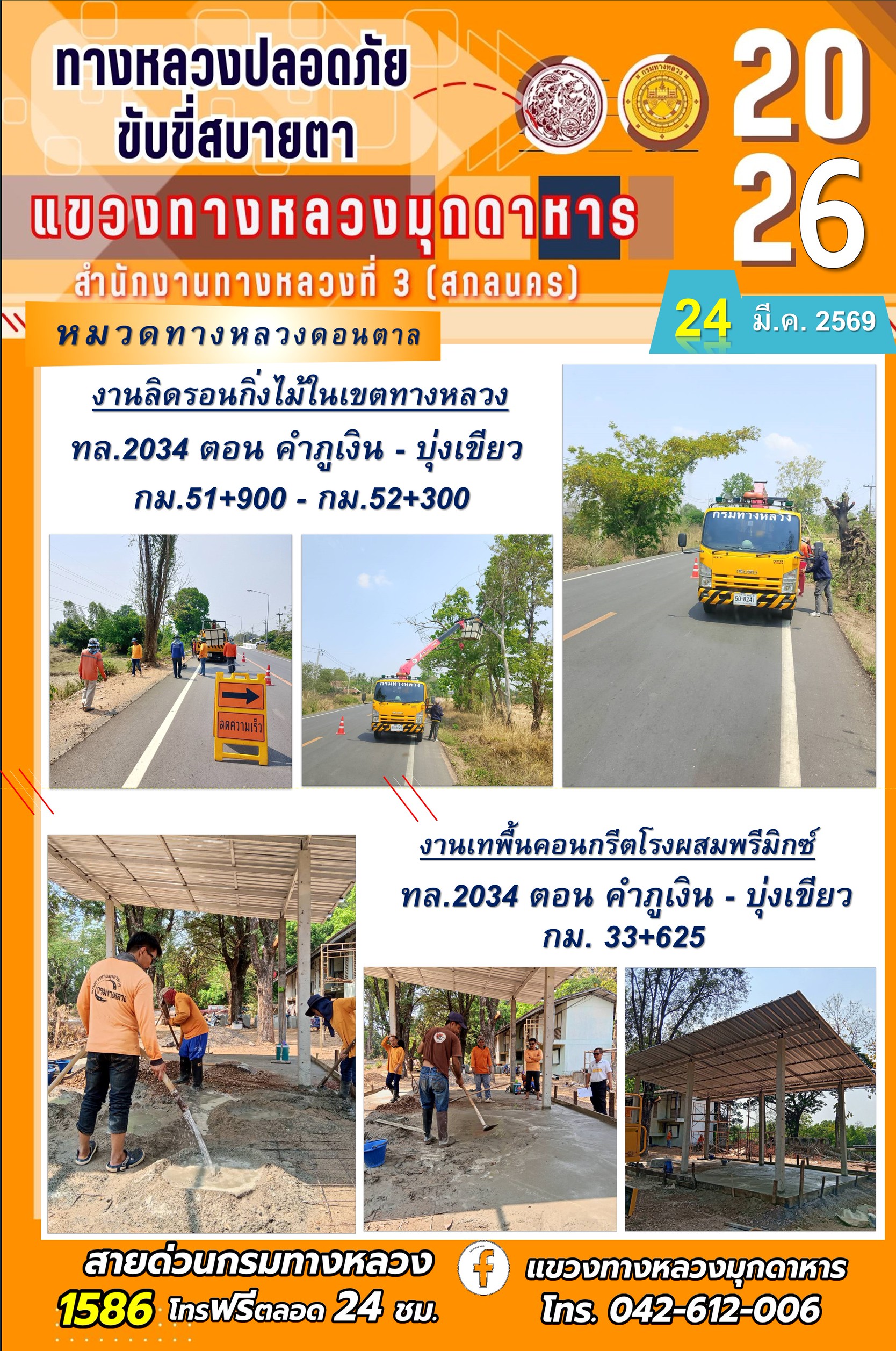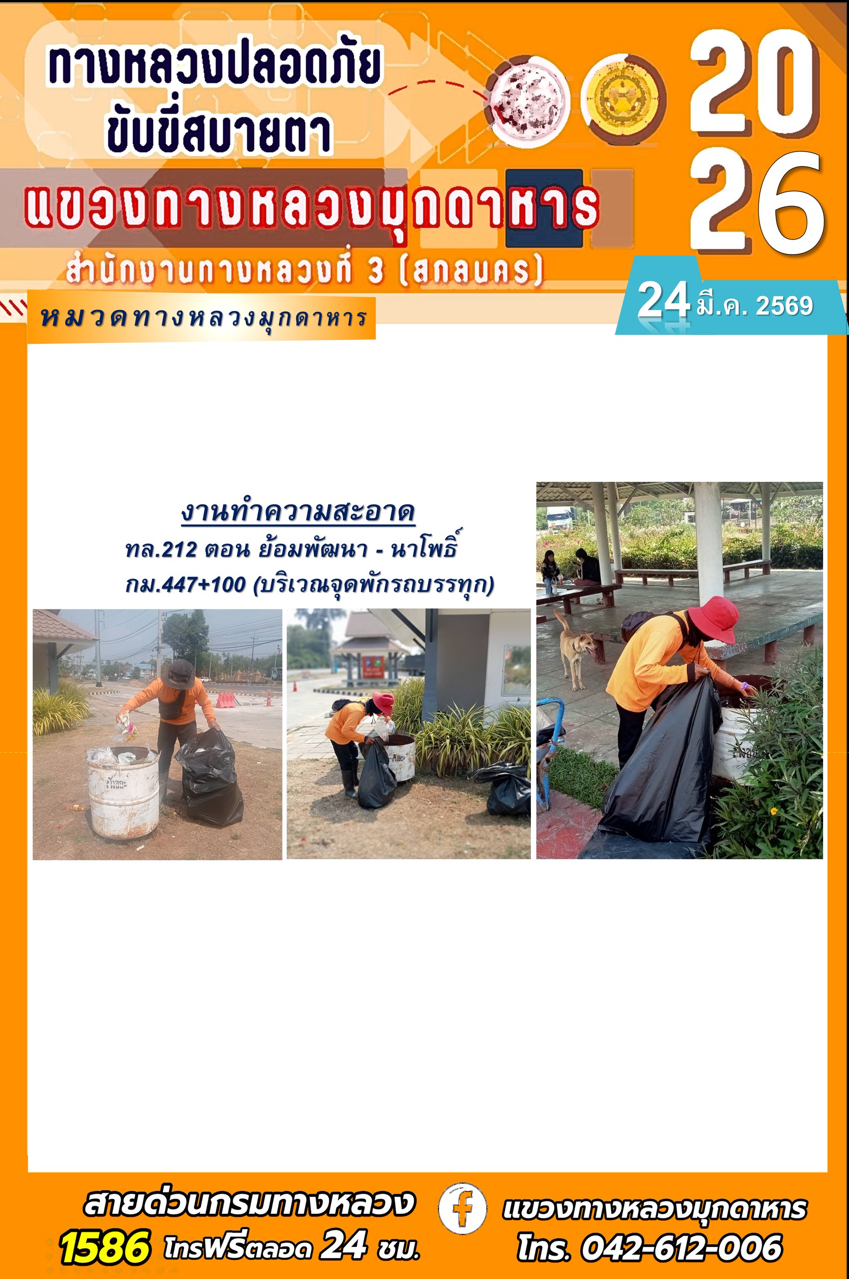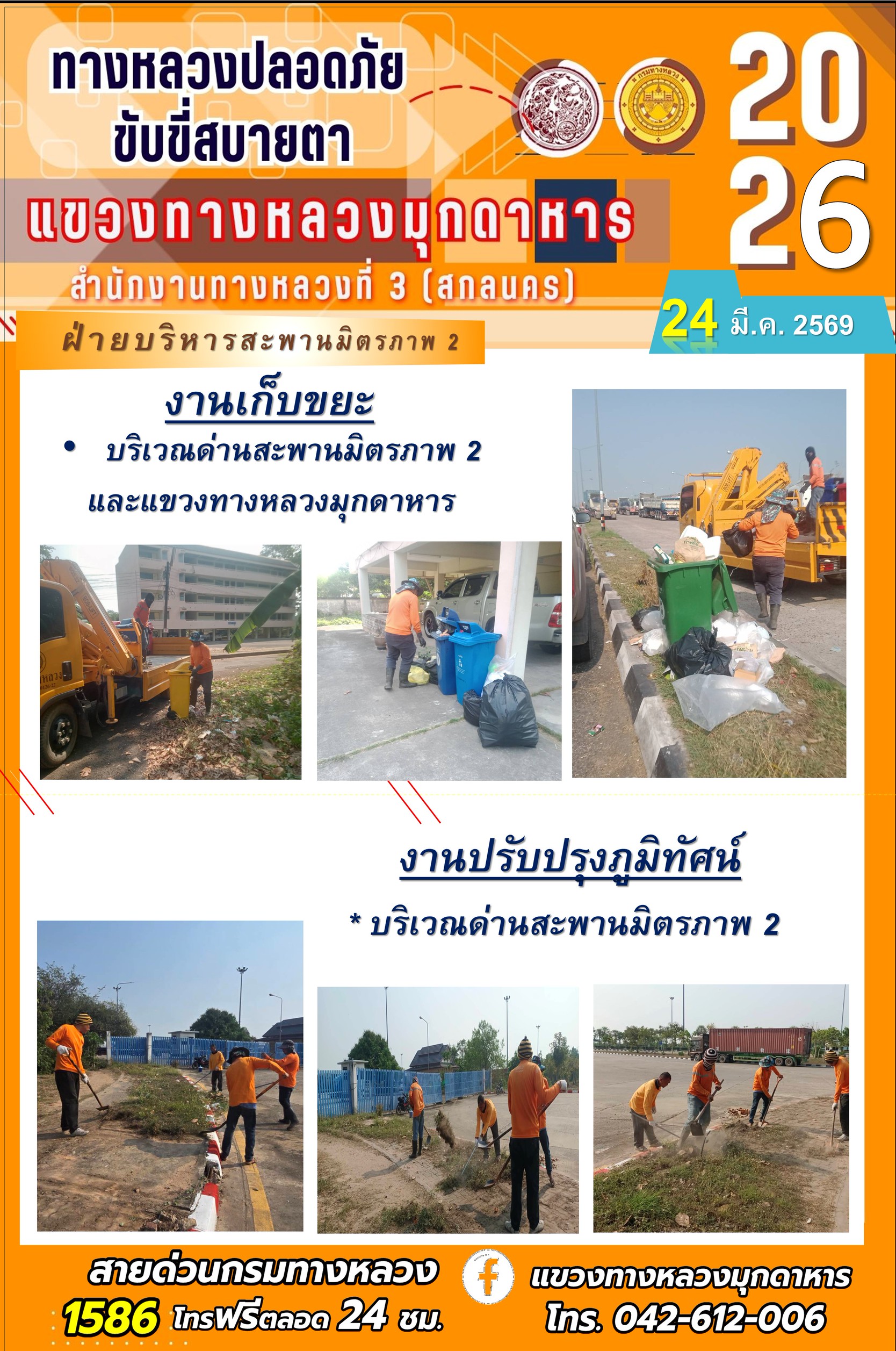 ข้อมูลภาพกิจกรรม : ประจำวันที่ 24 มีนาคม 2569 โครงการทางหลวงปลอดภัย ขับขี่สบายตา หน่วยงานในสังกัดแขวงทางหลวง