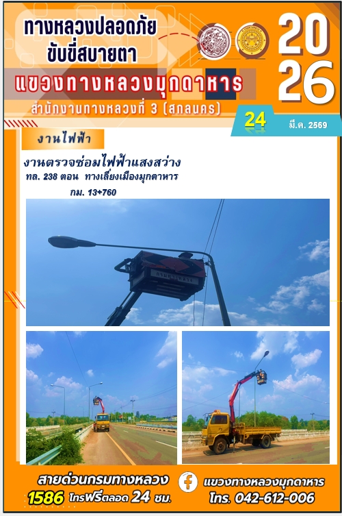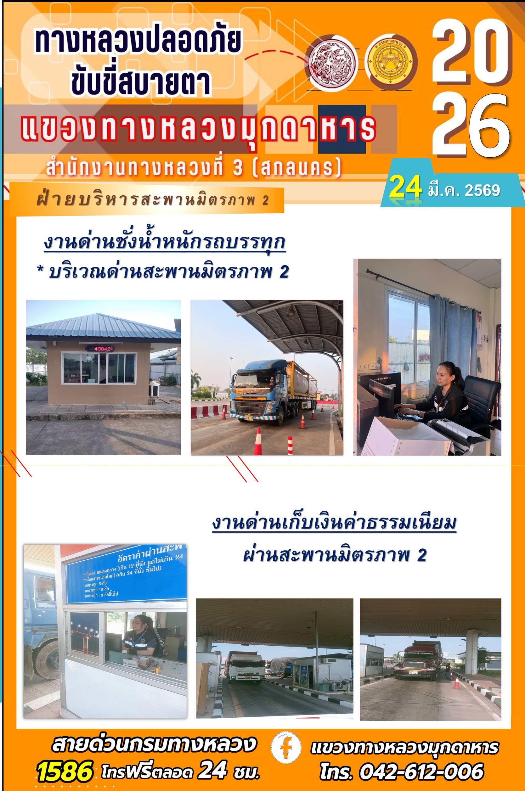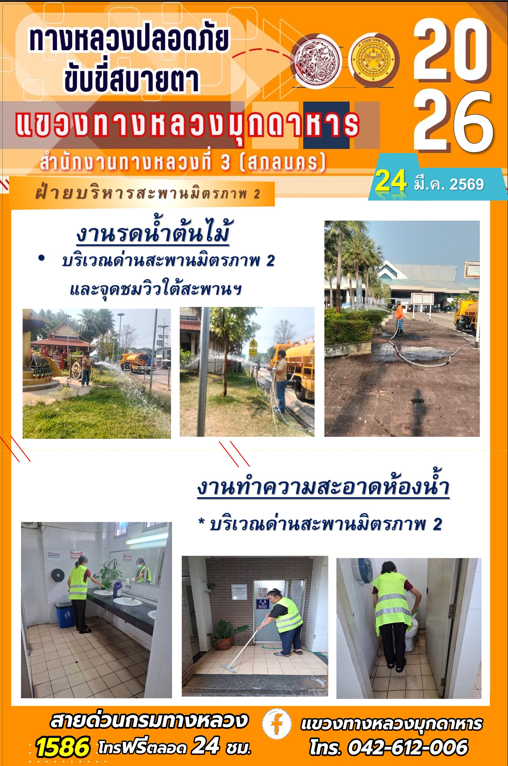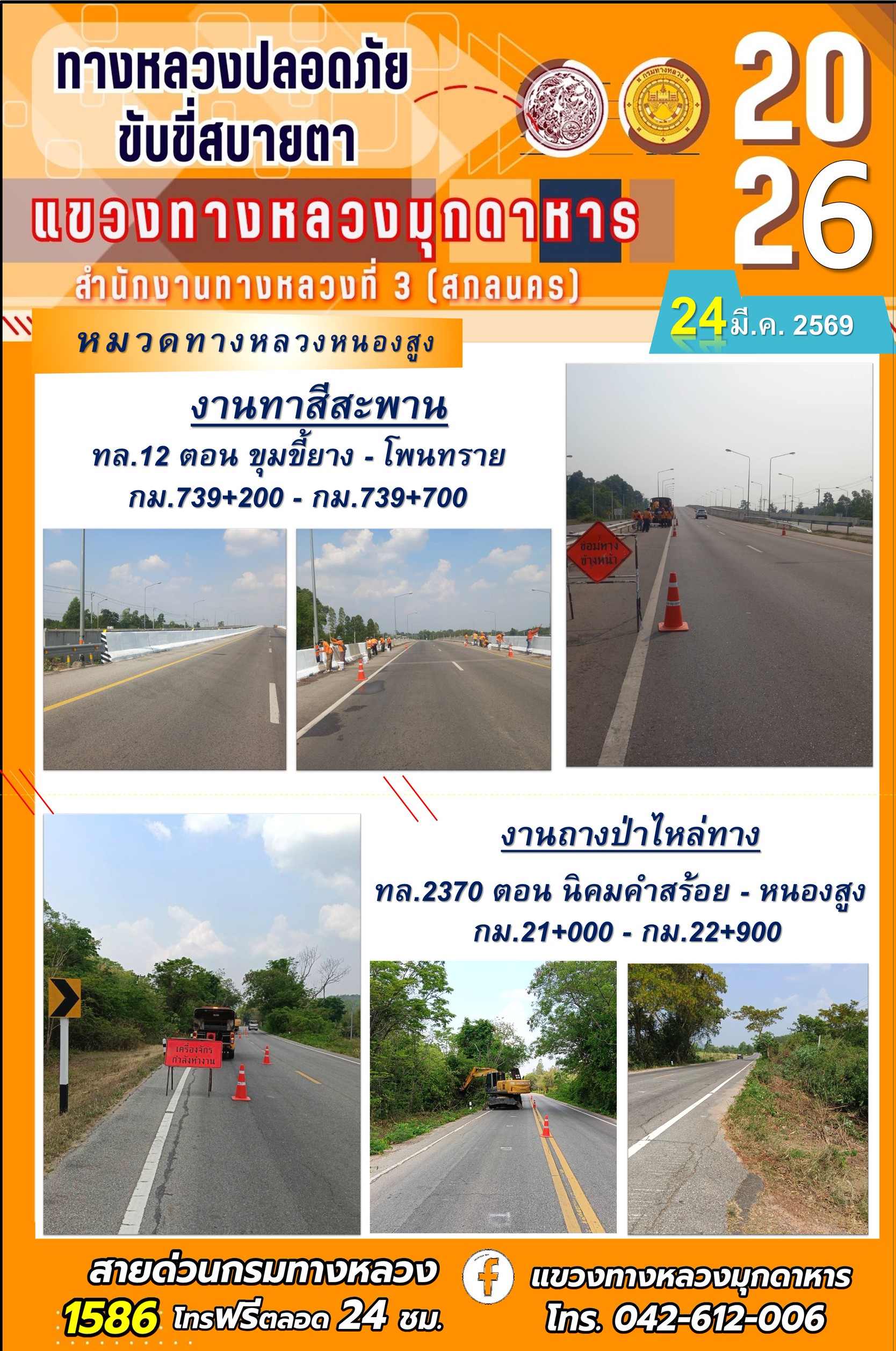 ข้อมูลภาพกิจกรรม : ประจำวันที่ 24 มีนาคม 2569 โครงการทางหลวงปลอดภัย ขับขี่สบายตา หน่วยงานในสังกัดแขวงทางหลวง