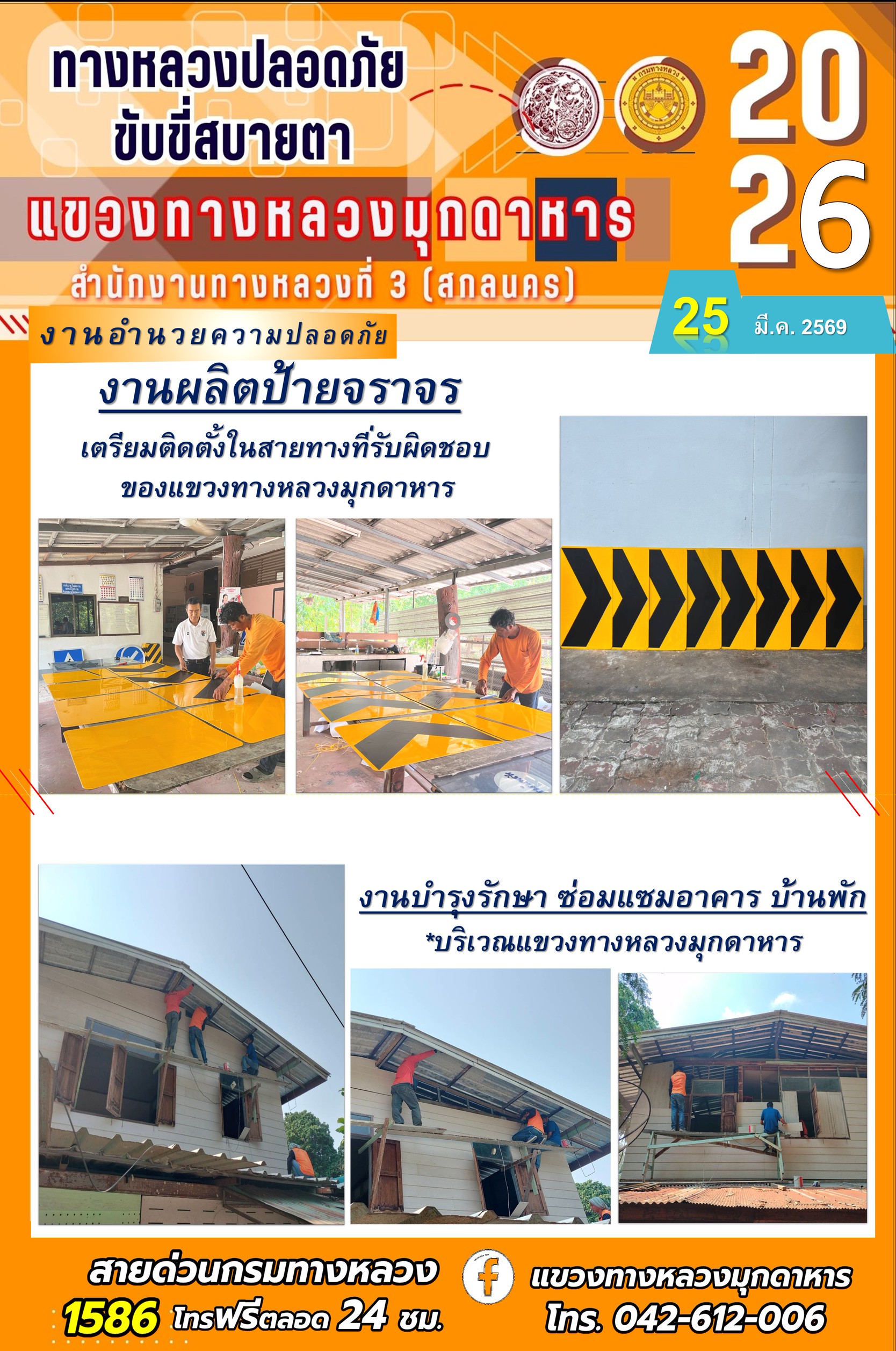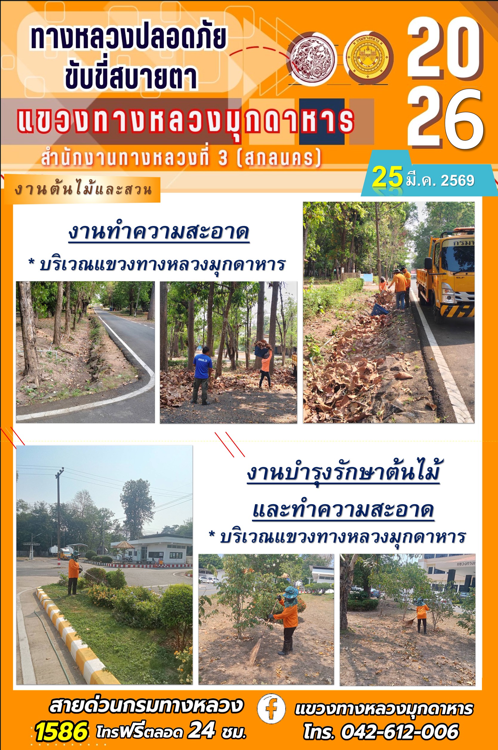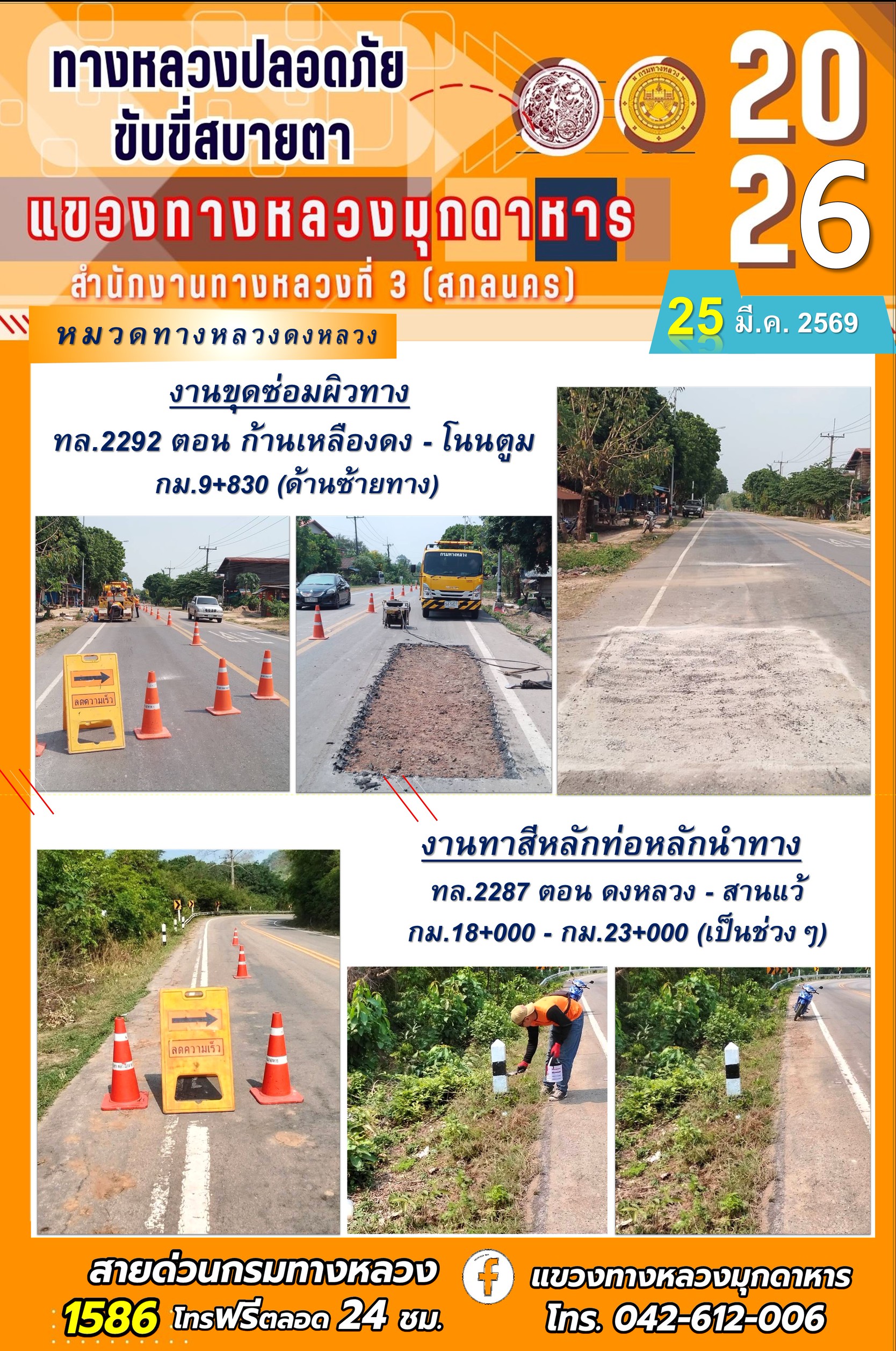 ประจำวันที่ 25 มีนาคม 2569 โครงการทางหลวงปลอดภัย ขับขี่สบายตา หน่วยงานในสังกัดแขวงทางหลวง