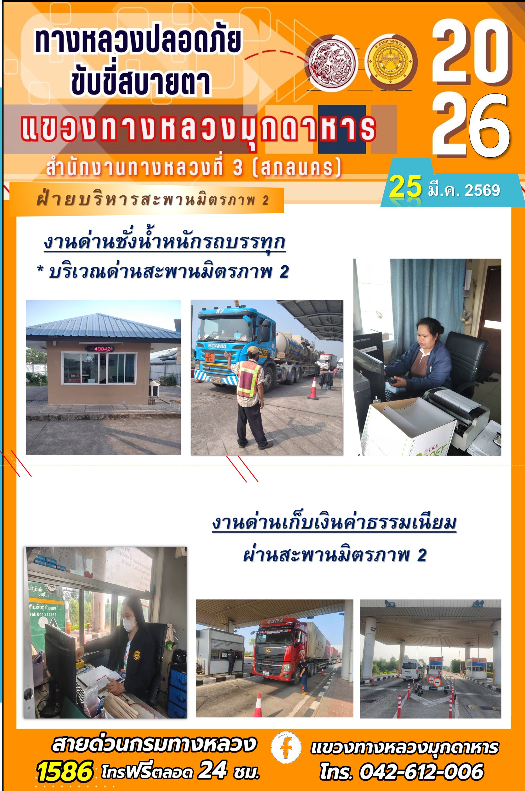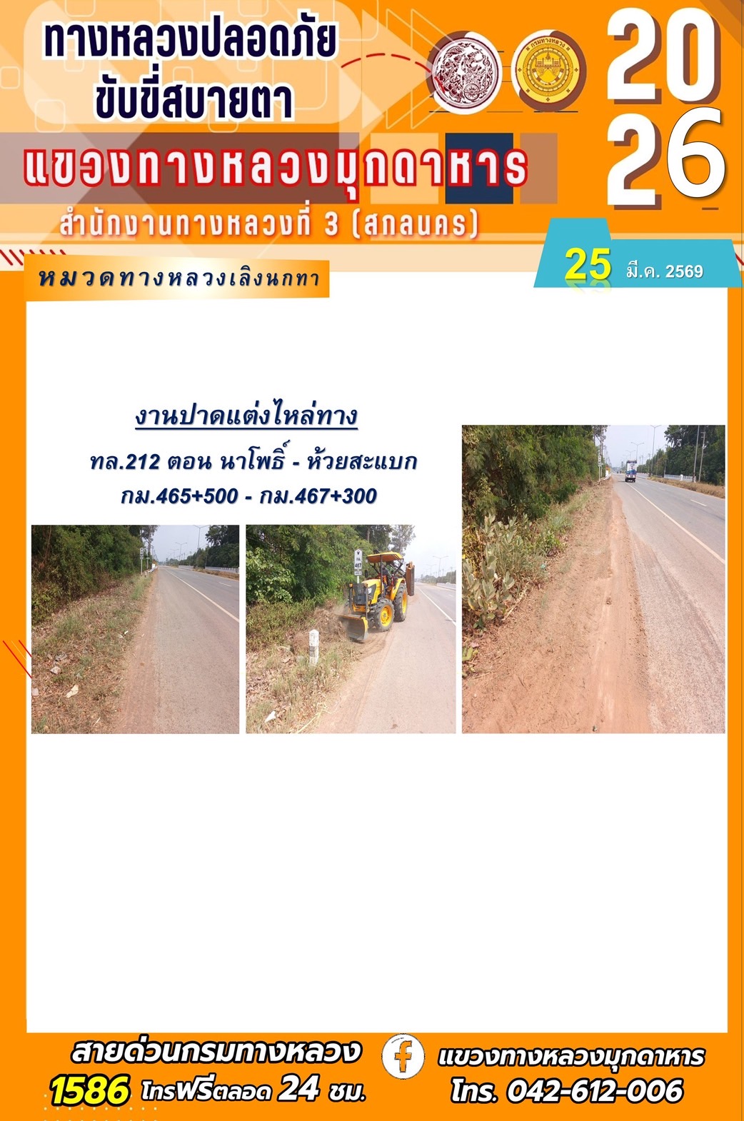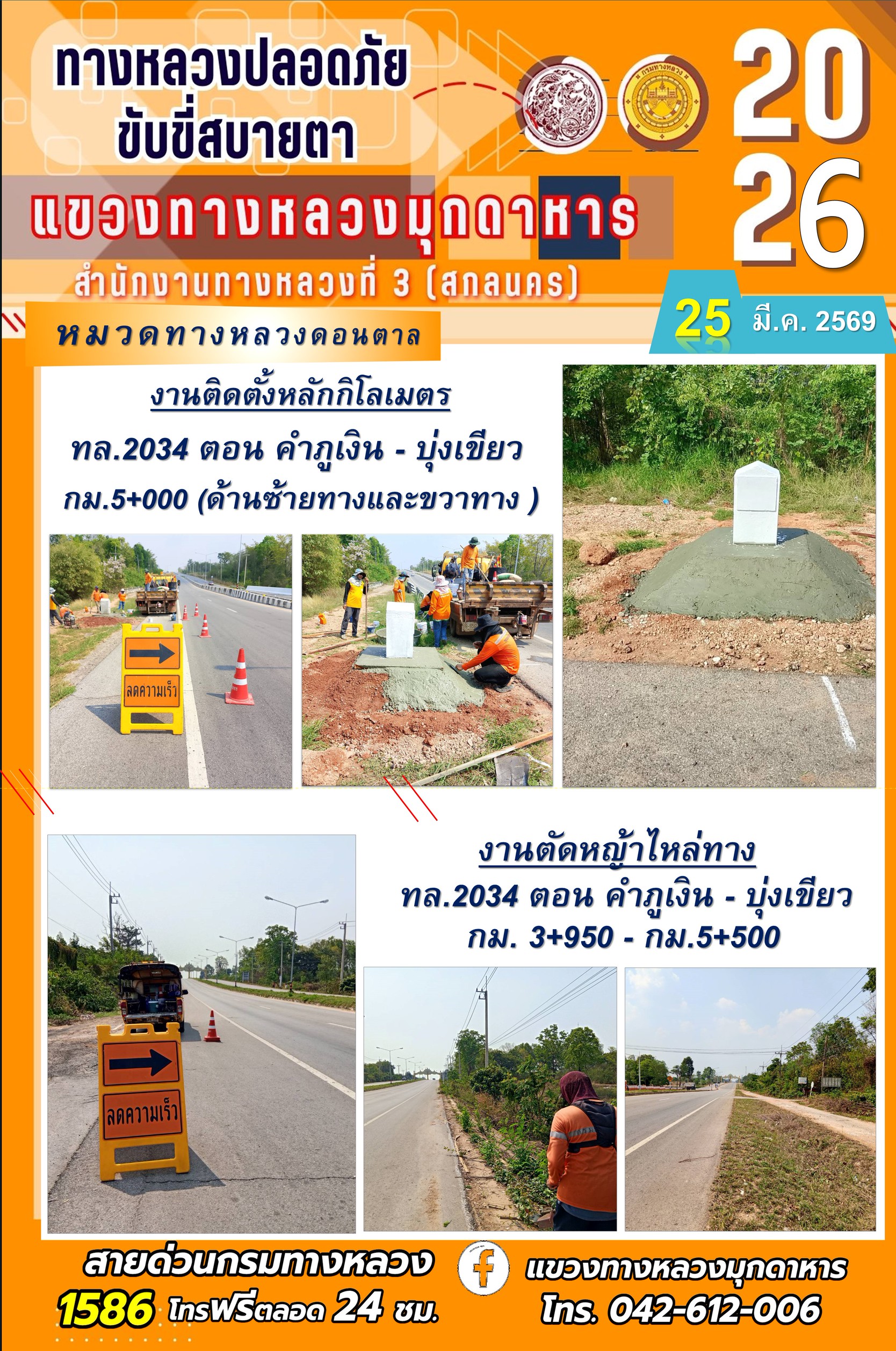 ประจำวันที่ 25 มีนาคม 2569 โครงการทางหลวงปลอดภัย ขับขี่สบายตา หน่วยงานในสังกัดแขวงทางหลวง