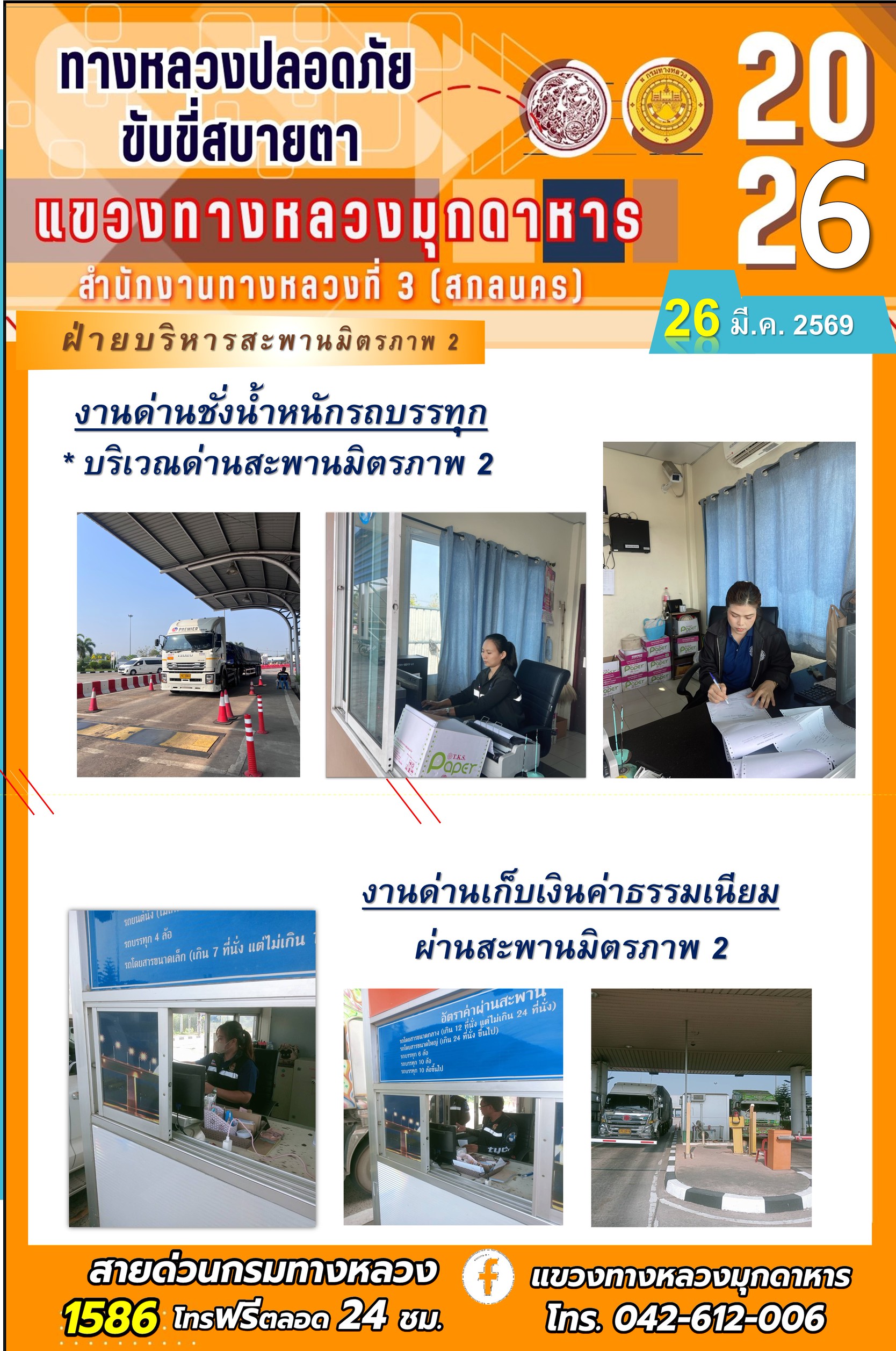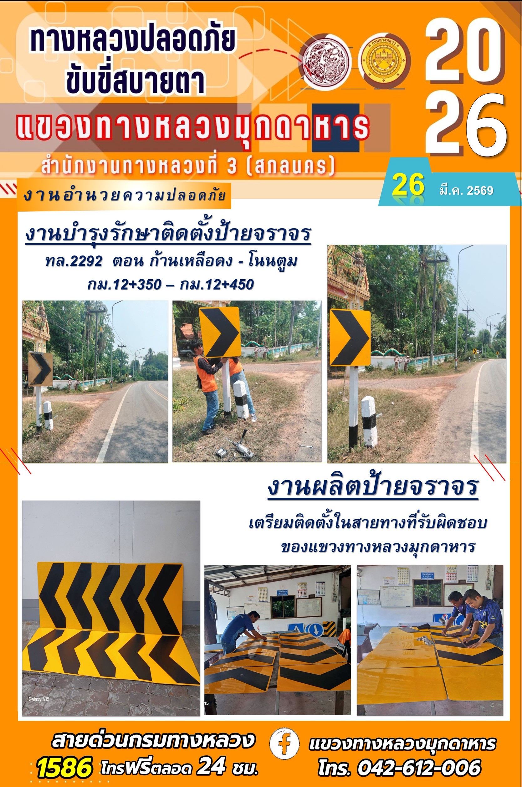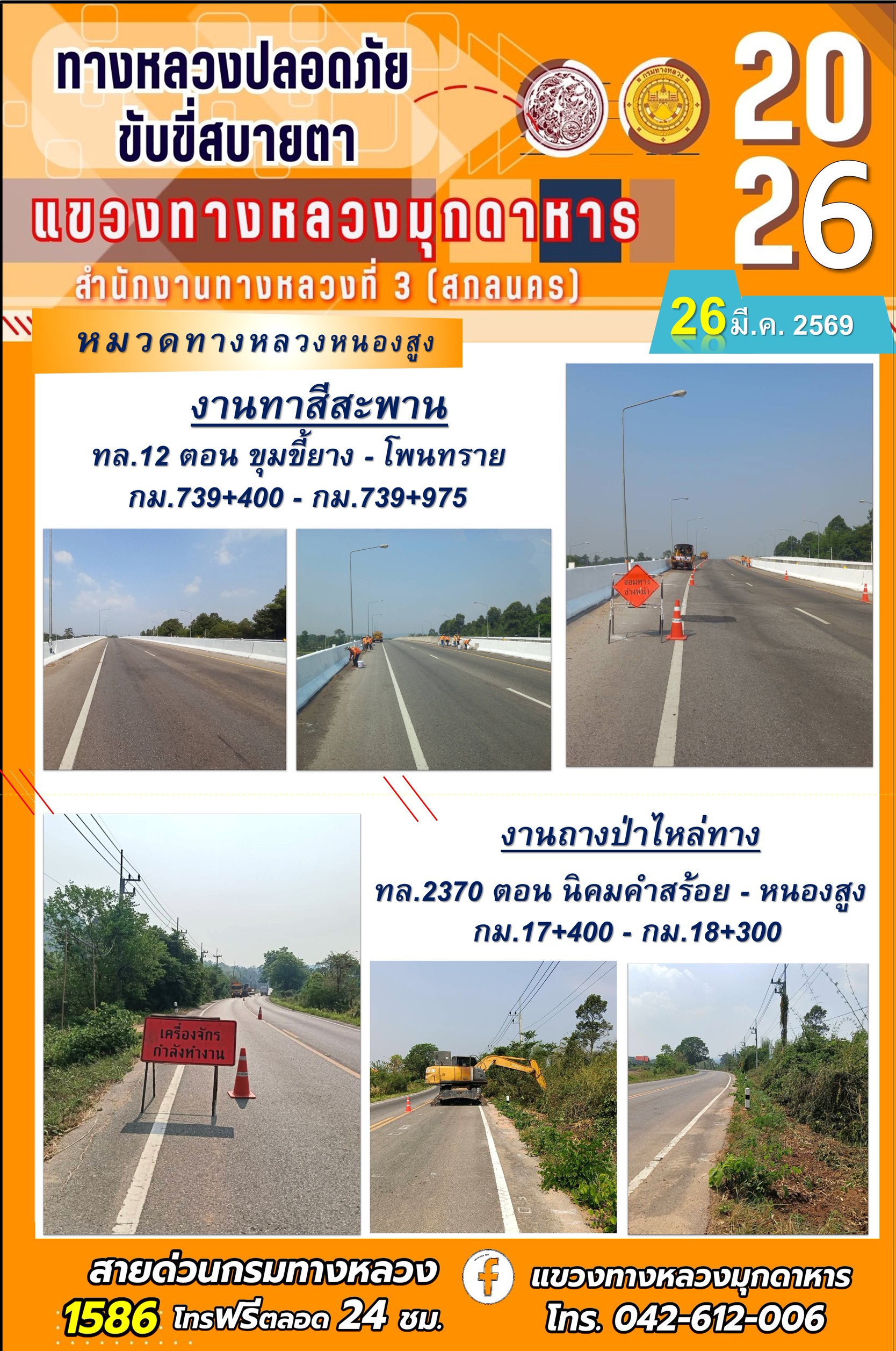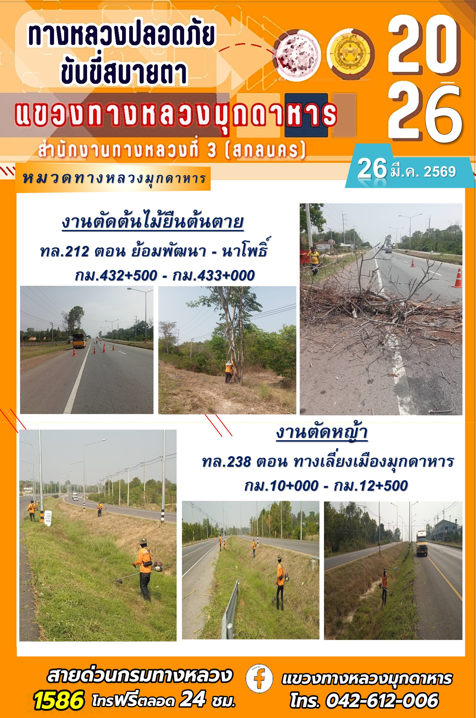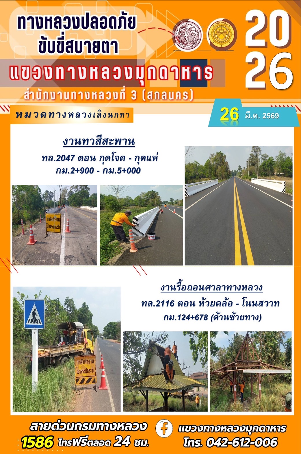 ข้อมูลภาพกิจกรรม : ประจำวันที่ 26 มีนาคม 2569 โครงการทางหลวงปลอดภัย ขับขี่สบายตา หน่วยงานในสังกัดแขวงทางหลวง
