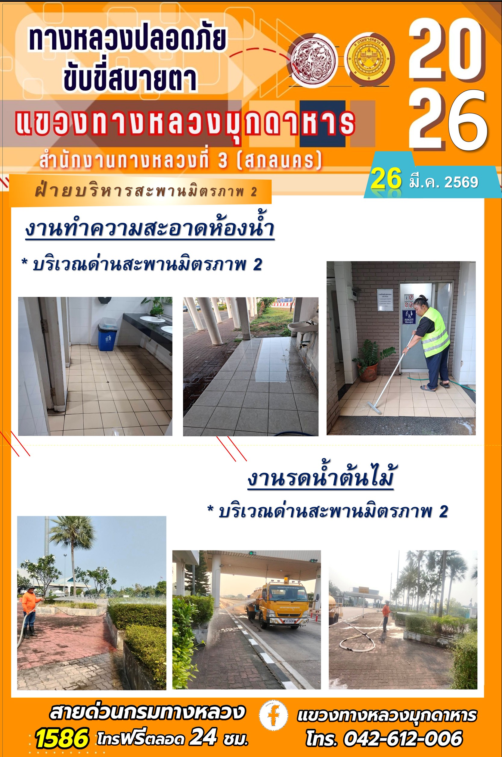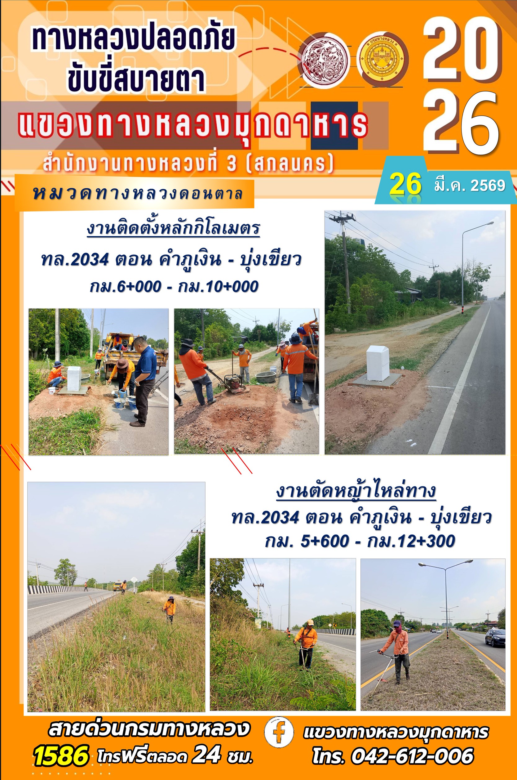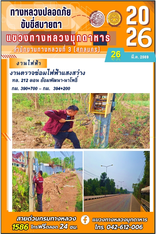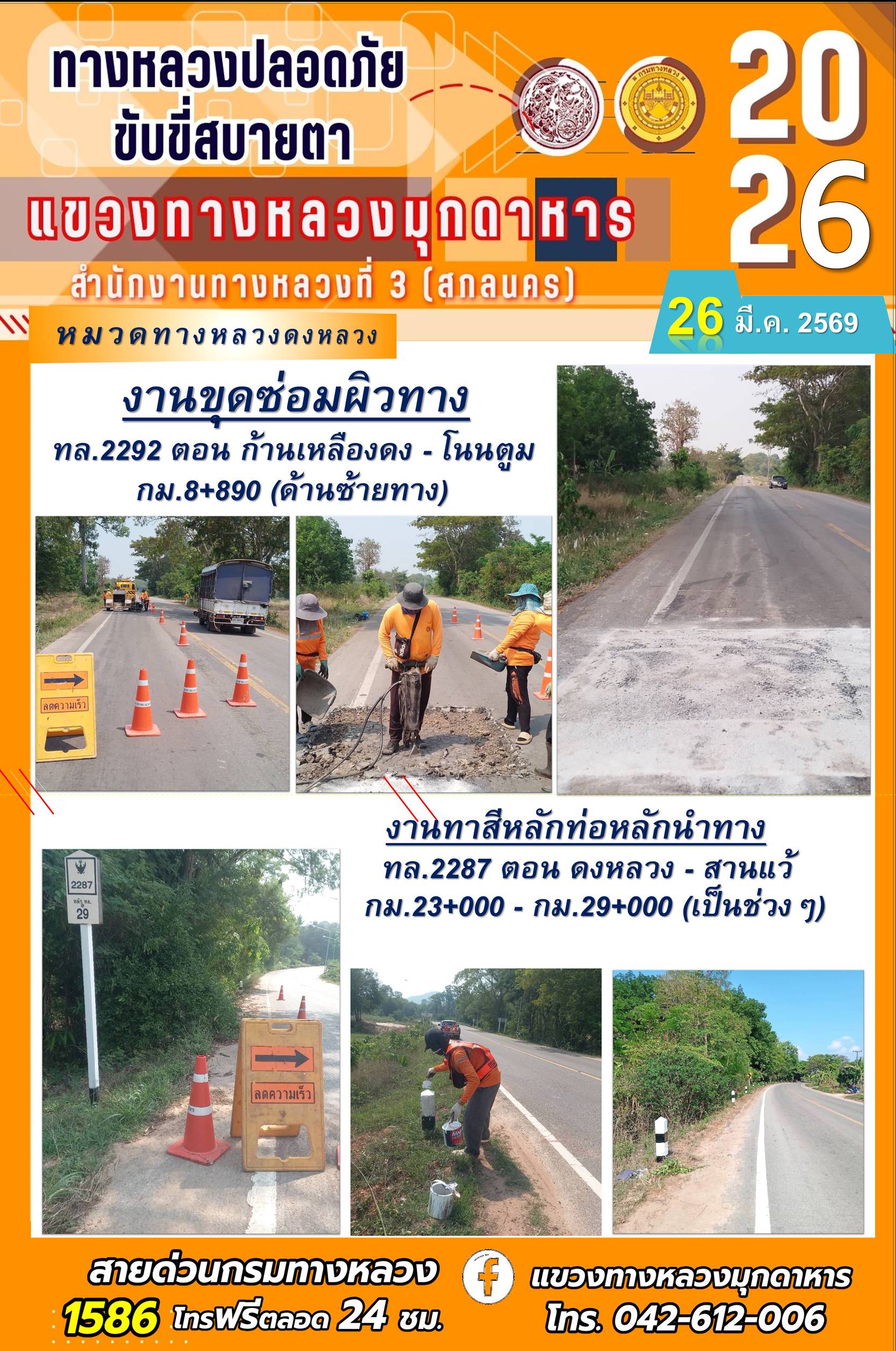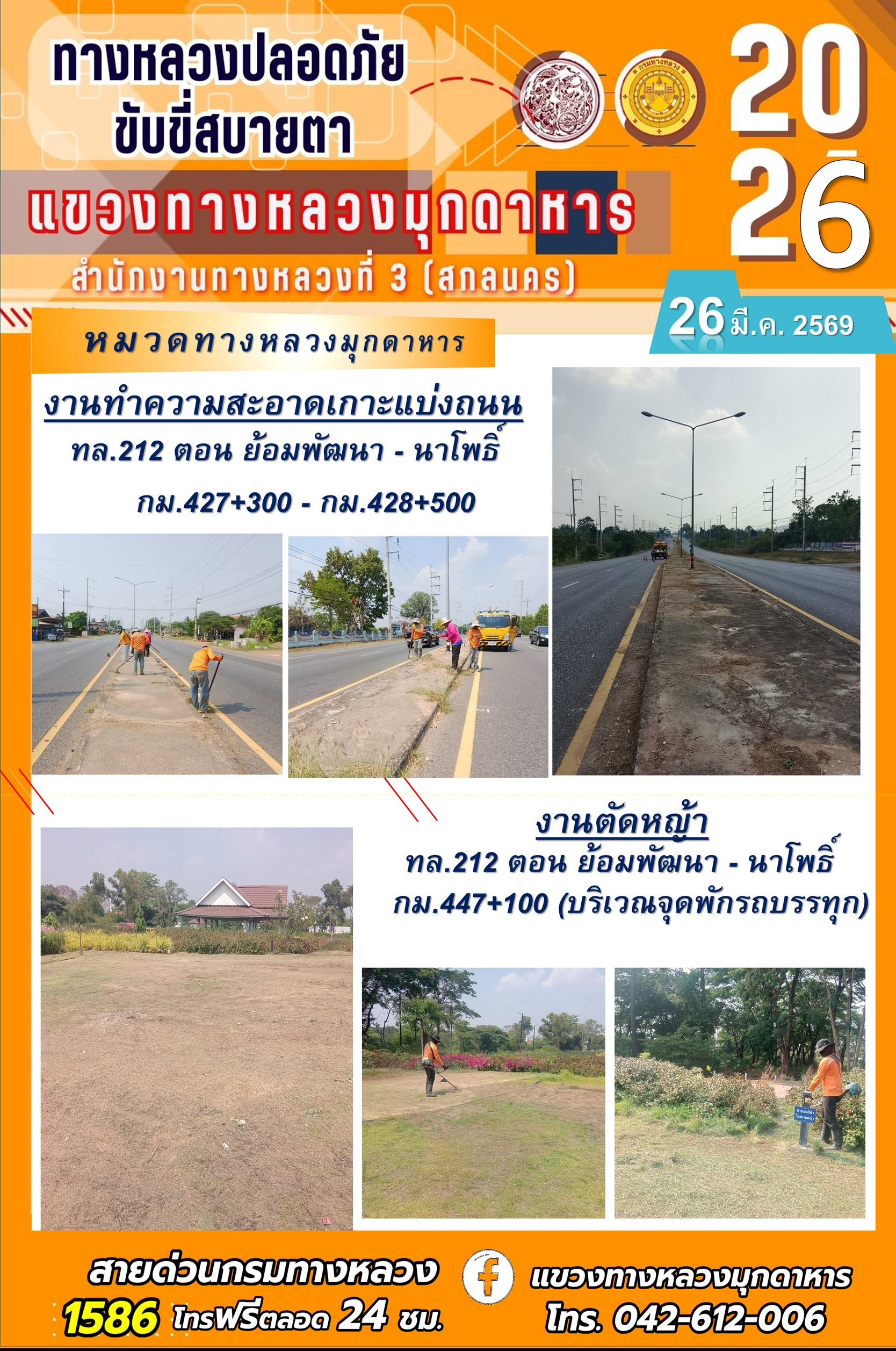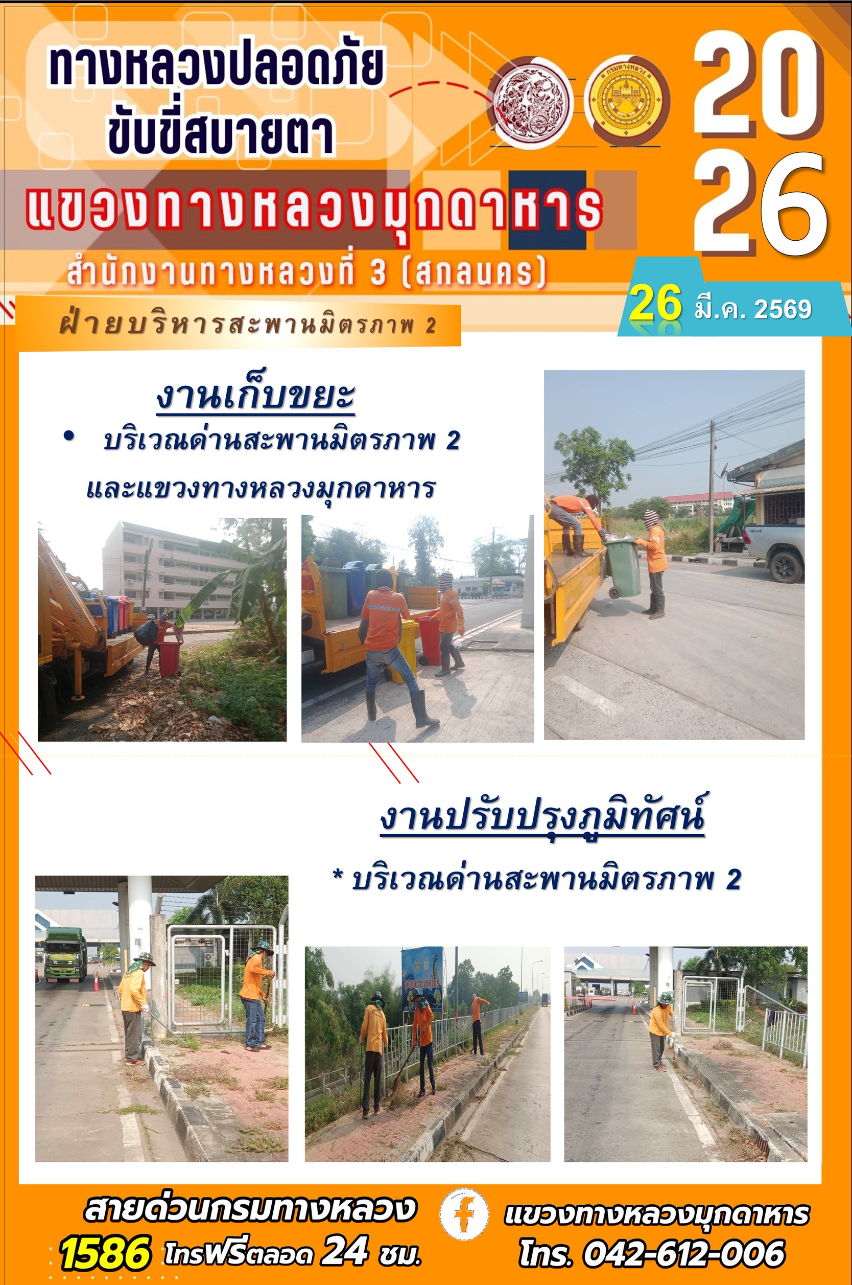 ข้อมูลภาพกิจกรรม : ประจำวันที่ 26 มีนาคม 2569 โครงการทางหลวงปลอดภัย ขับขี่สบายตา หน่วยงานในสังกัดแขวงทางหลวง