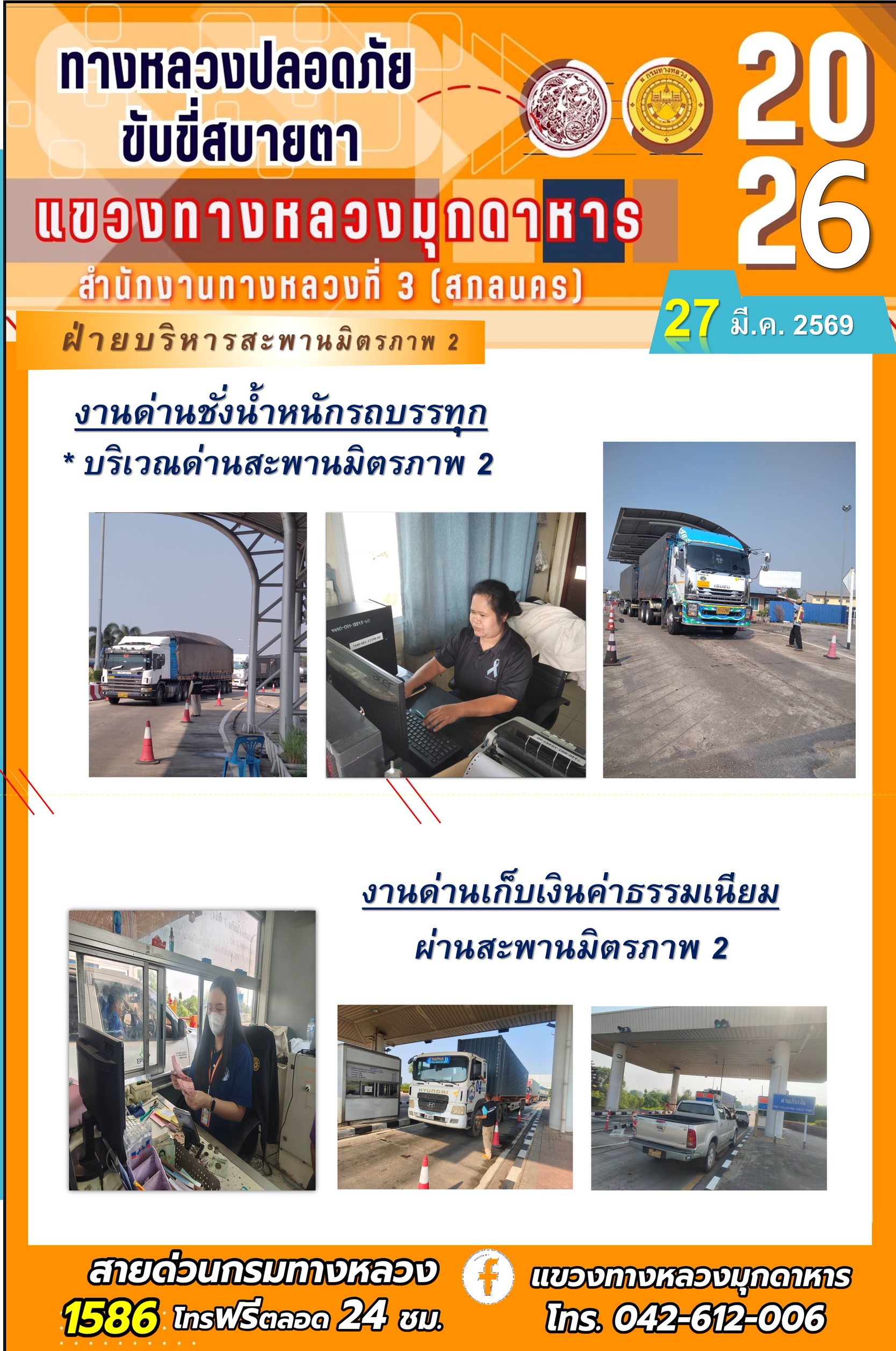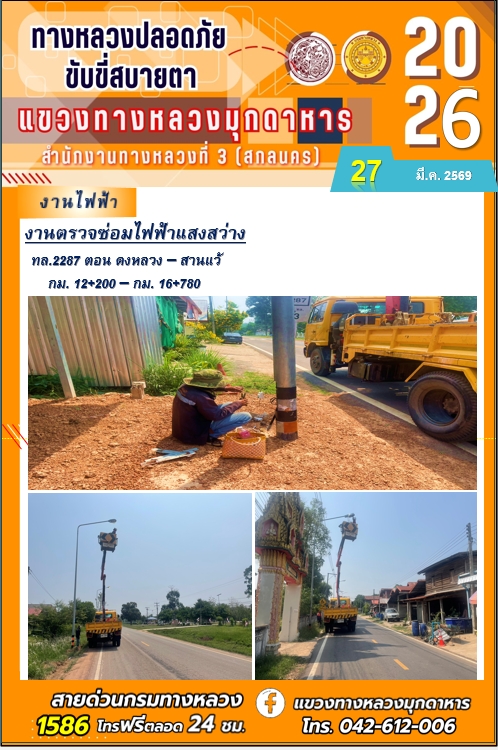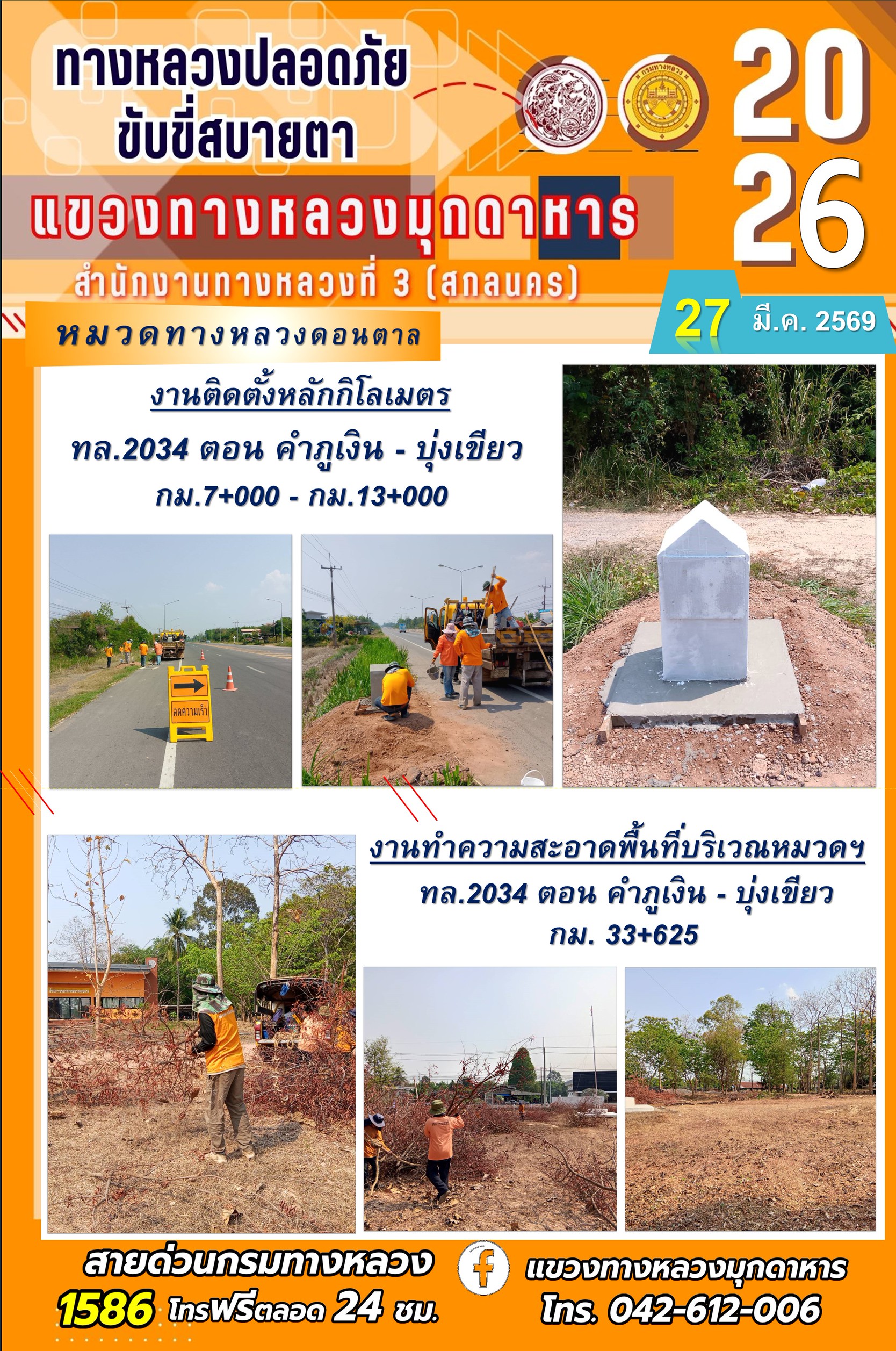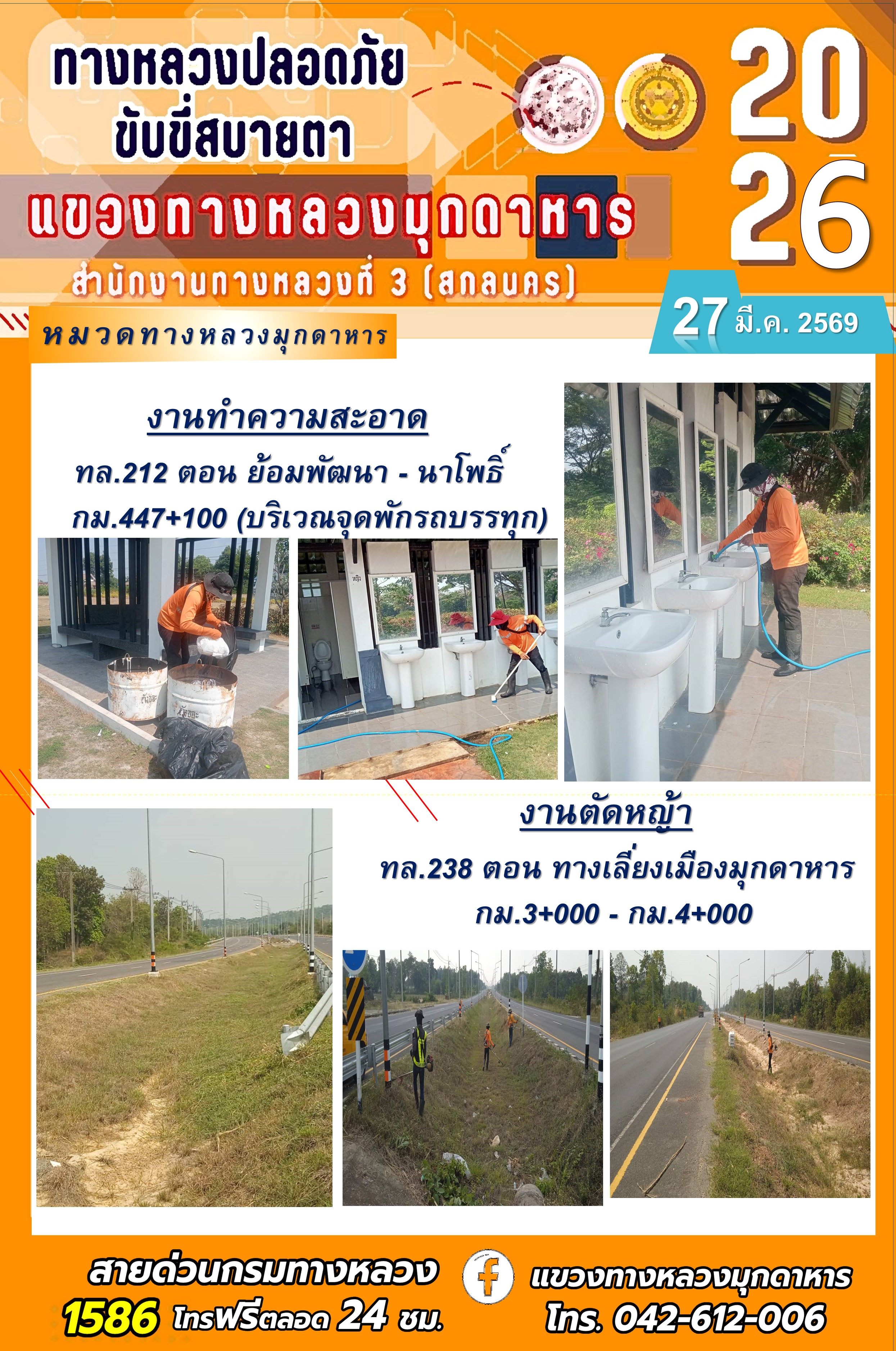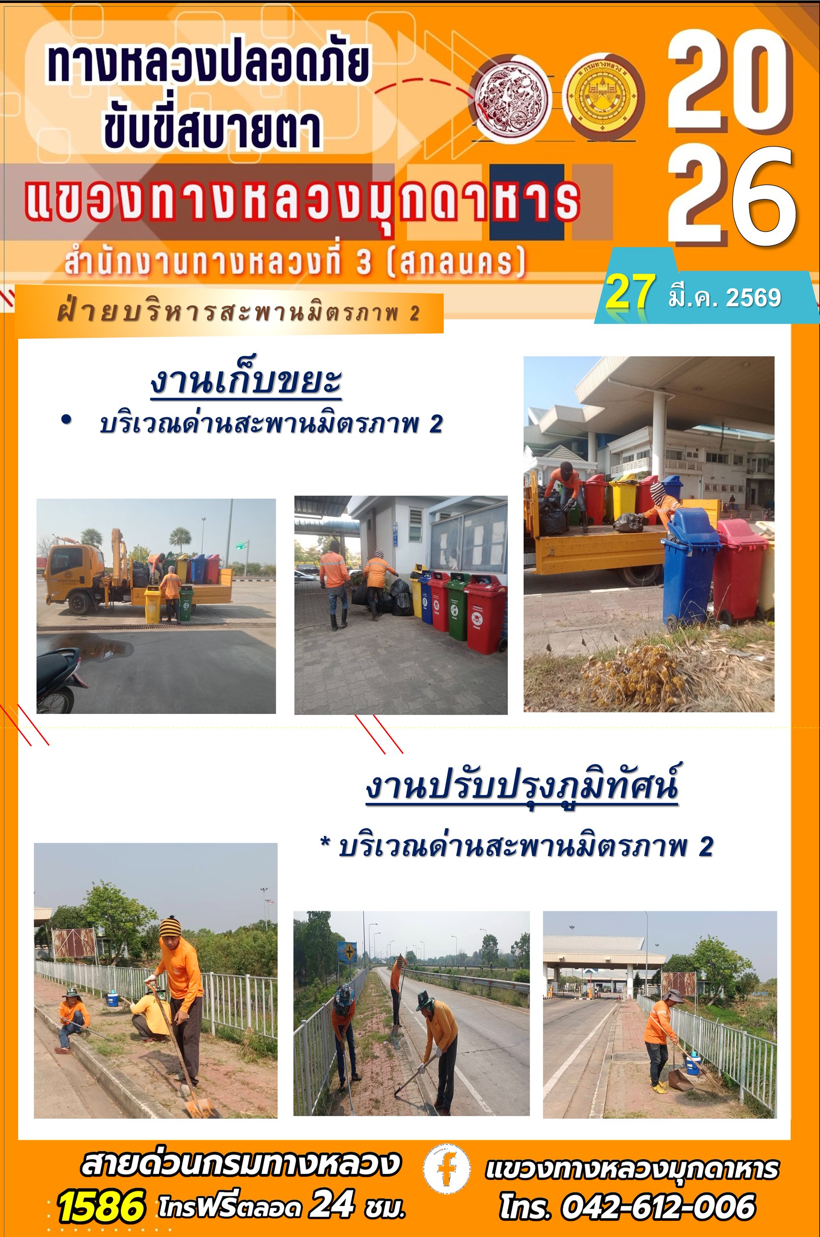 ข้อมูลภาพกิจกรรม : ประจำวันที่ 27 มีนาคม 2569 โครงการทางหลวงปลอดภัย ขับขี่สบายตา หน่วยงานในสังกัดแขวงทางหลวง