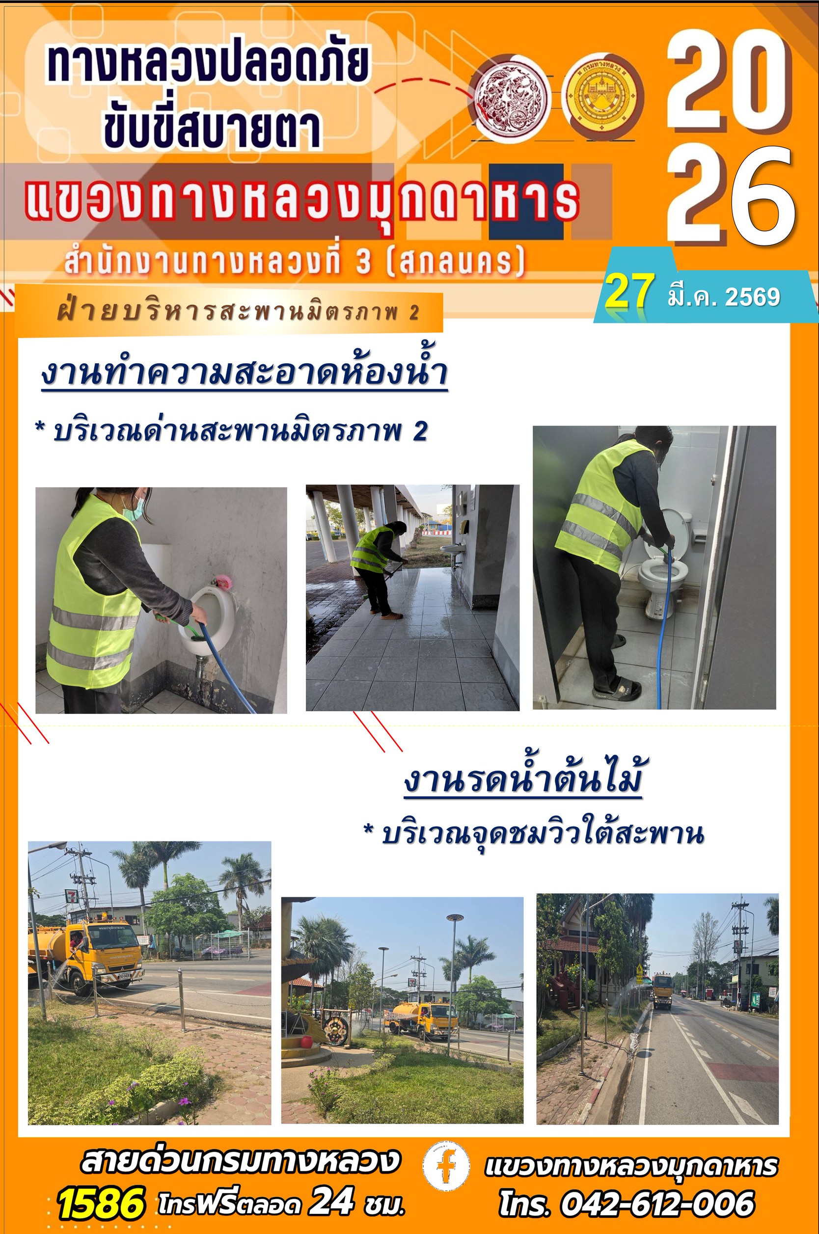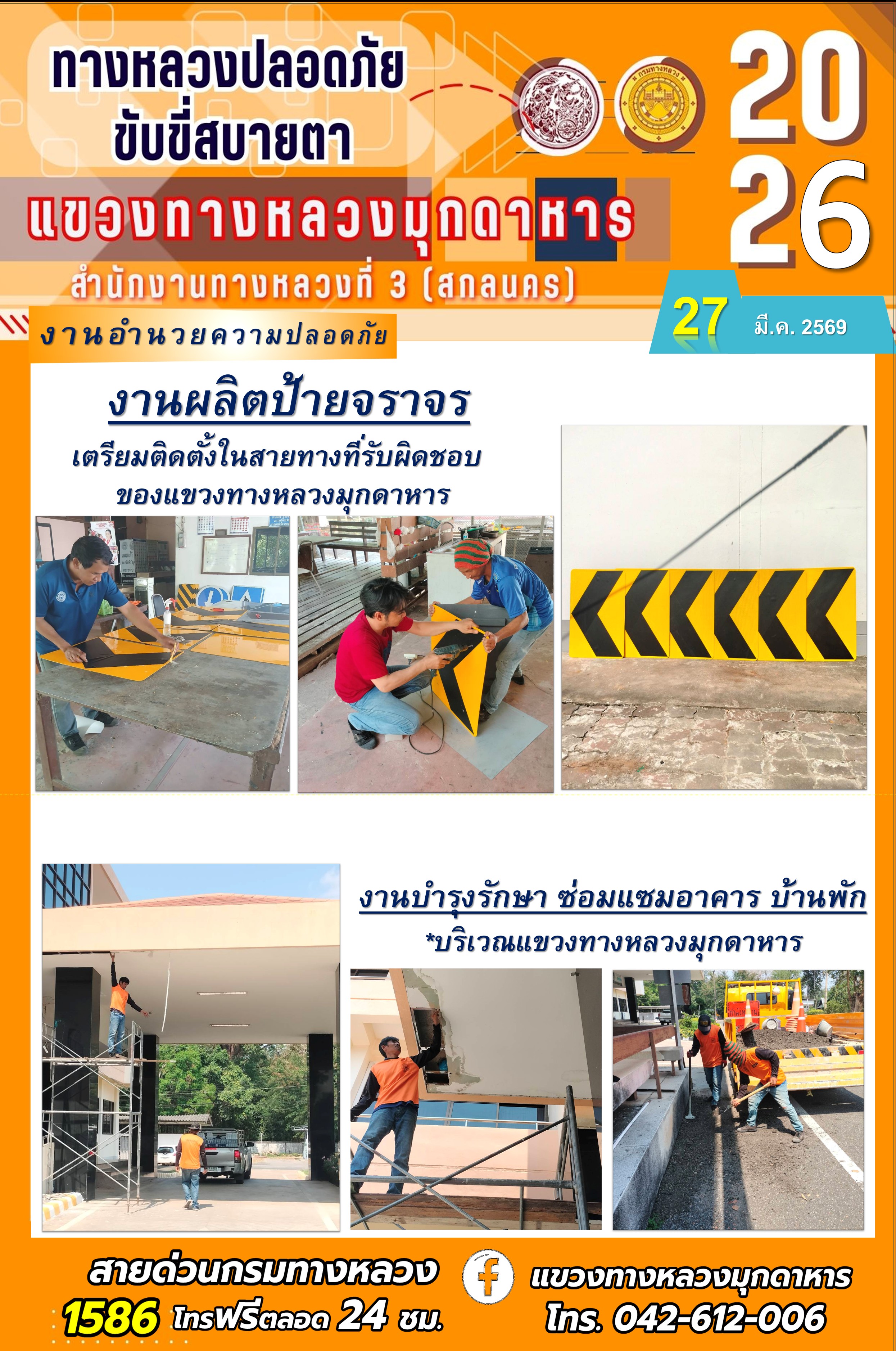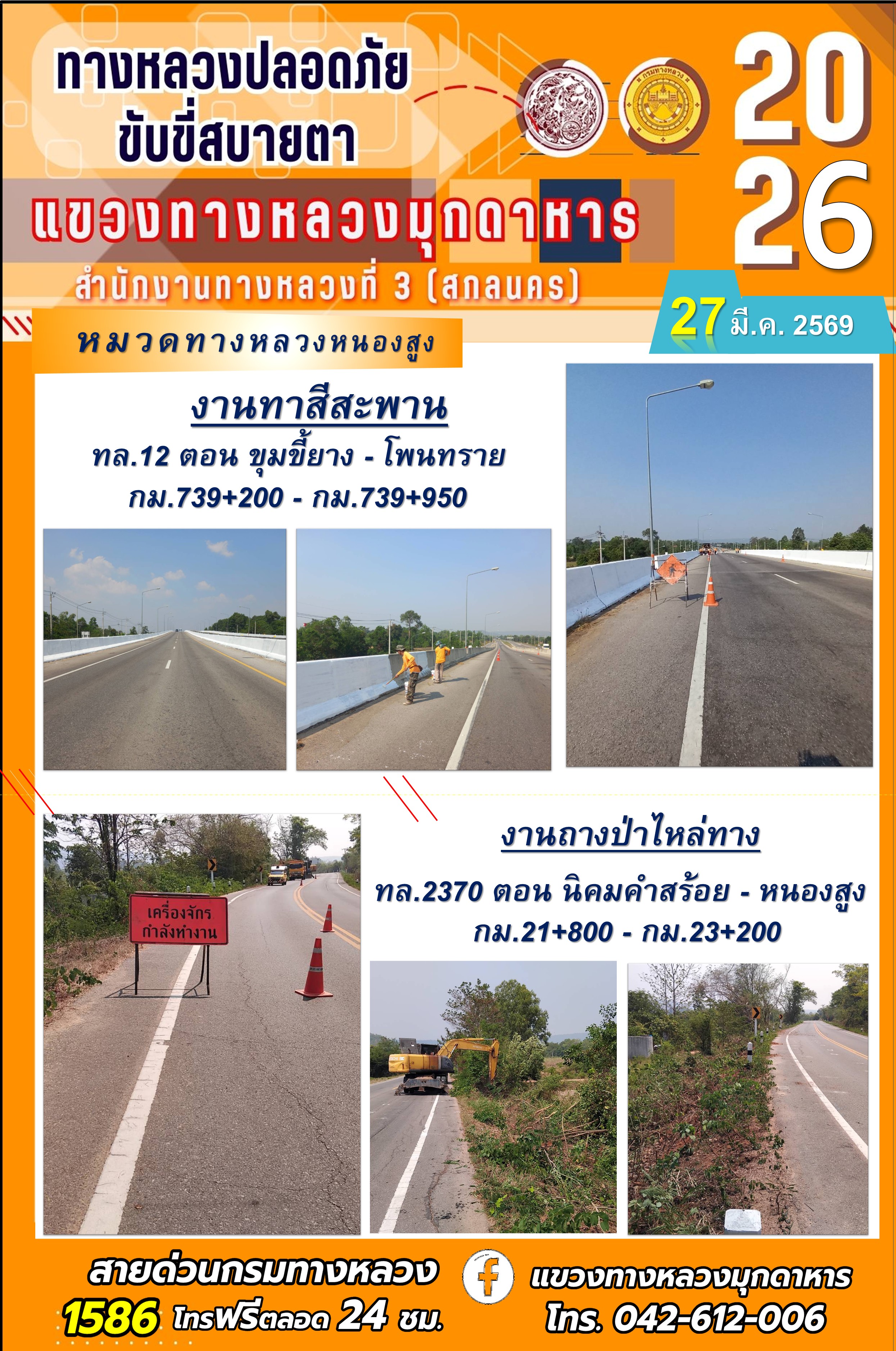 ประจำวันที่ 27 มีนาคม 2569 โครงการทางหลวงปลอดภัย ขับขี่สบายตา หน่วยงานในสังกัดแขวงทางหลวง