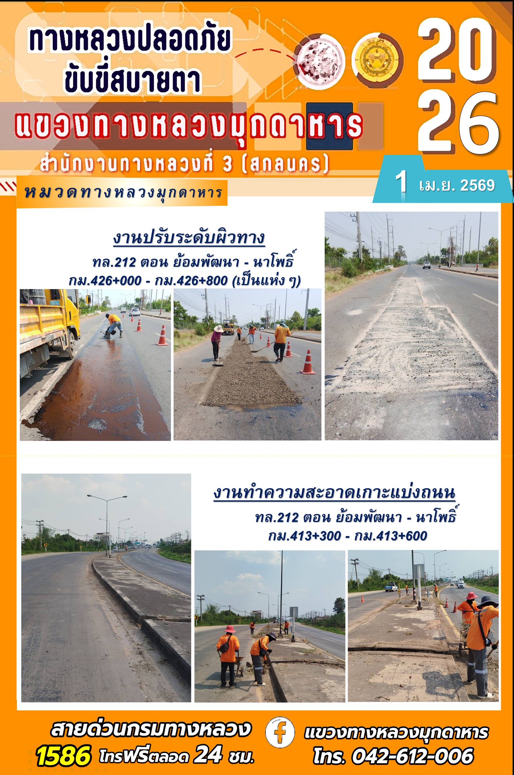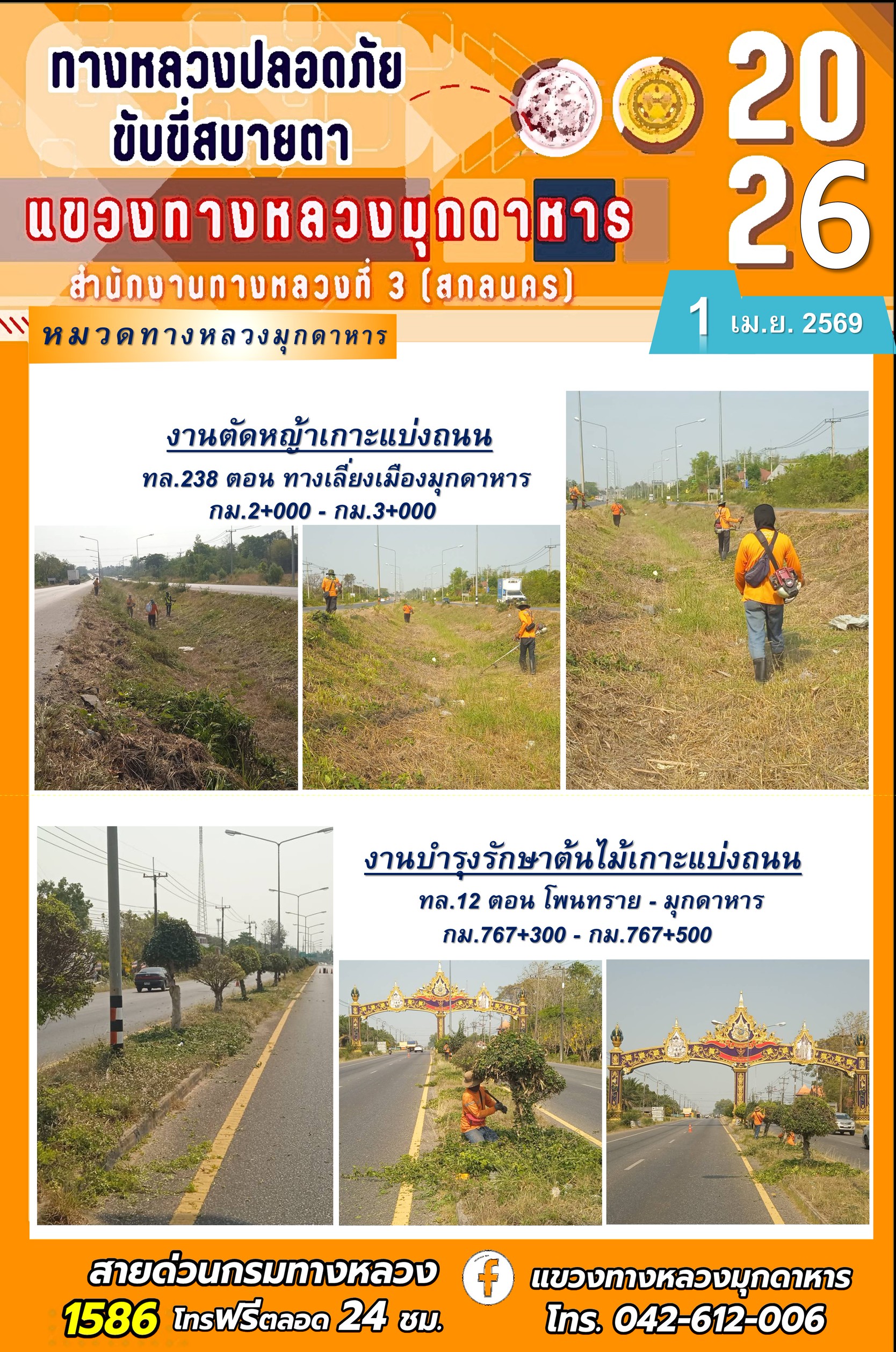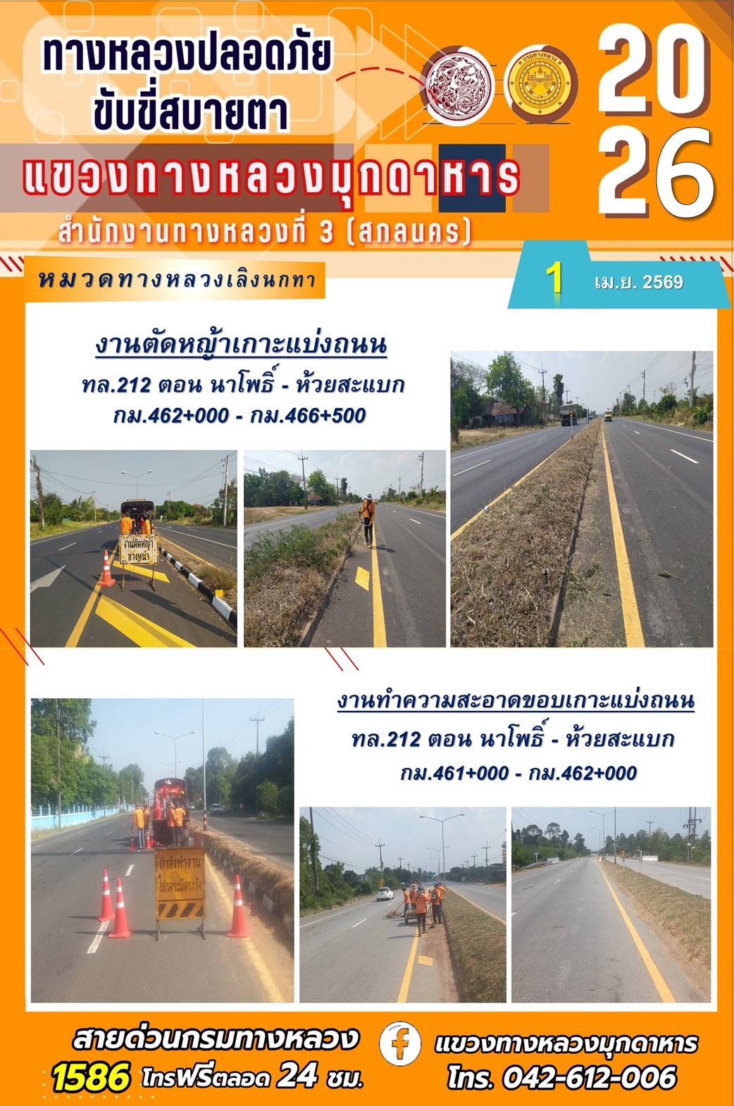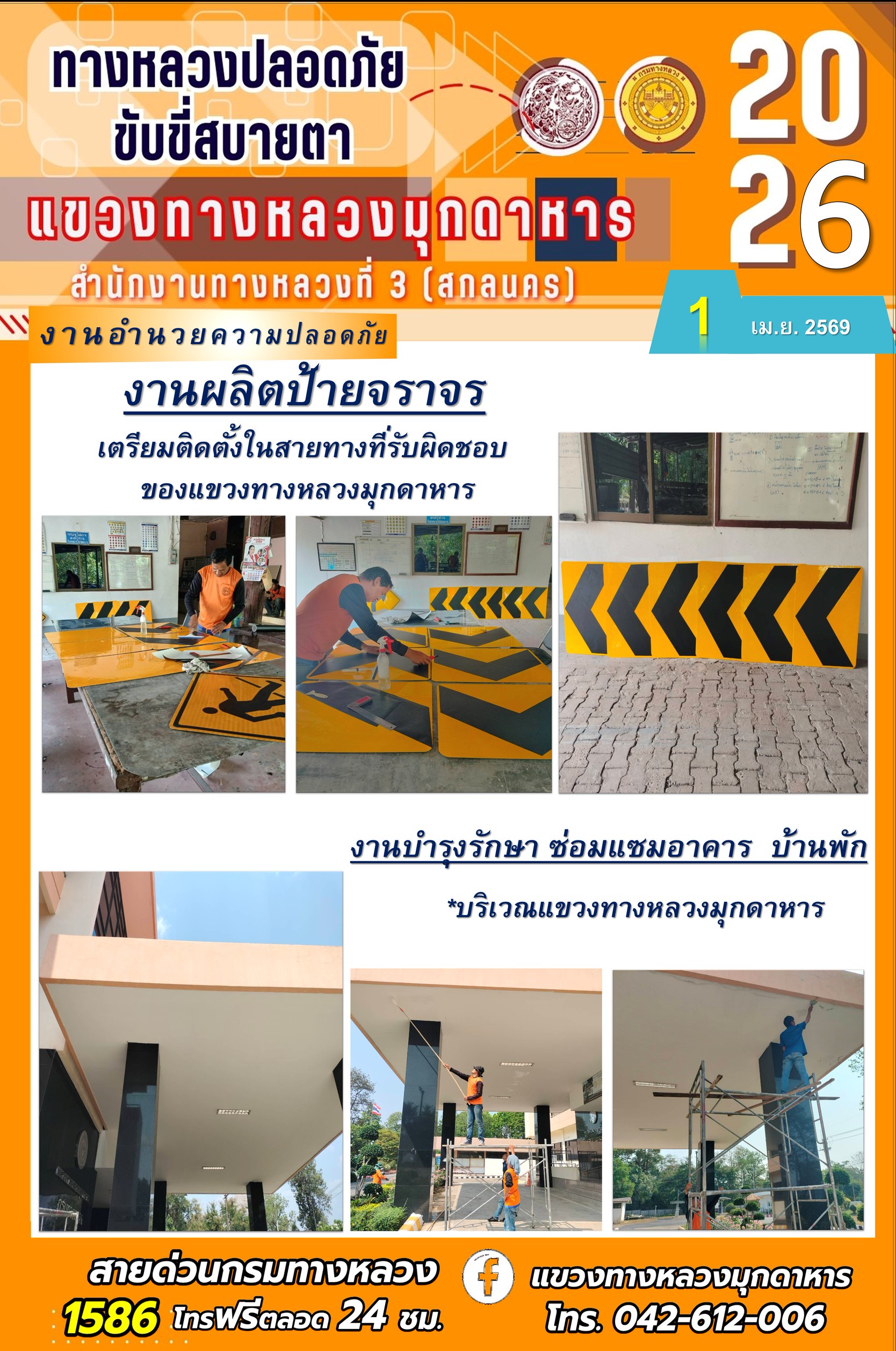 ประจำวันที่ 1 เมษายน 2569 โครงการทางหลวงปลอดภัย ขับขี่สบายตา หน่วยงานในสังกัดแขวงทางหลวง