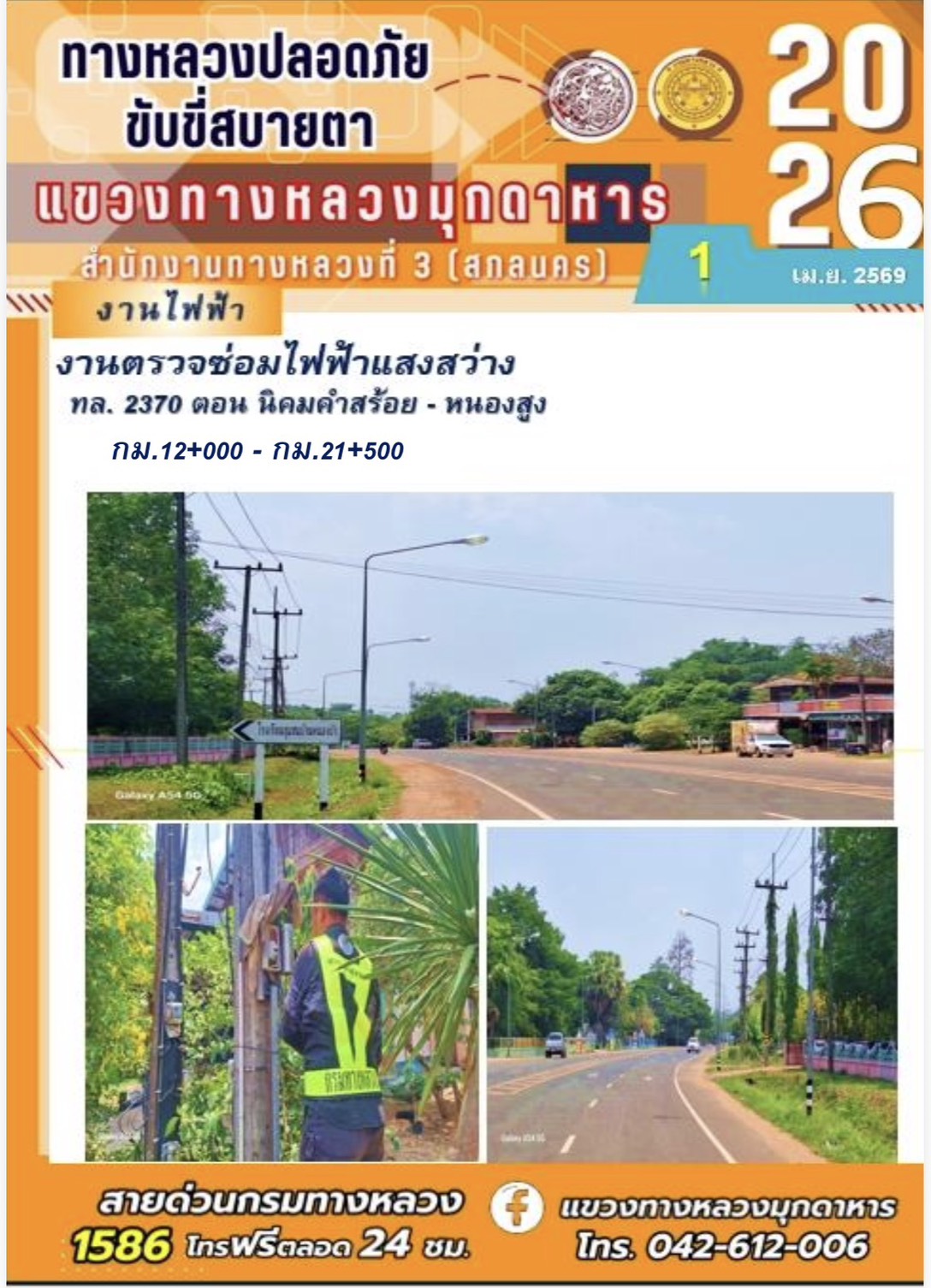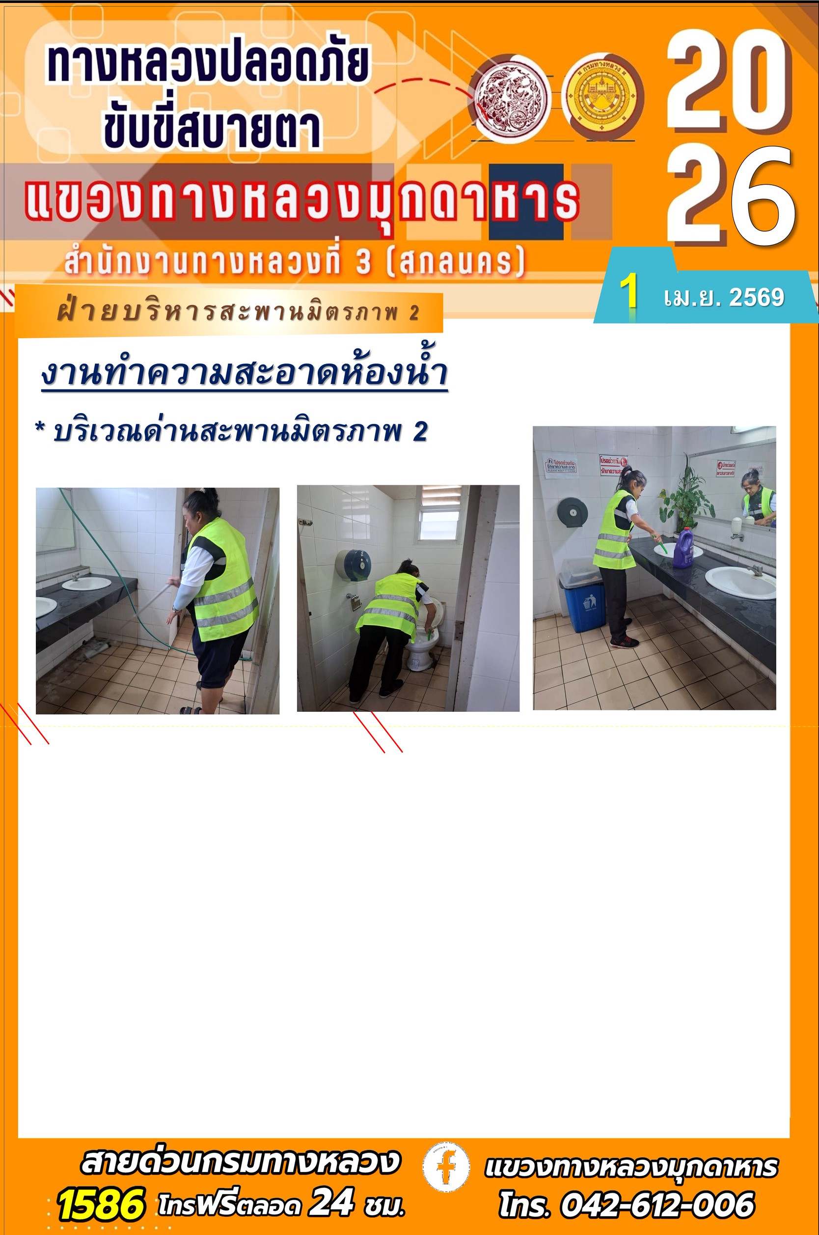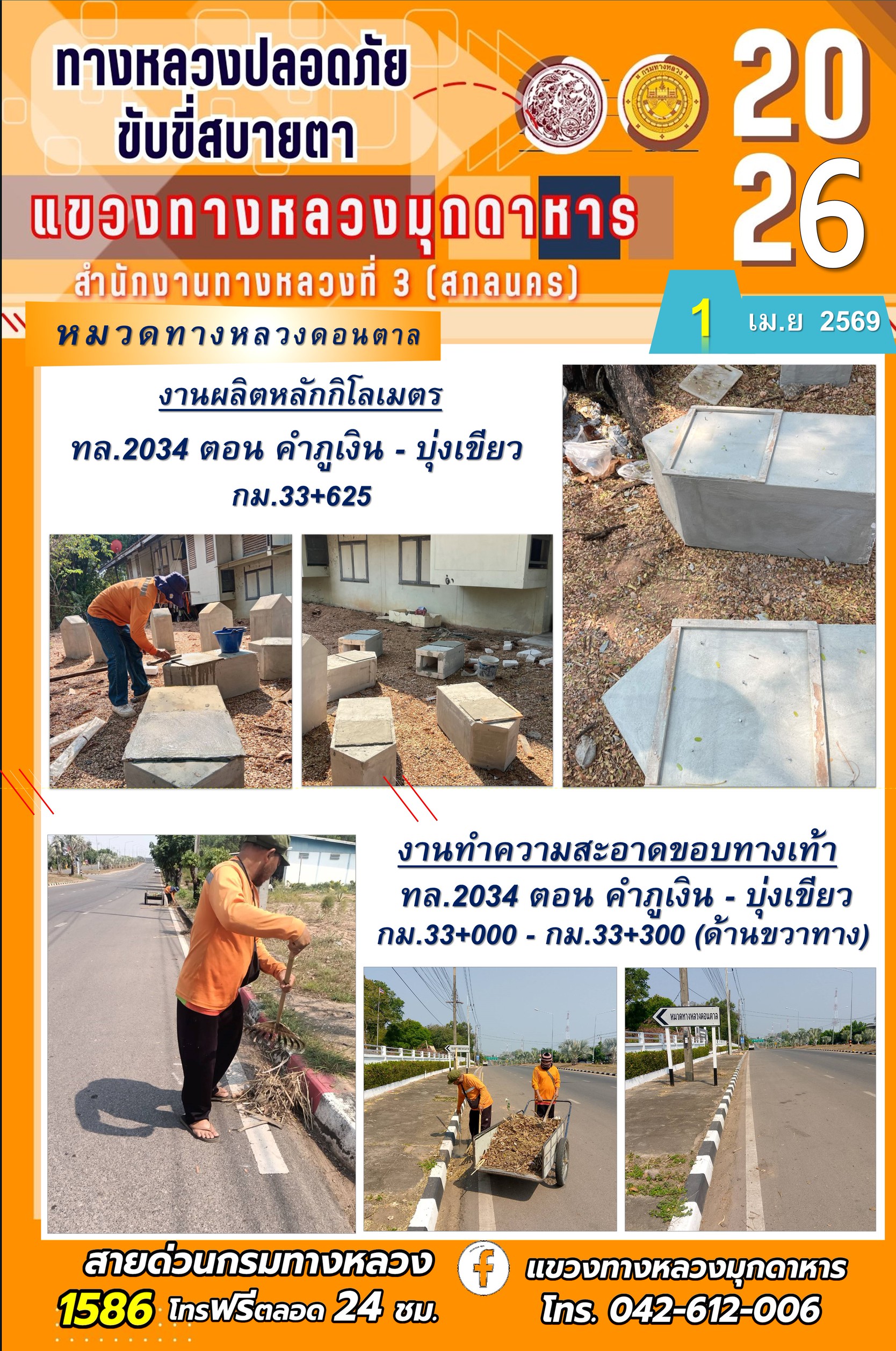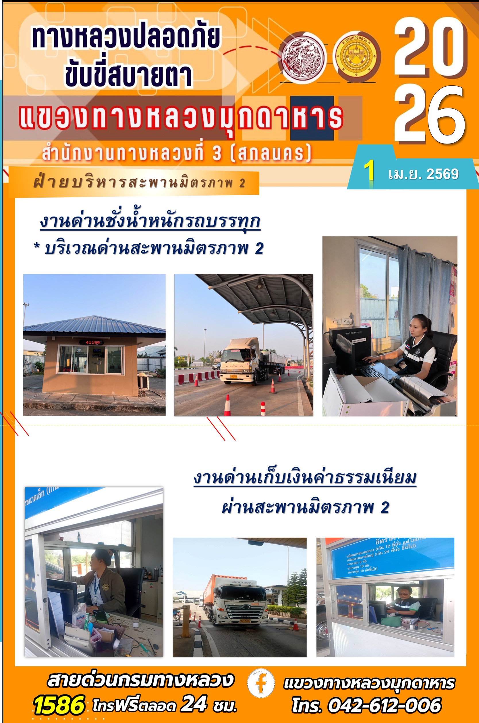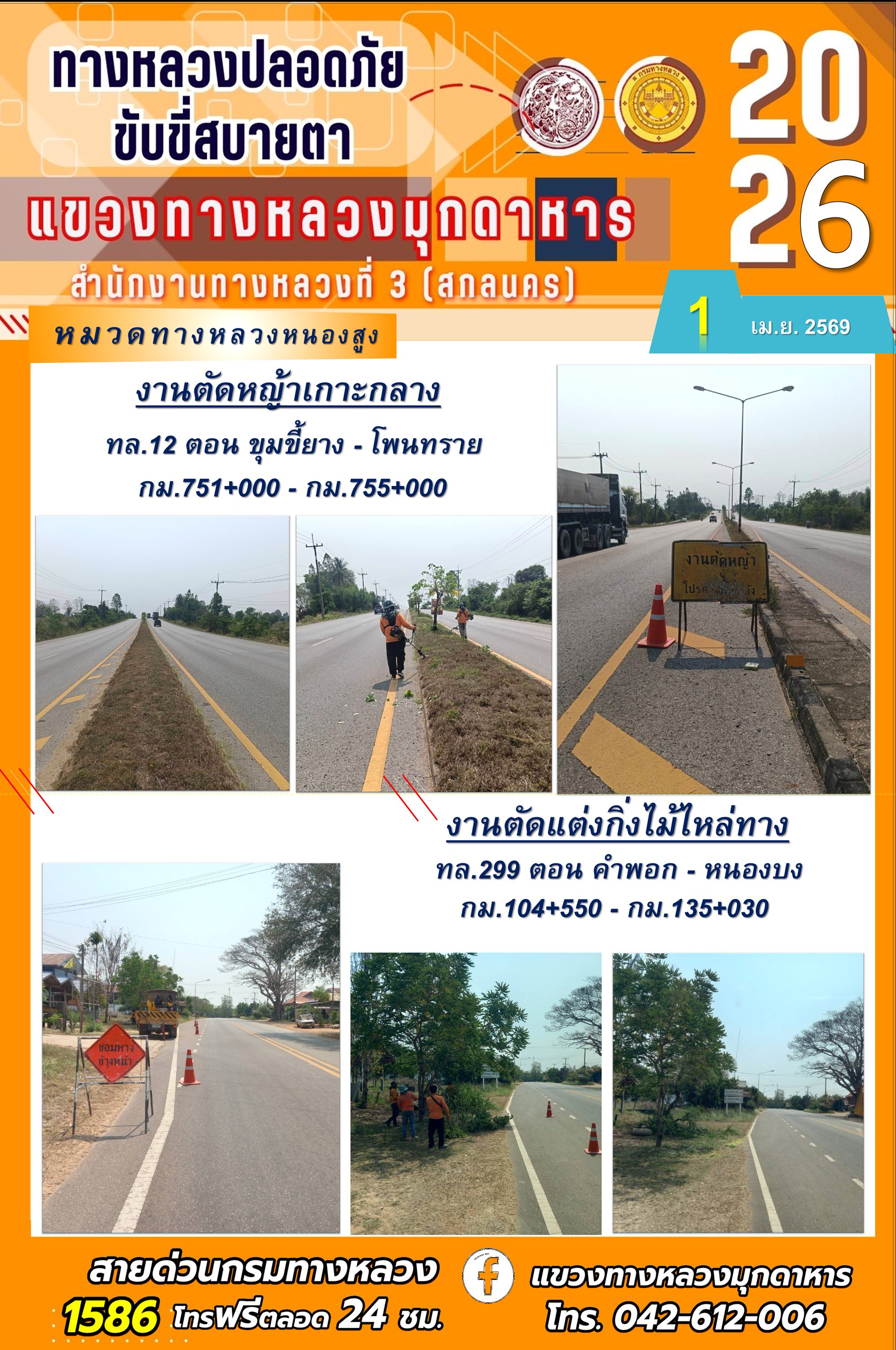 ข้อมูลภาพกิจกรรม : ประจำวันที่ 1 เมษายน 2569 โครงการทางหลวงปลอดภัย ขับขี่สบายตา หน่วยงานในสังกัดแขวงทางหลวง
