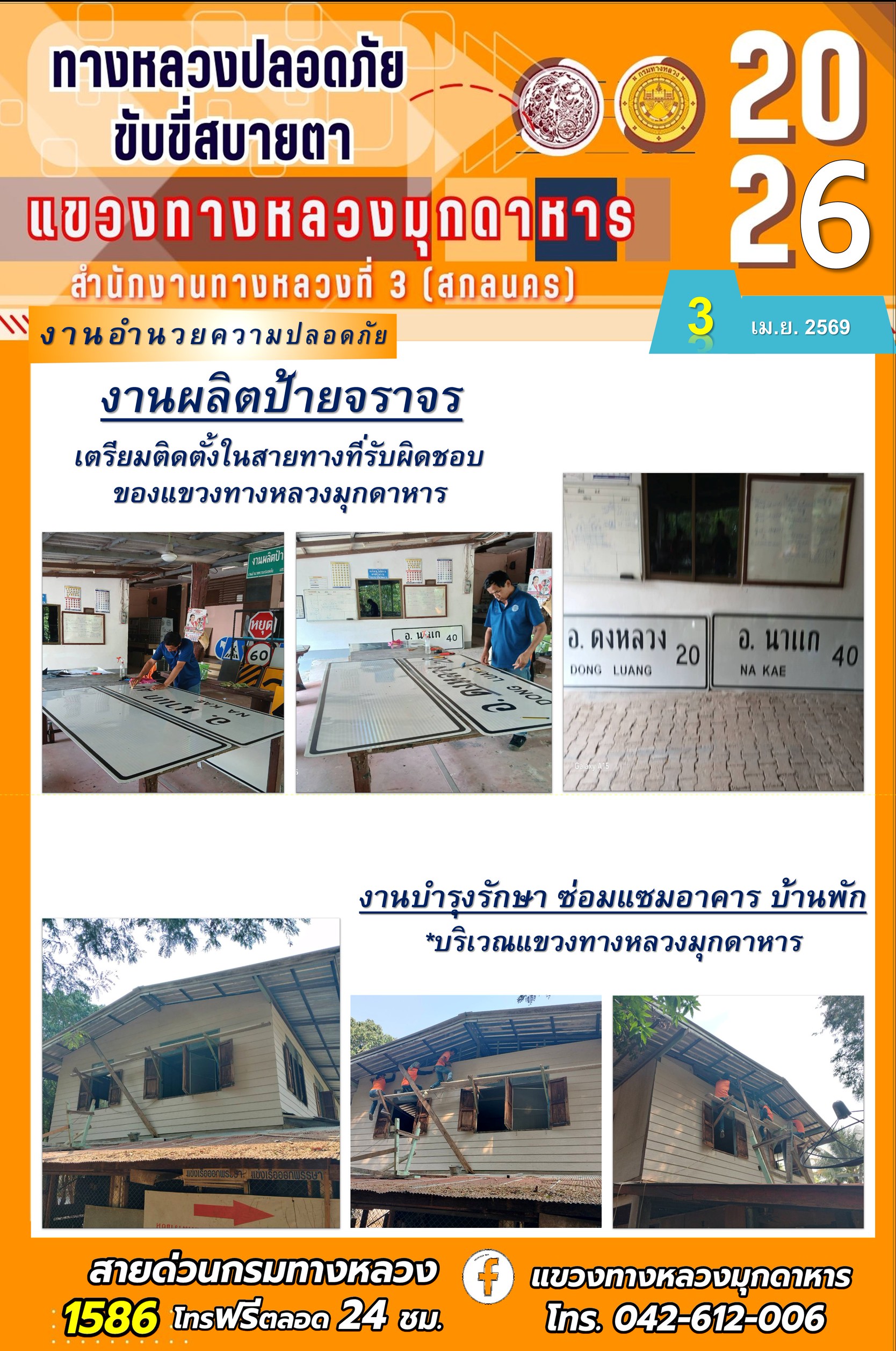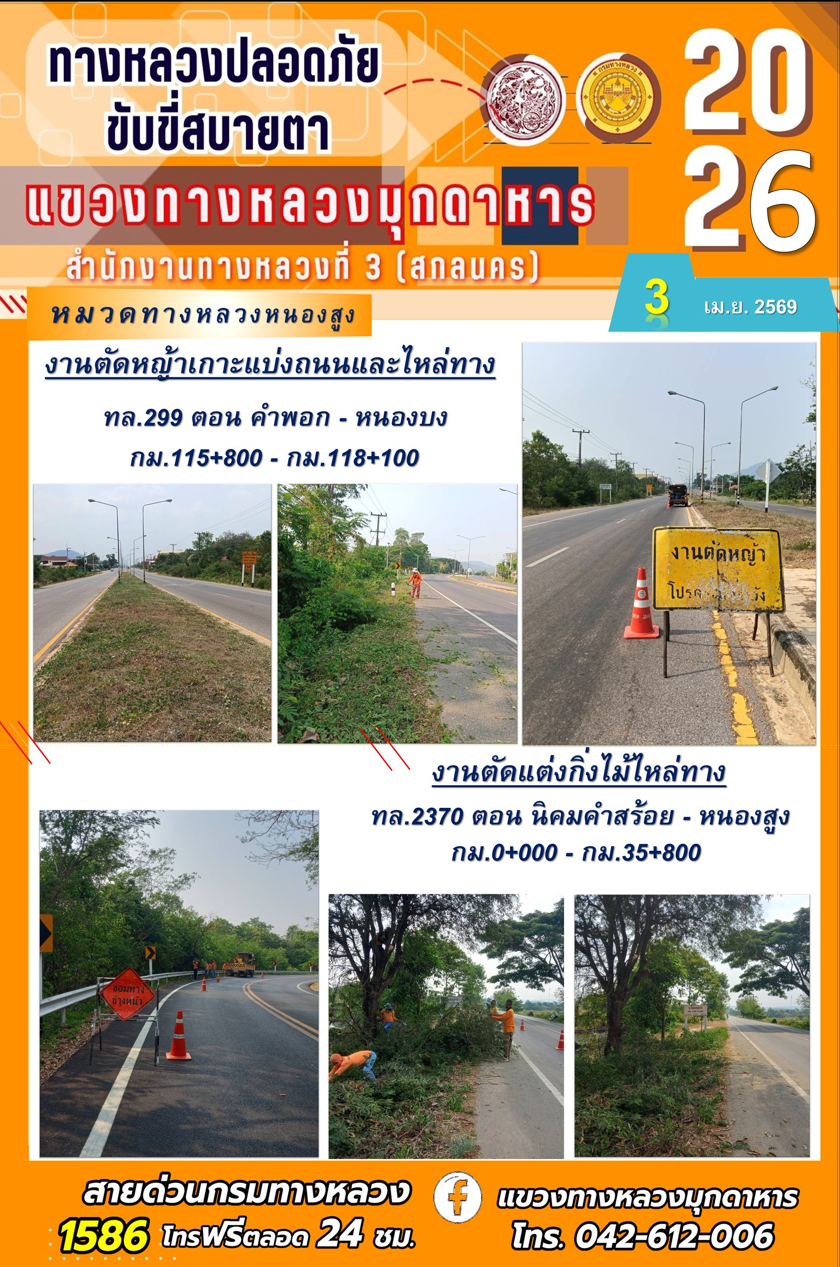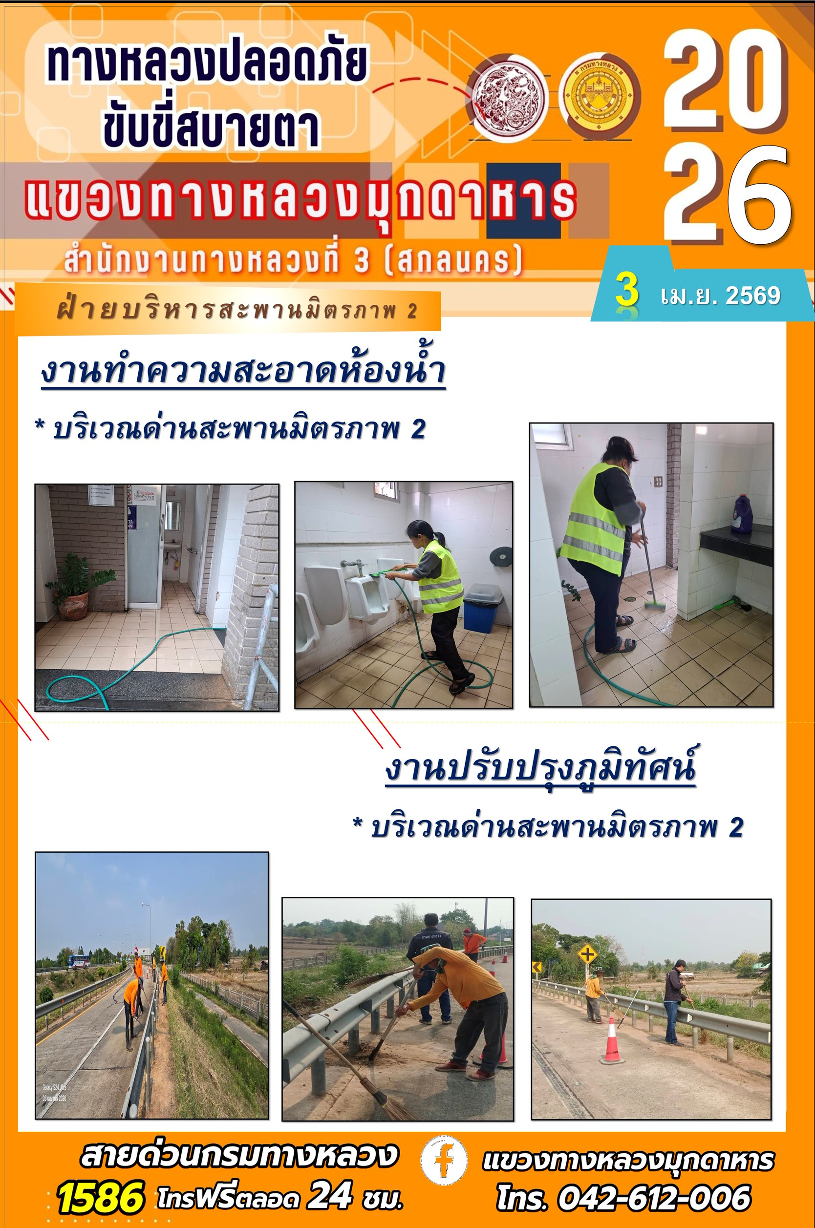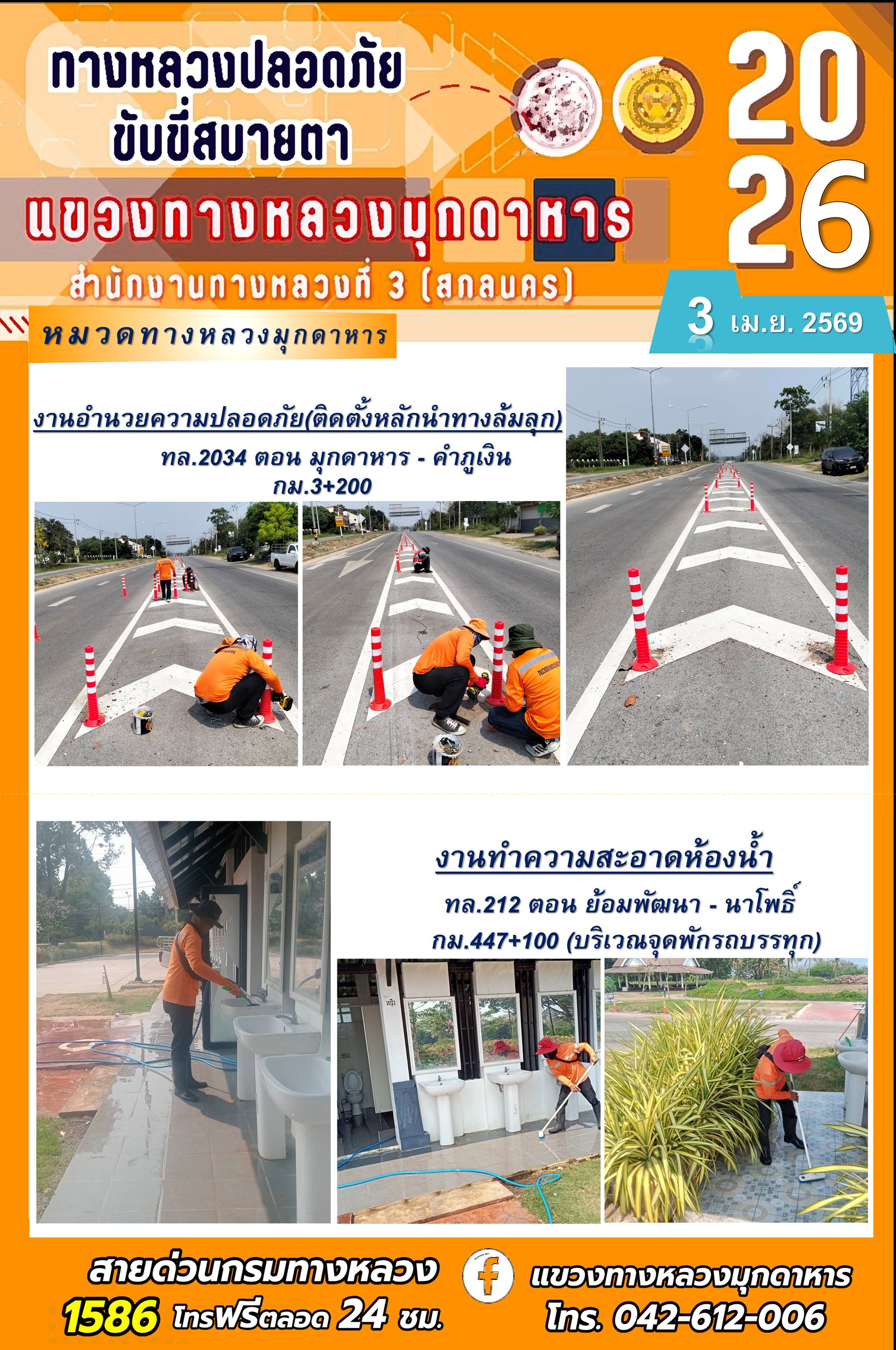 ประจำวันที่ 3 เมษายน 2569 โครงการทางหลวงปลอดภัย ขับขี่สบายตา หน่วยงานในสังกัดแขวงทางหลวง