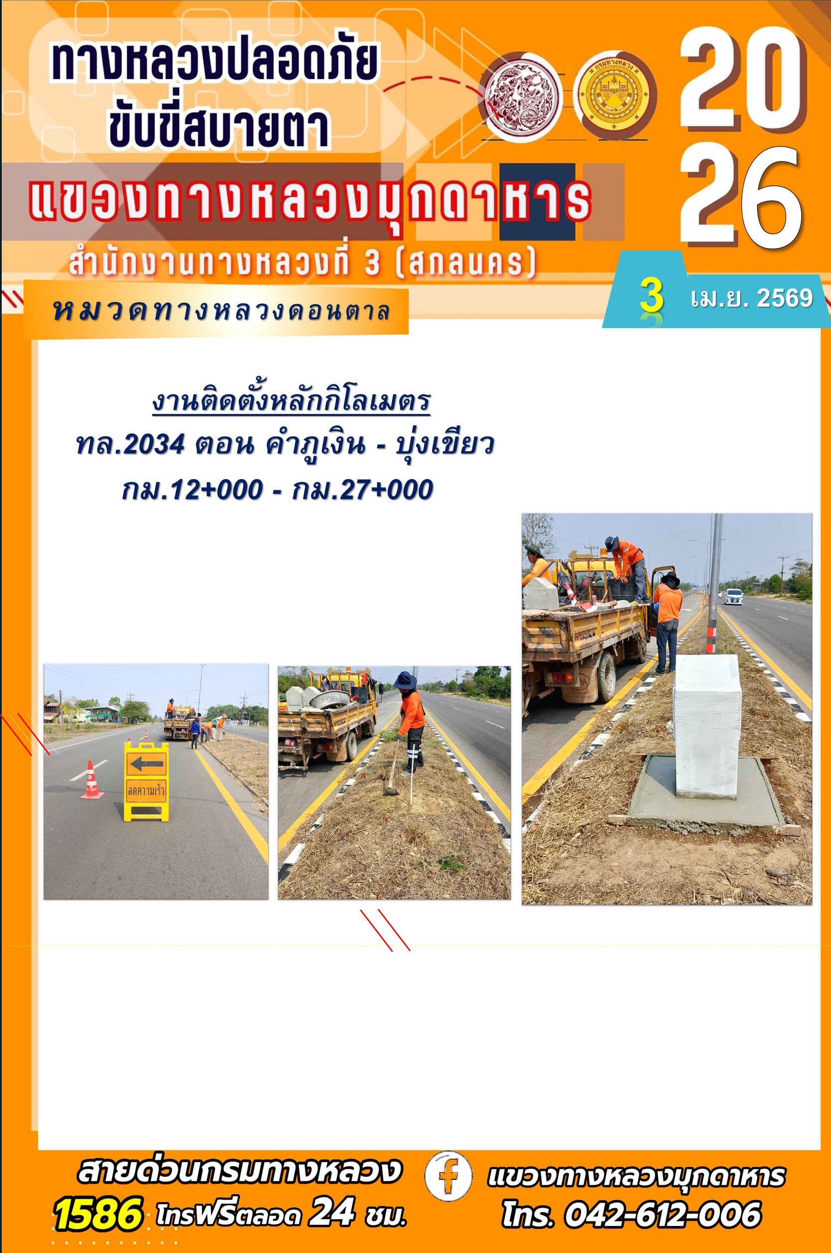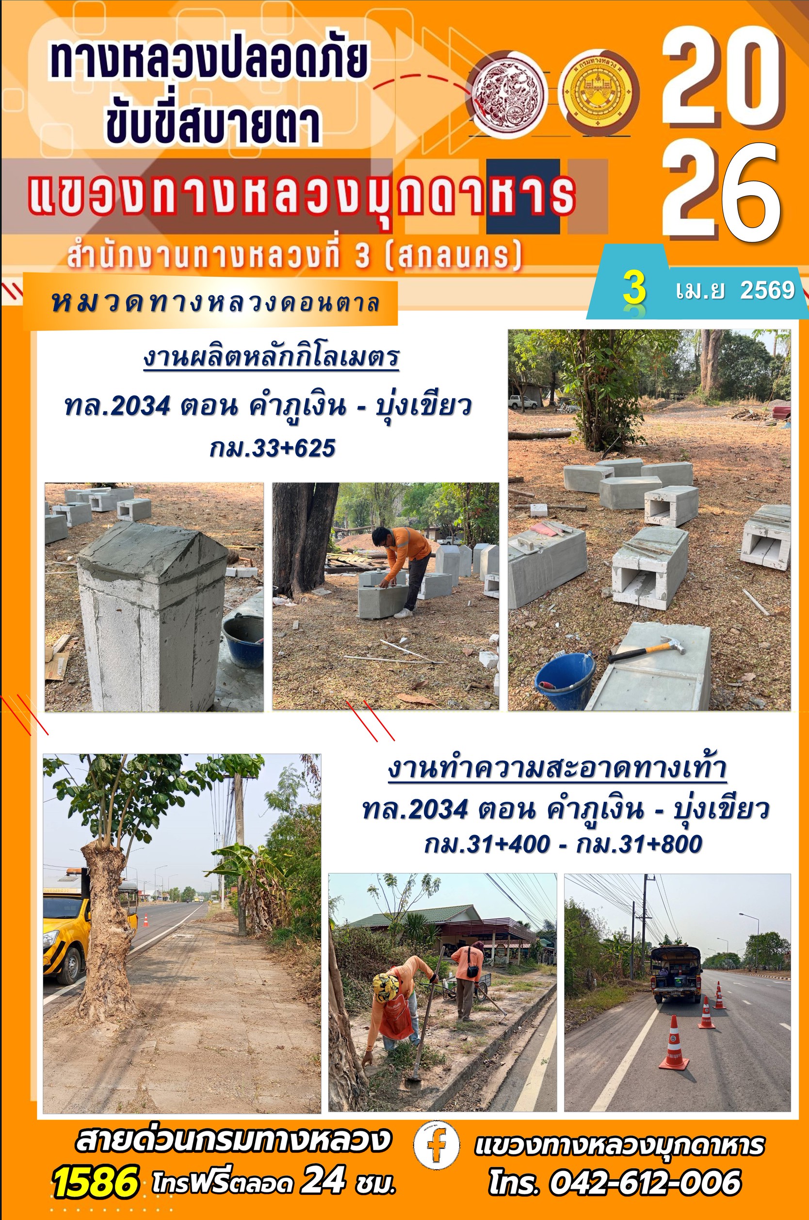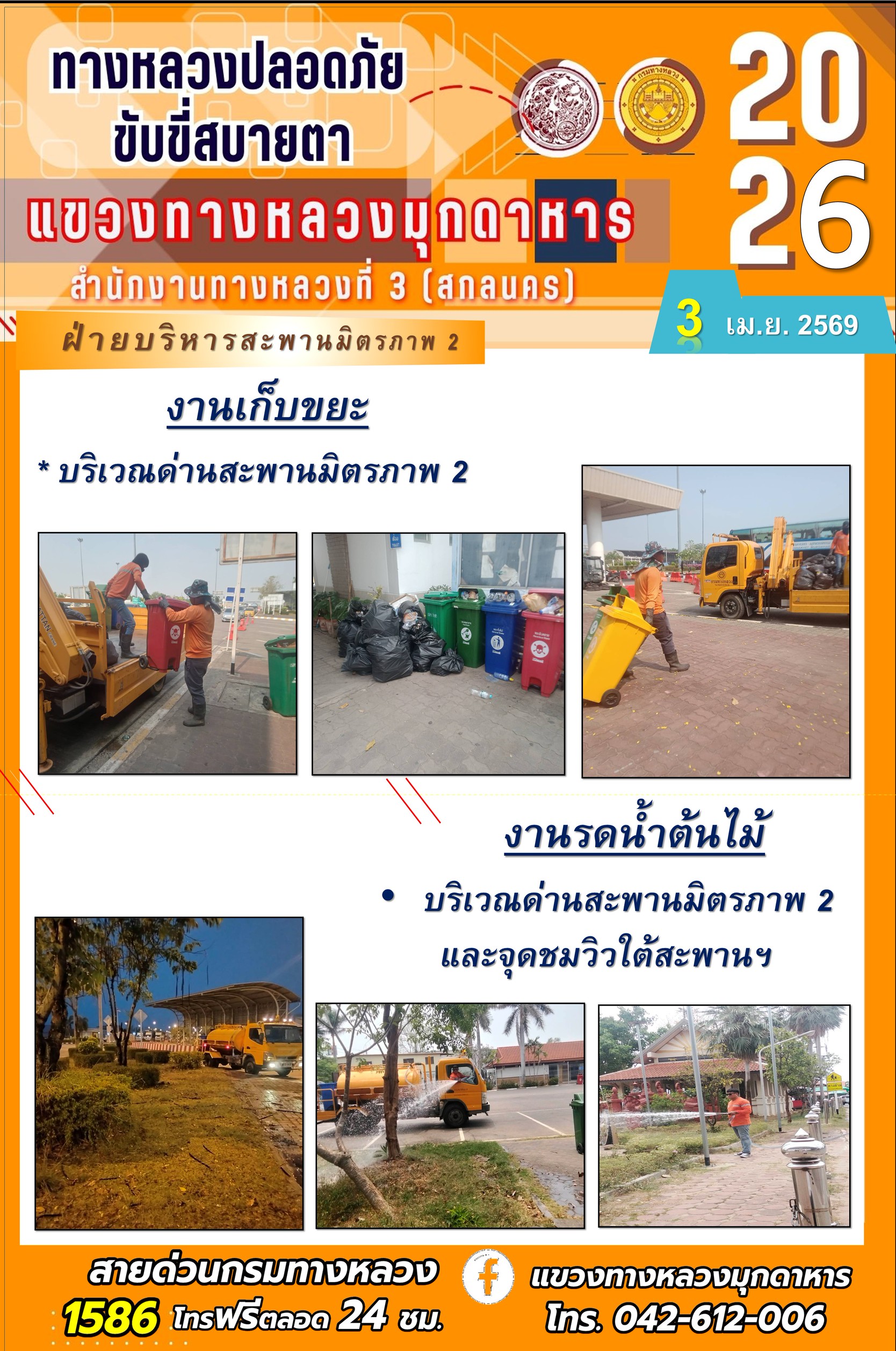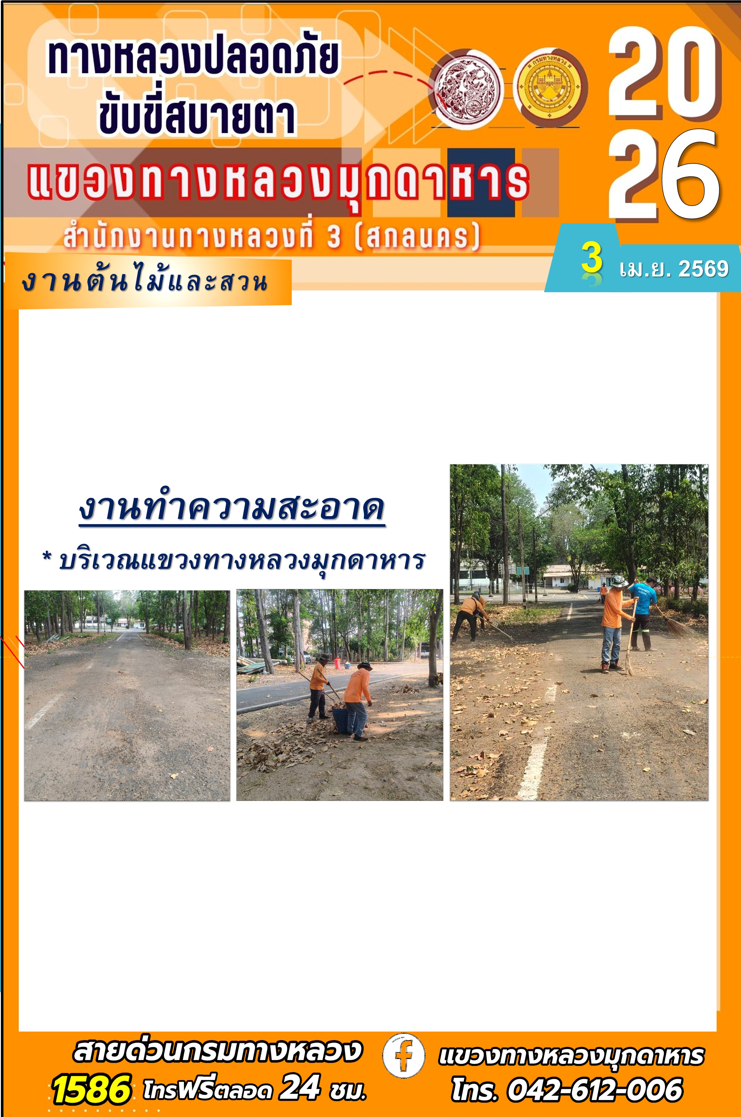 ประจำวันที่ 3 เมษายน 2569 โครงการทางหลวงปลอดภัย ขับขี่สบายตา หน่วยงานในสังกัดแขวงทางหลวง