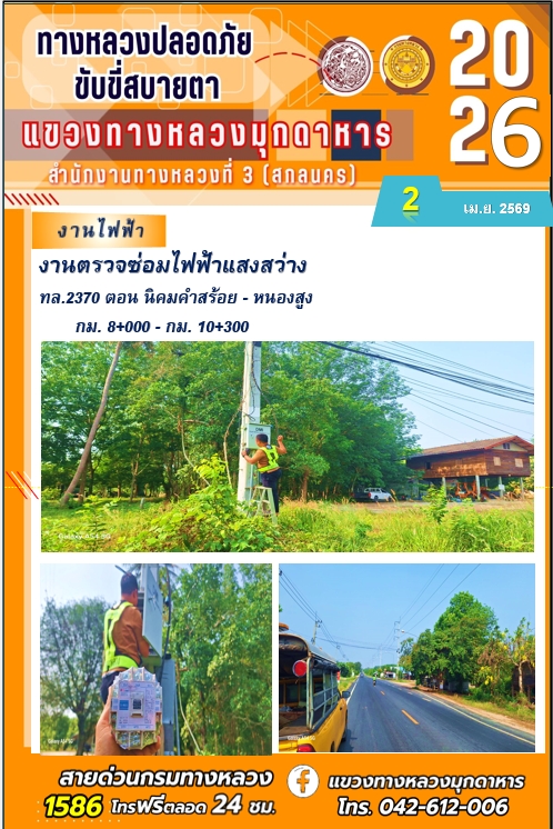 ข้อมูลภาพกิจกรรม : ประจำวันที่ 3 เมษายน 2569 โครงการทางหลวงปลอดภัย ขับขี่สบายตา หน่วยงานในสังกัดแขวงทางหลวง
