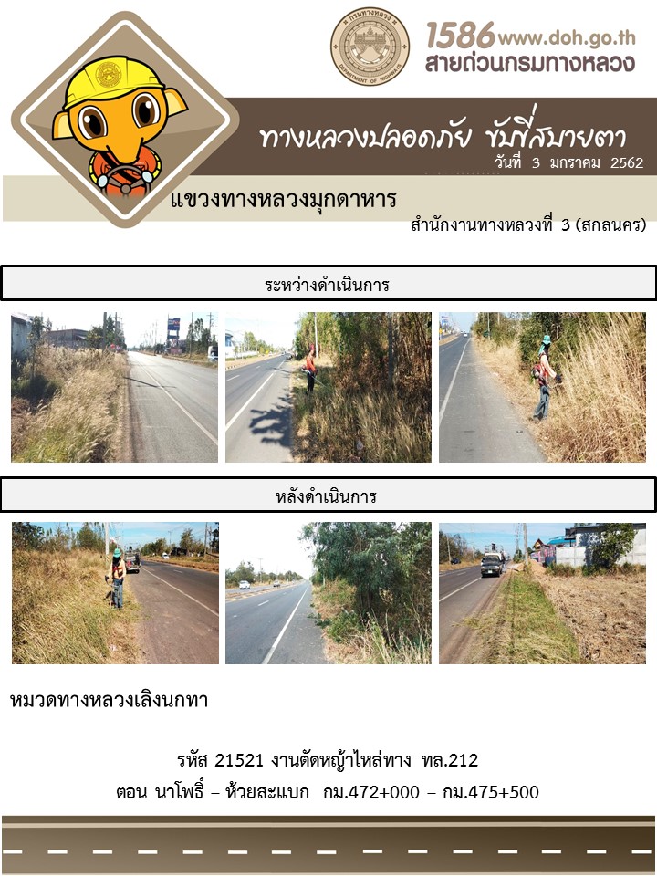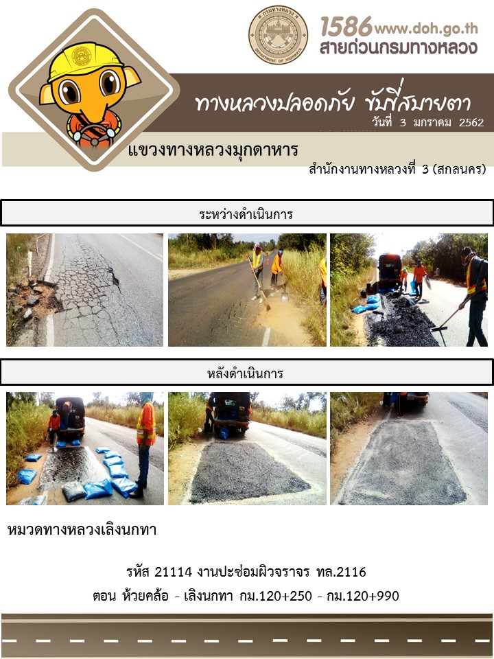 โครงการทางหลวงปลอดภัย ขับขี่สบายตา หน่วยงานในสังกัดแขวง มกราคม 3