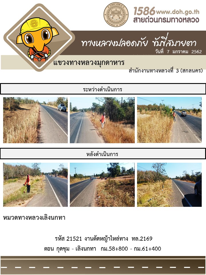 โครงการทางหลวงปลอดภัย ขับขี่สบายตา หน่วยงานในสังกัดแขวง มกราคม 7