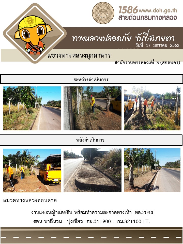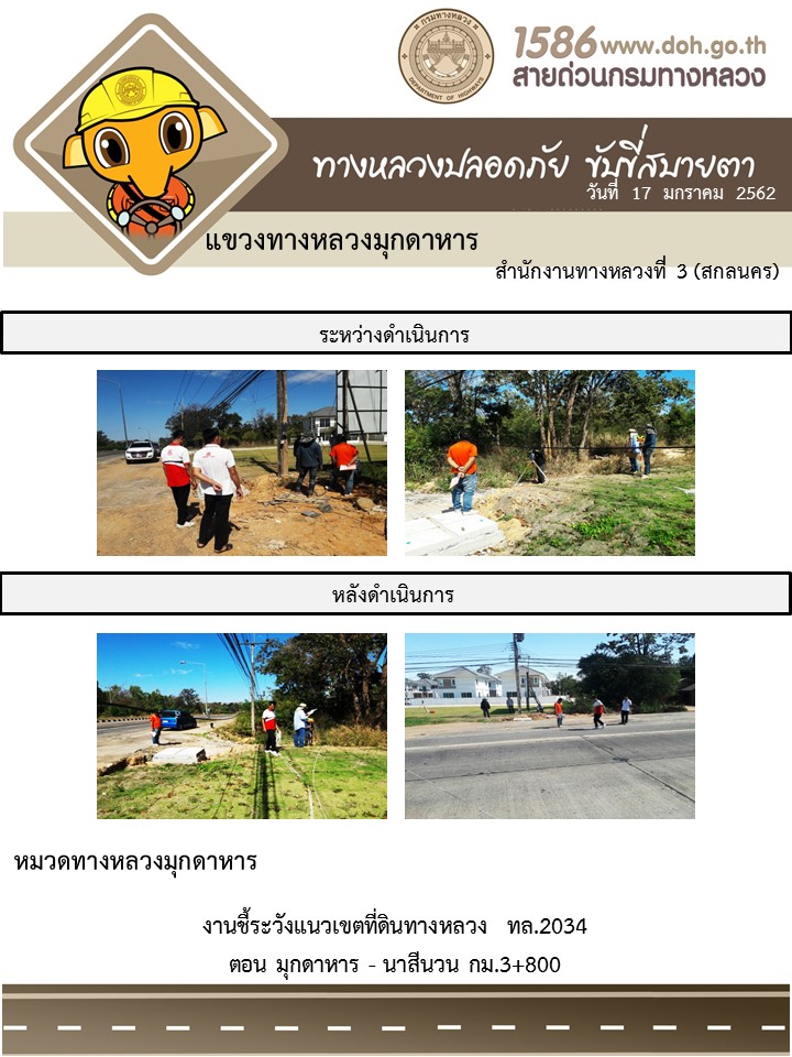 โครงการทางหลวงปลอดภัย ขับขี่สบายตา หน่วยงานในสังกัดแขวง มกราคม 17