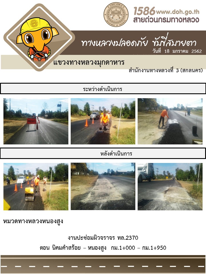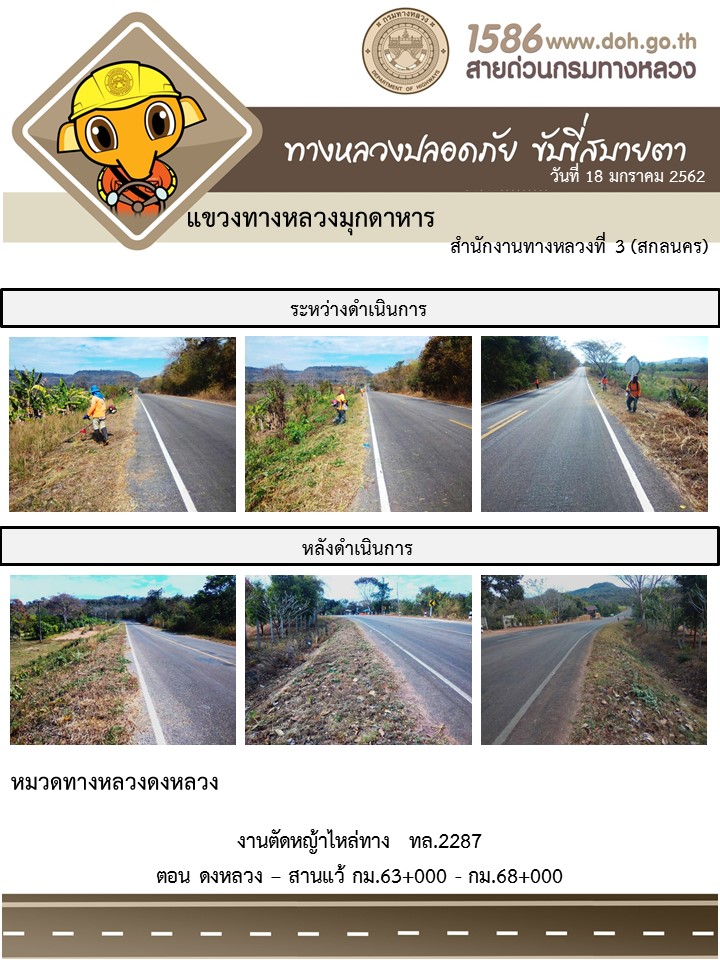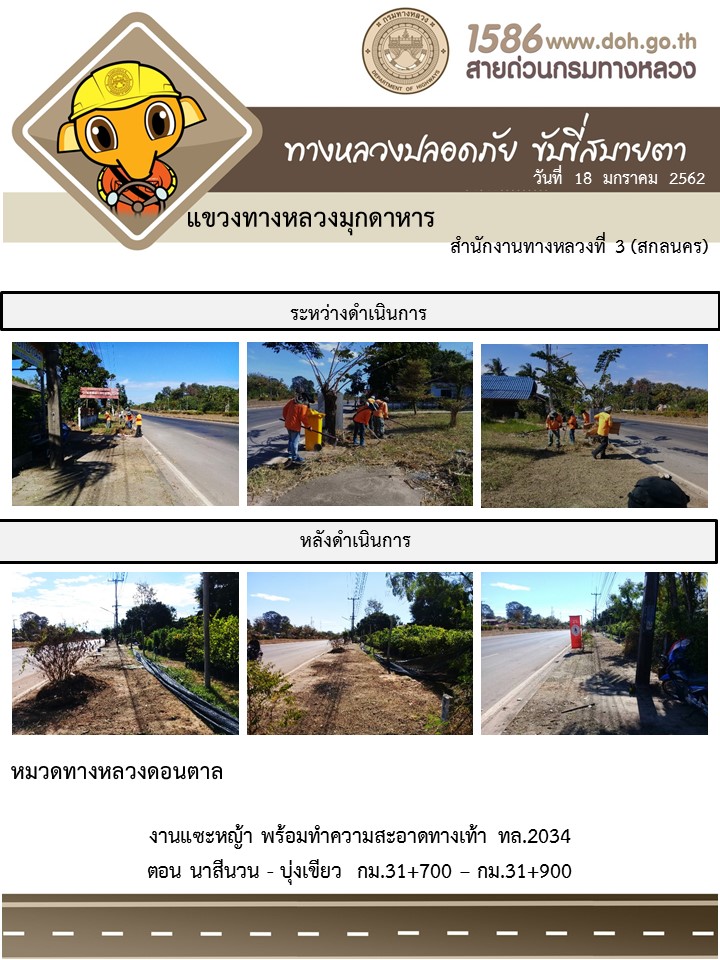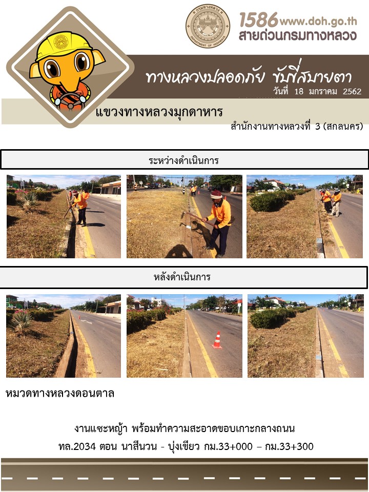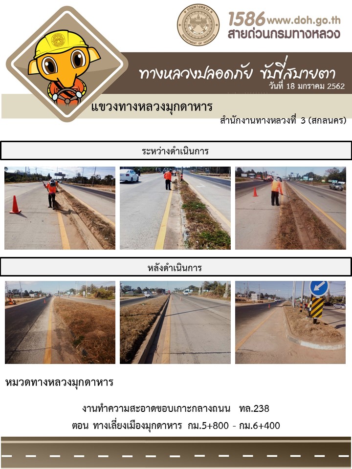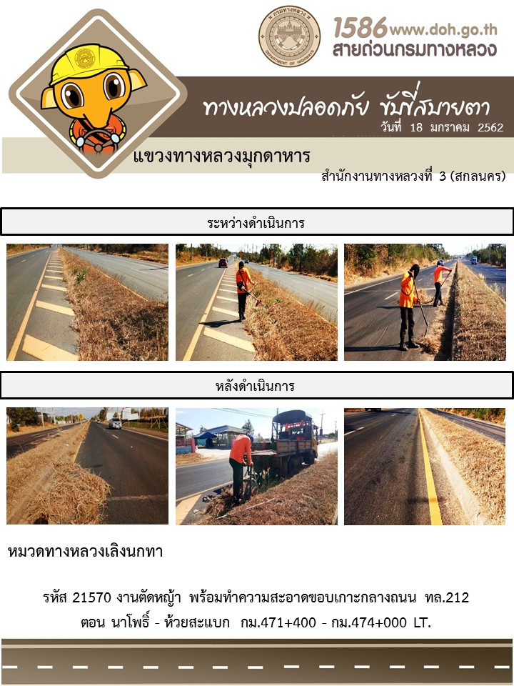 ข้อมูลภาพกิจกรรม : โครงการทางหลวงปลอดภัย ขับขี่สบายตา หน่วยงานในสังกัดแขวง มกราคม 18