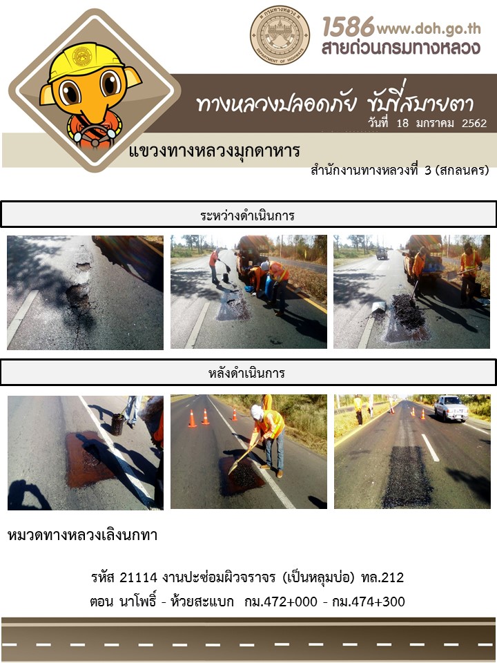 โครงการทางหลวงปลอดภัย ขับขี่สบายตา หน่วยงานในสังกัดแขวง มกราคม 18