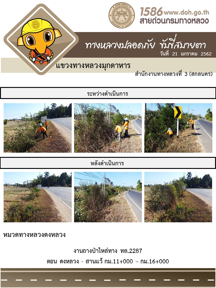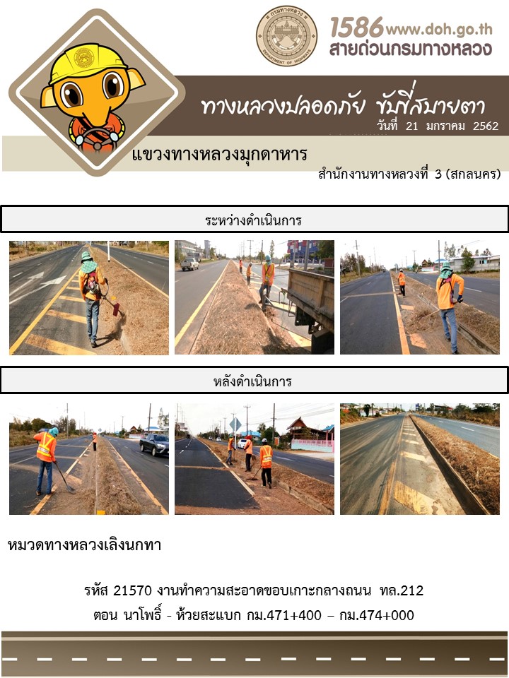 ข้อมูลภาพกิจกรรม : โครงการทางหลวงปลอดภัย ขับขี่สบายตา หน่วยงานในสังกัดแขวง มกราคม 21