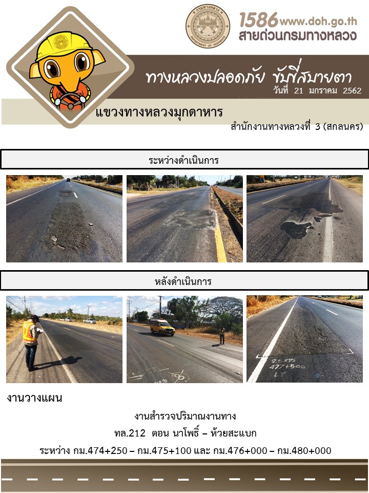 โครงการทางหลวงปลอดภัย ขับขี่สบายตา หน่วยงานในสังกัดแขวง มกราคม 21