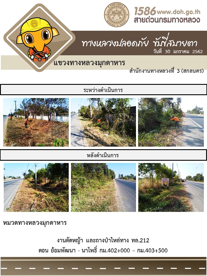 ข้อมูลภาพกิจกรรม : โครงการทางหลวงปลอดภัย ขับขี่สบายตา หน่วยงานในสังกัดแขวง มกราคม30