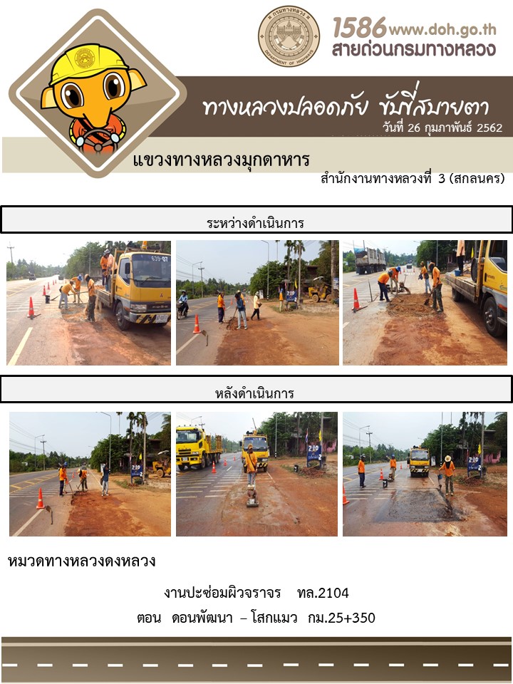 โครงการทางหลวงปลอดภัย ขับขี่สบายตา หน่วยงานในสังกัดแขวง กุมภาพันธ์ 26