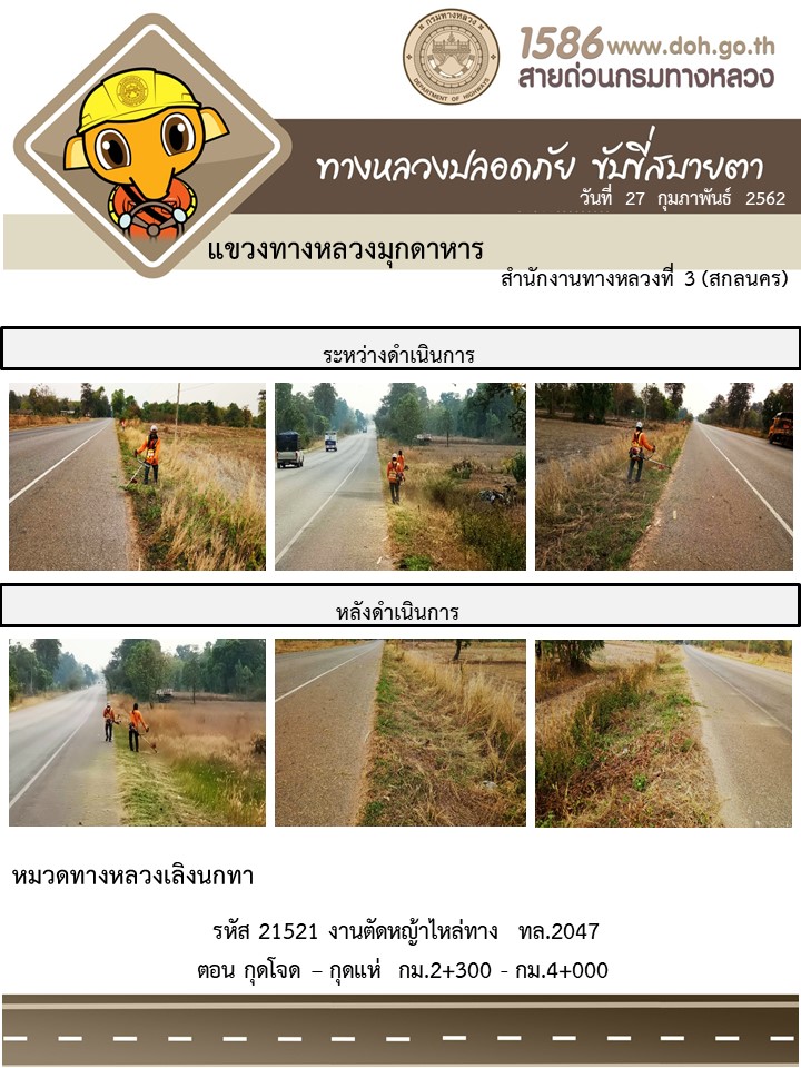 โครงการทางหลวงปลอดภัย ขับขี่สบายตา หน่วยงานในสังกัดแขวง กุมภาพันธ์ 28