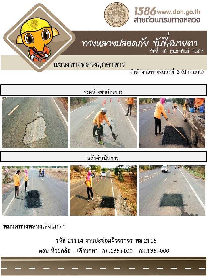 ข้อมูลภาพกิจกรรม : โครงการทางหลวงปลอดภัย ขับขี่สบายตา หน่วยงานในสังกัดแขวง มีนาคม 4