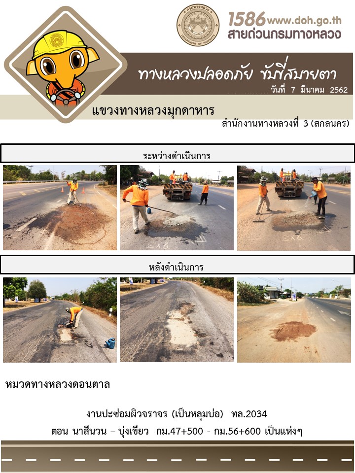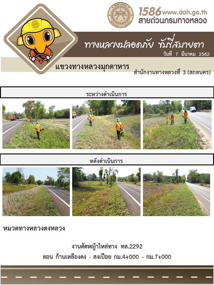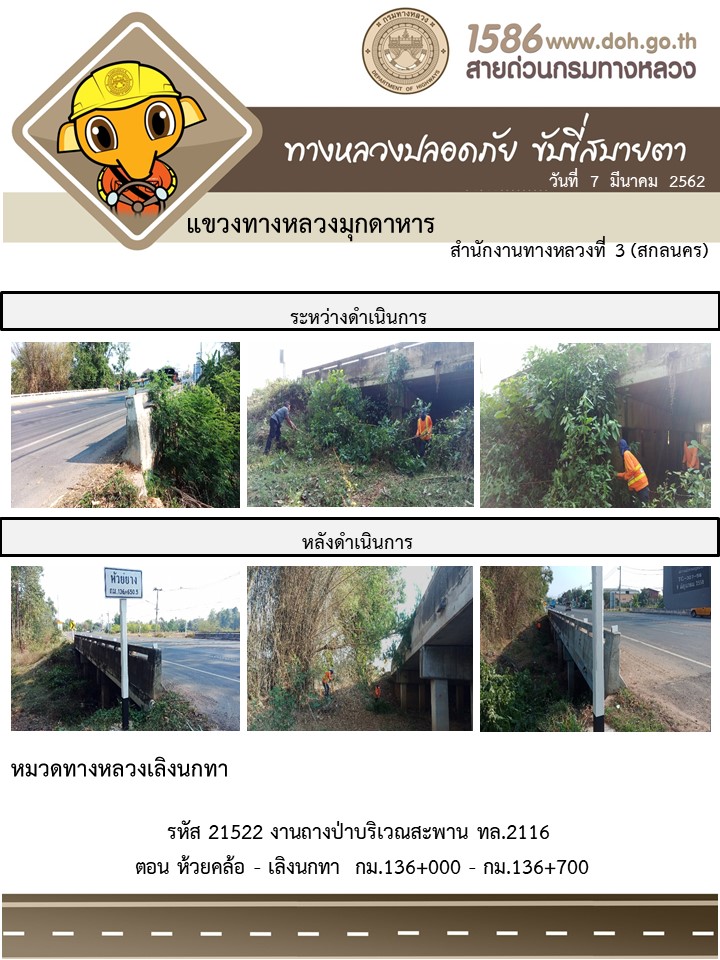 โครงการทางหลวงปลอดภัย ขับขี่สบายตา หน่วยงานในสังกัดแขวง มีนาคม 7