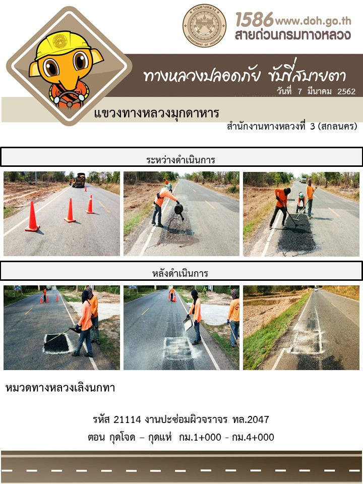 ข้อมูลภาพกิจกรรม : โครงการทางหลวงปลอดภัย ขับขี่สบายตา หน่วยงานในสังกัดแขวง มีนาคม 7