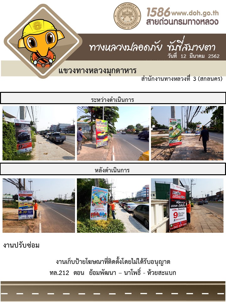 โครงการทางหลวงปลอดภัย ขับขี่สบายตา หน่วยงานในสังกัดแขวง มีนาคม 12