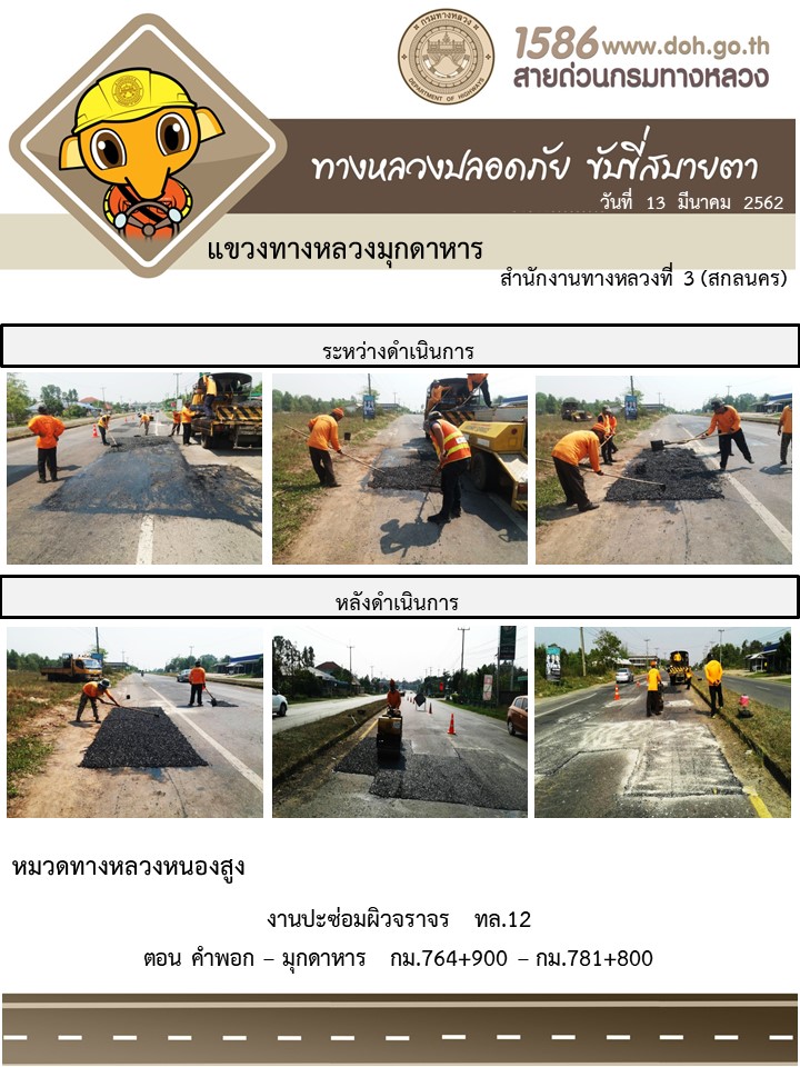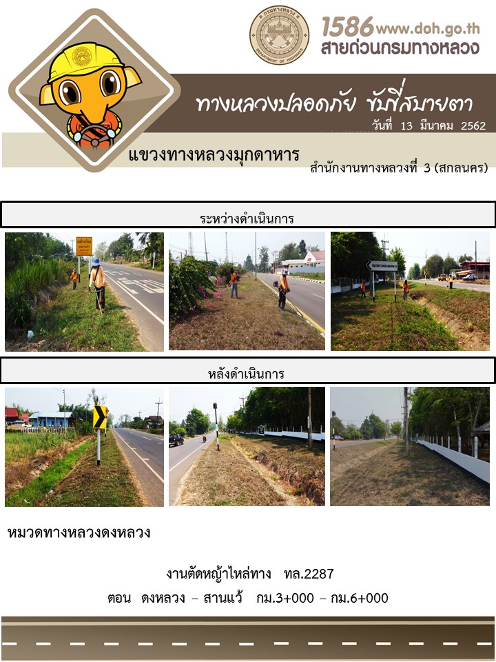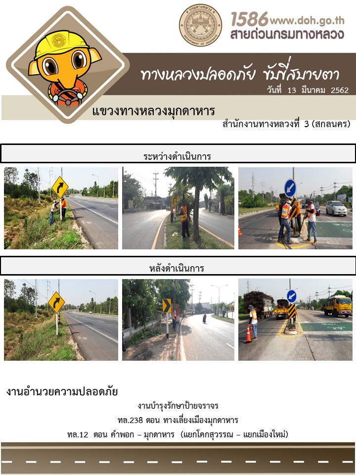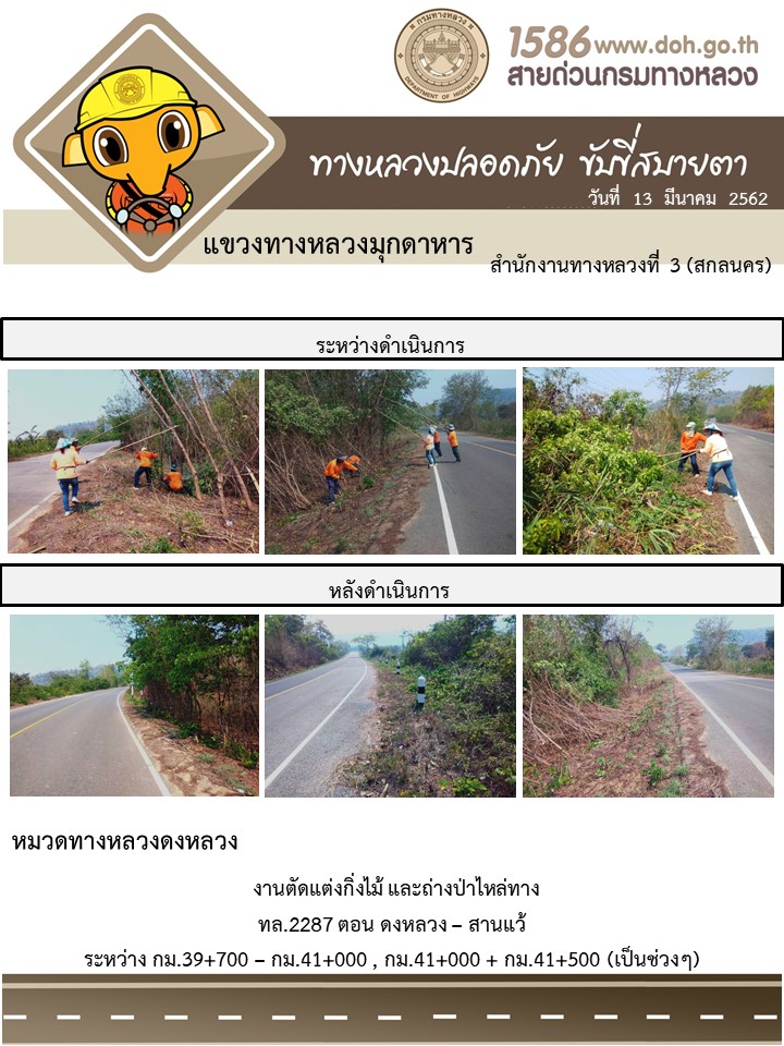โครงการทางหลวงปลอดภัย ขับขี่สบายตา หน่วยงานในสังกัดแขวง มีนาคม 13