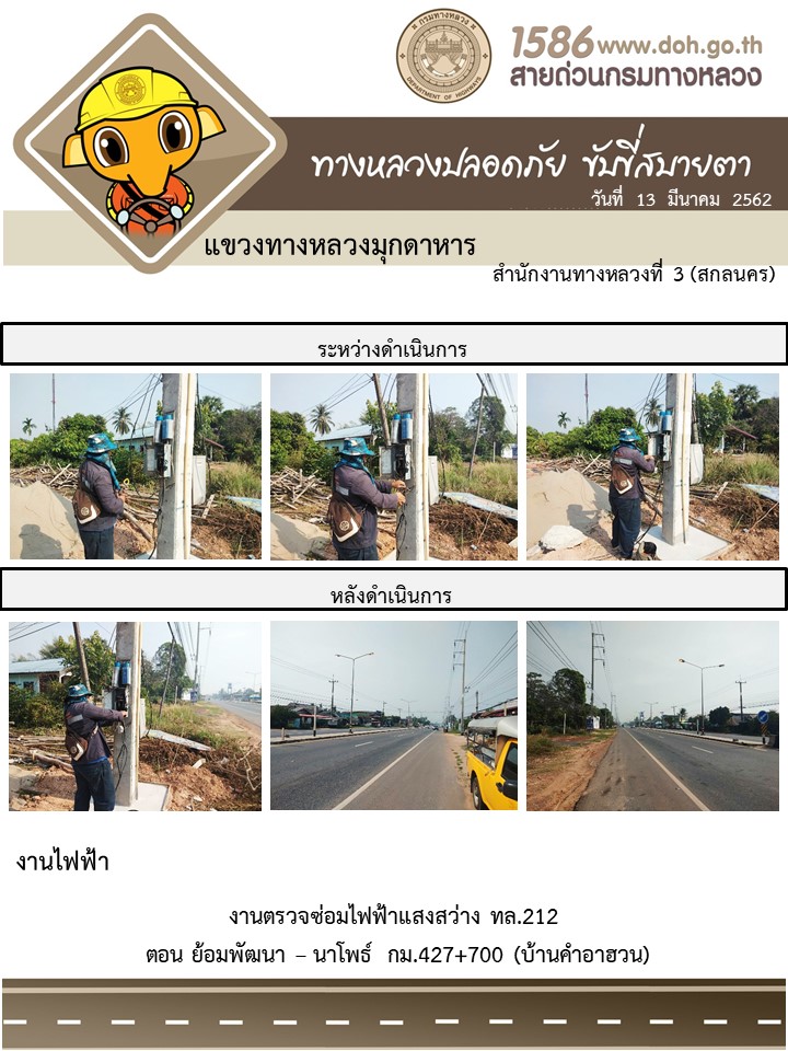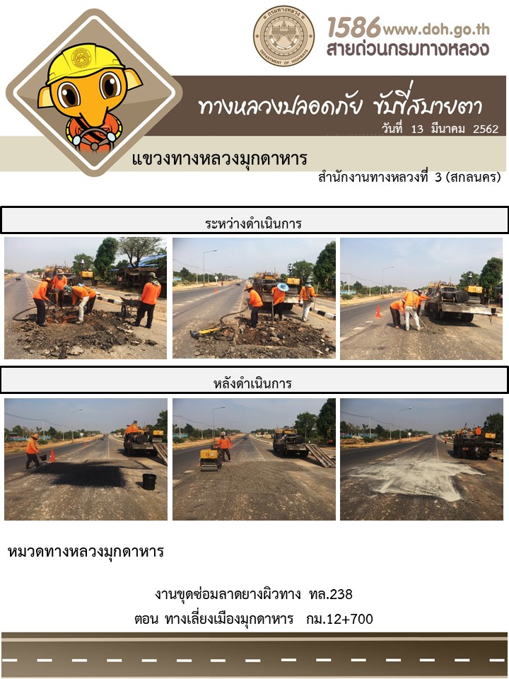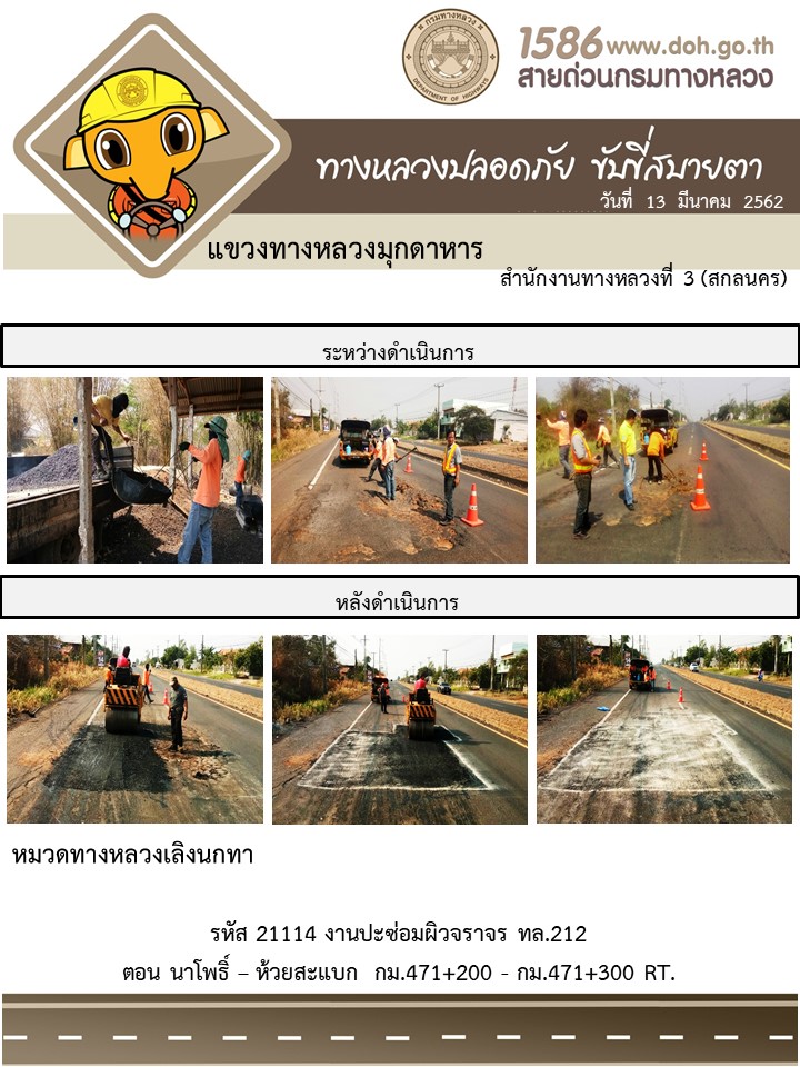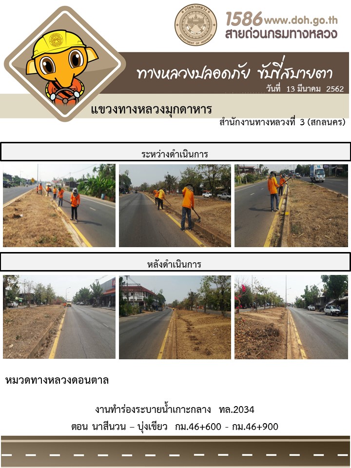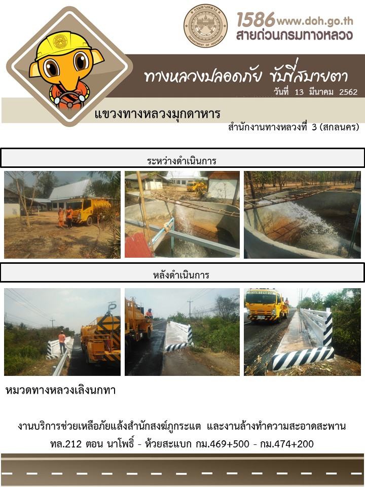 โครงการทางหลวงปลอดภัย ขับขี่สบายตา หน่วยงานในสังกัดแขวง มีนาคม 13