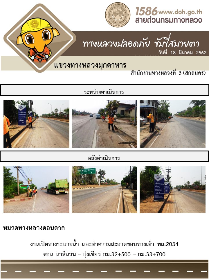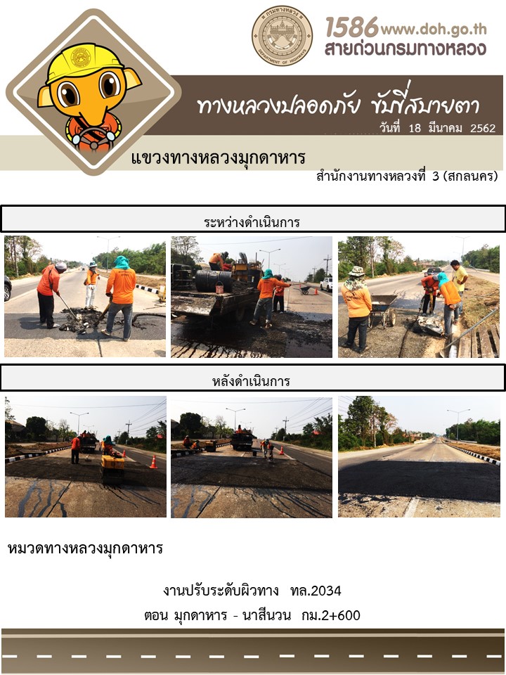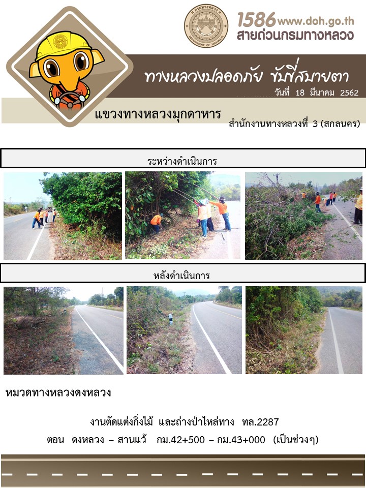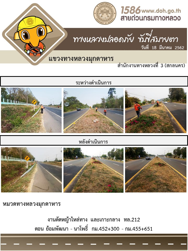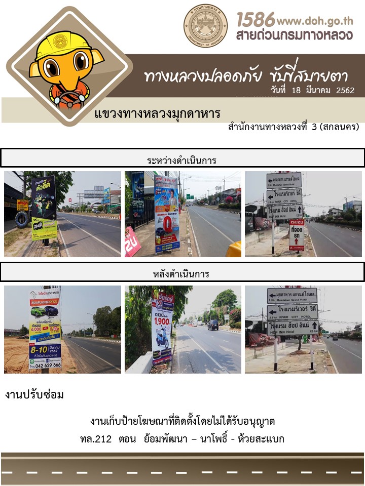 โครงการทางหลวงปลอดภัย ขับขี่สบายตา หน่วยงานในสังกัดแขวง มีนาคม 18