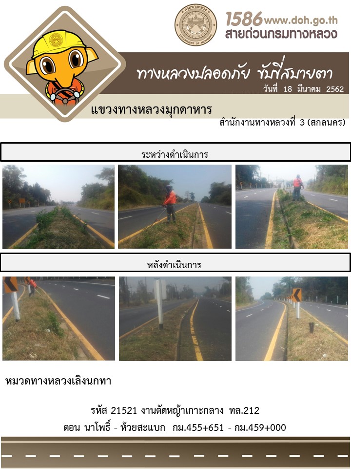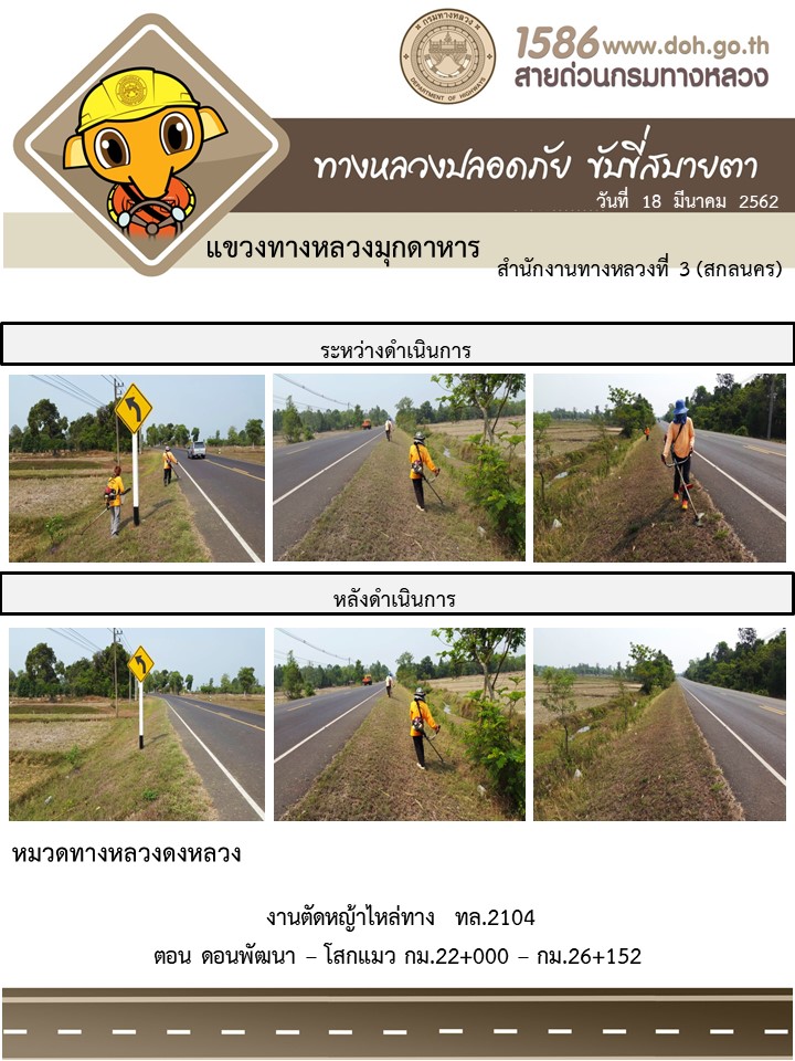 ข้อมูลภาพกิจกรรม : โครงการทางหลวงปลอดภัย ขับขี่สบายตา หน่วยงานในสังกัดแขวง มีนาคม 18