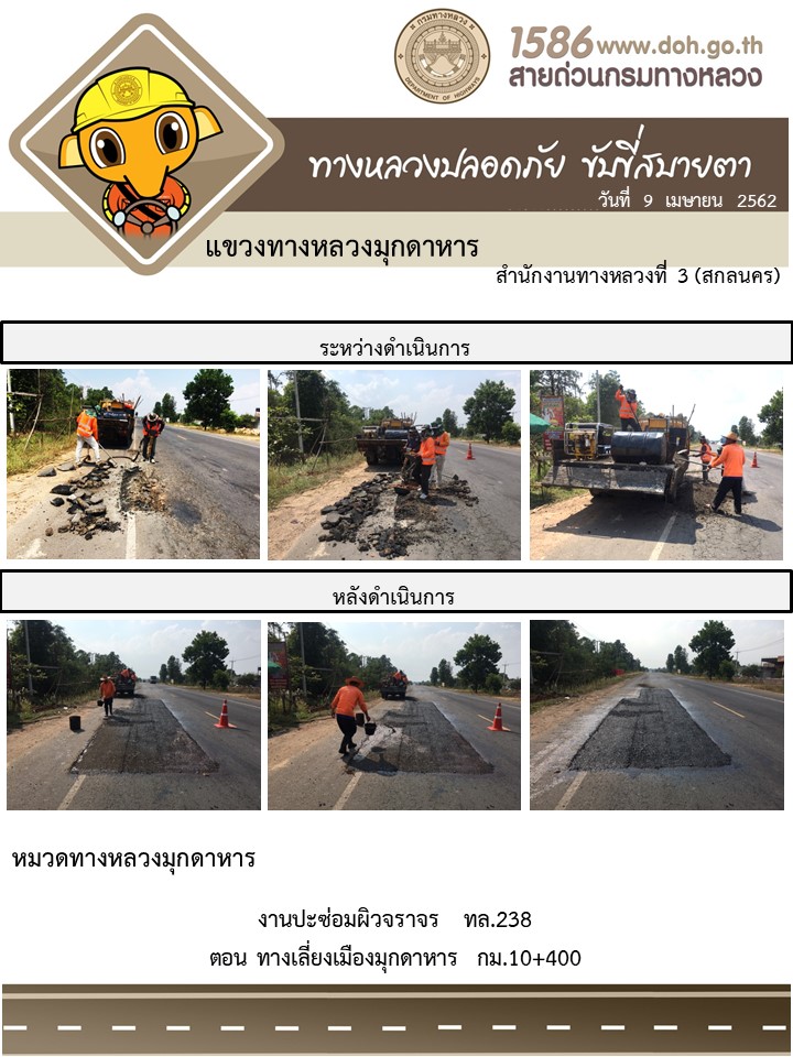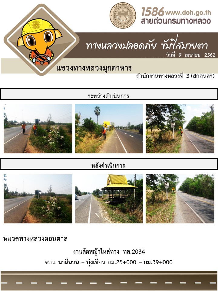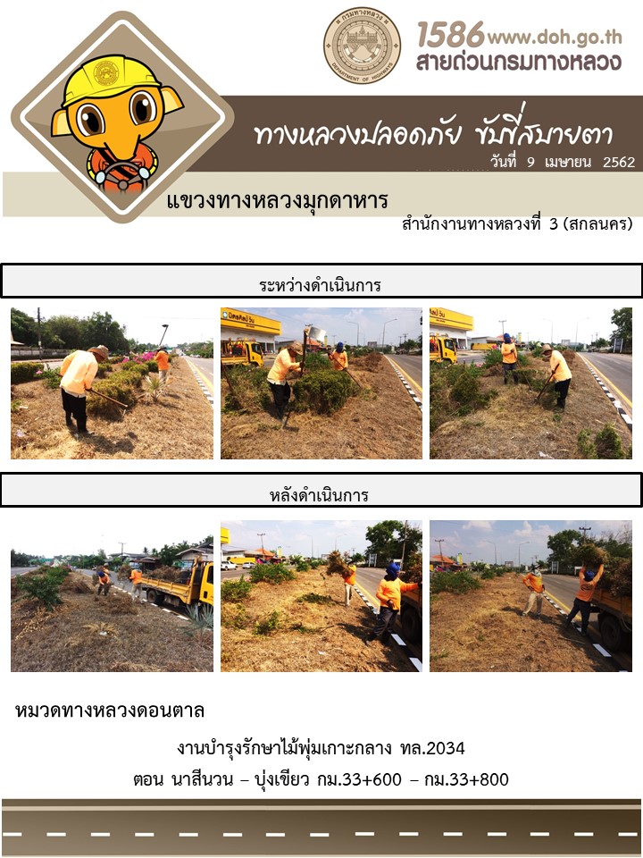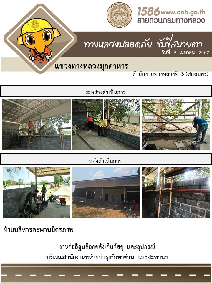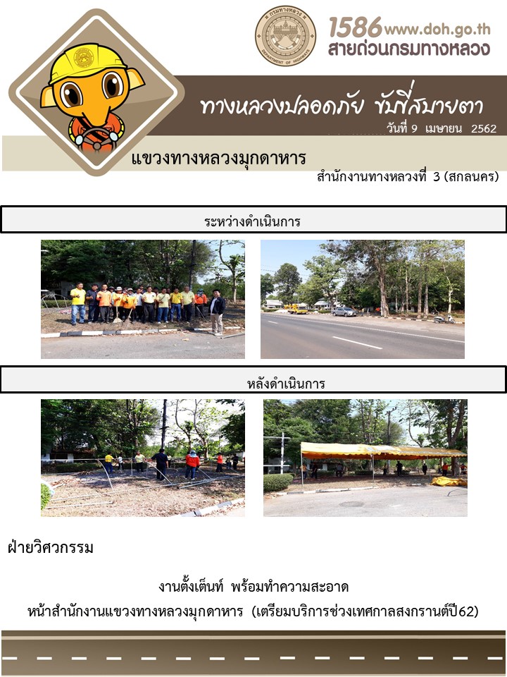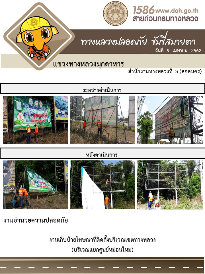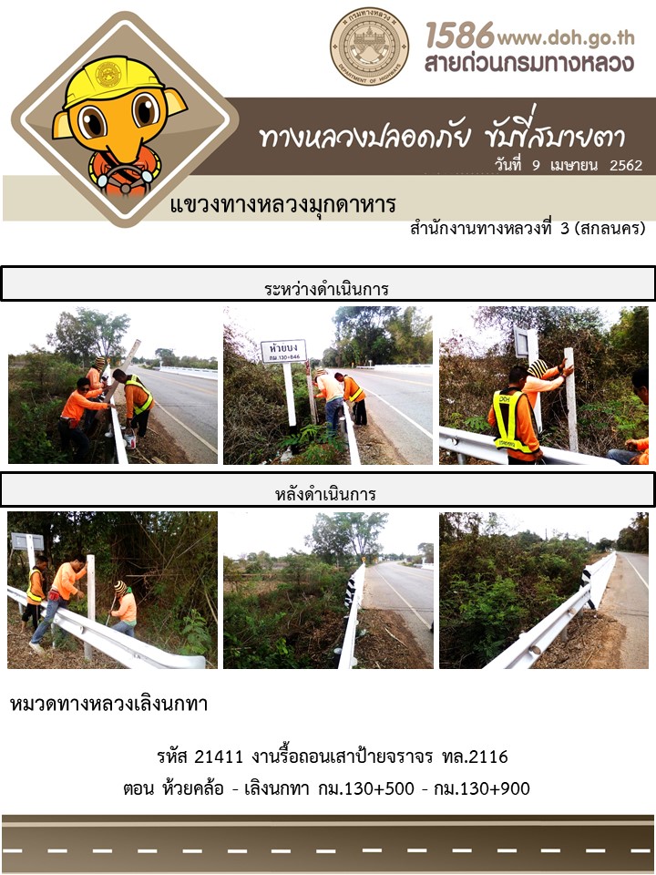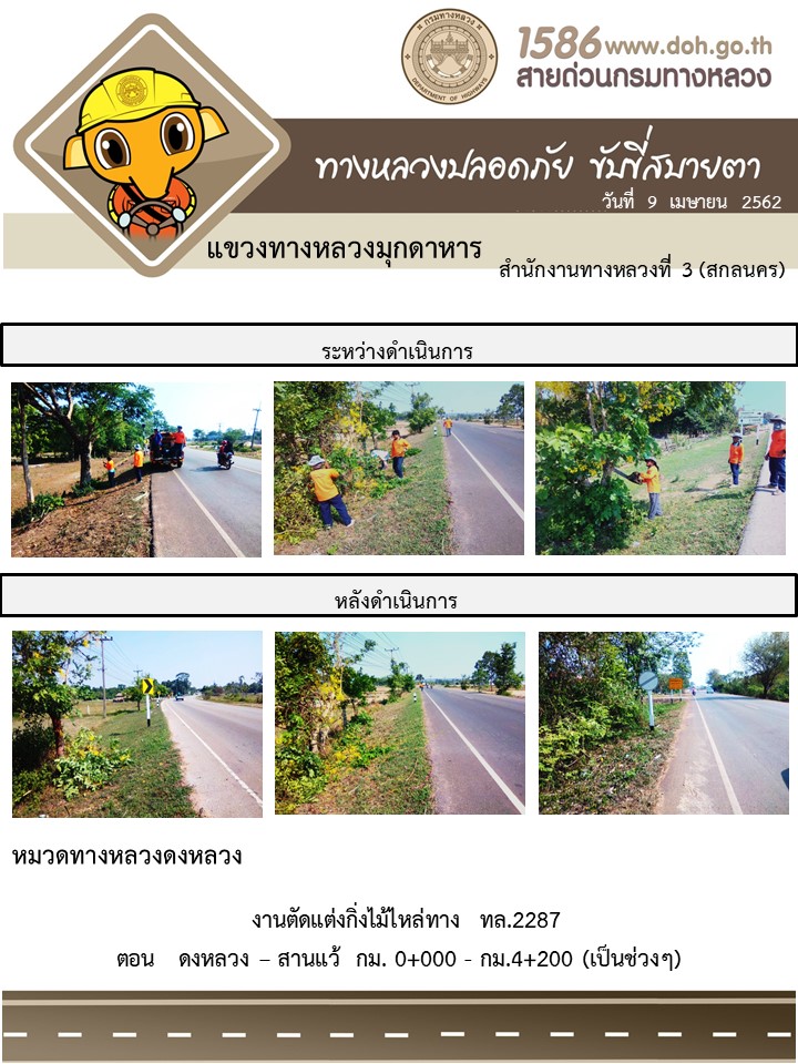 โครงการทางหลวงปลอดภัย ขับขี่สบายตา หน่วยงานในสังกัดแขวง เมษายน 9