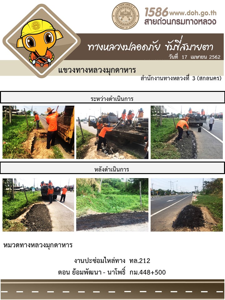 ข้อมูลภาพกิจกรรม : โครงการทางหลวงปลอดภัย ขับขี่สบายตา หน่วยงานในสังกัดแขวง เมษายน 12