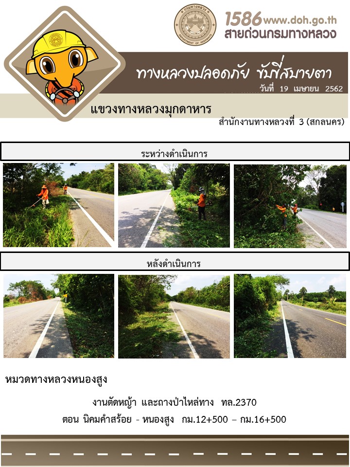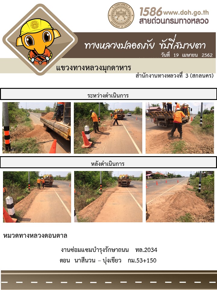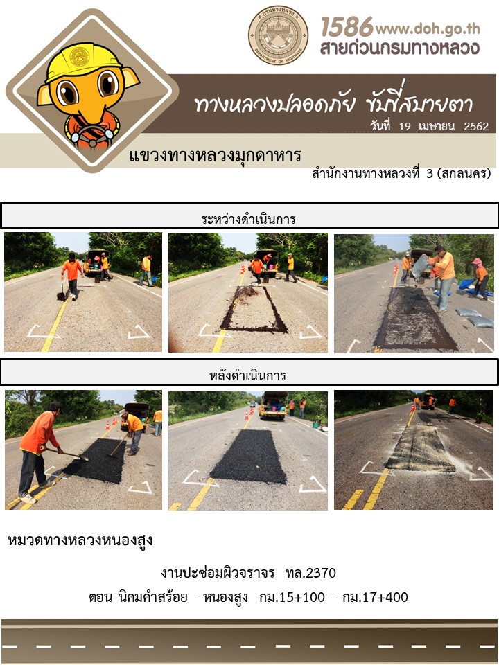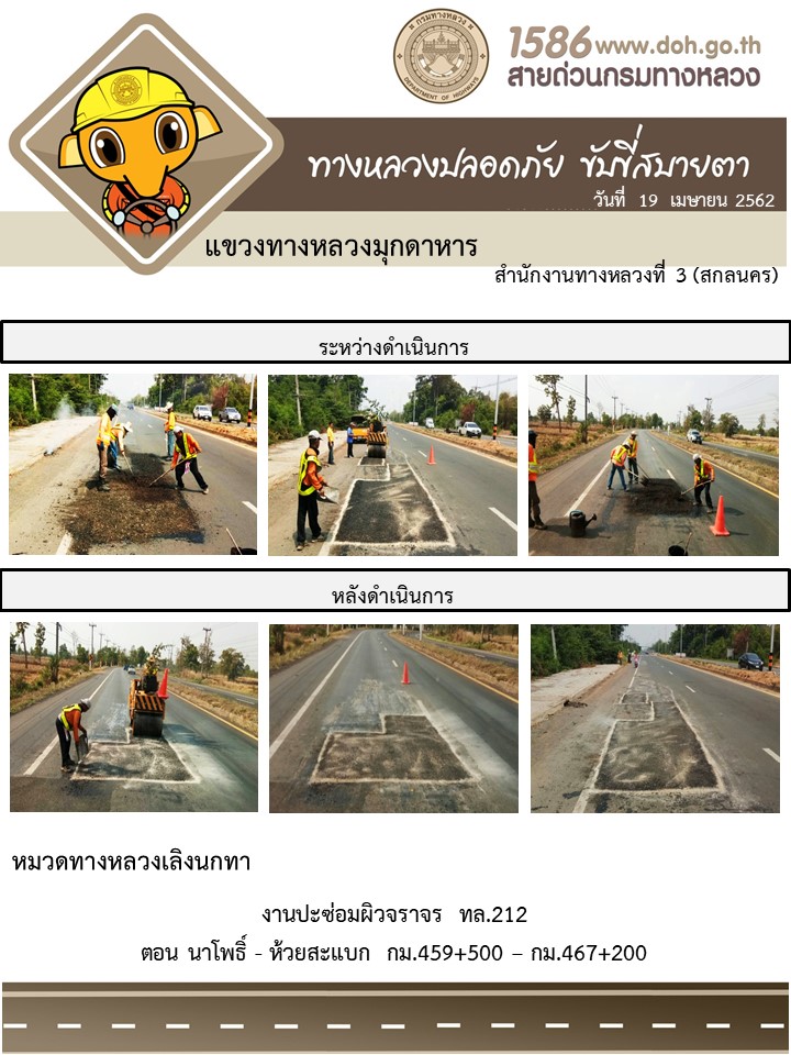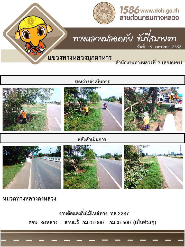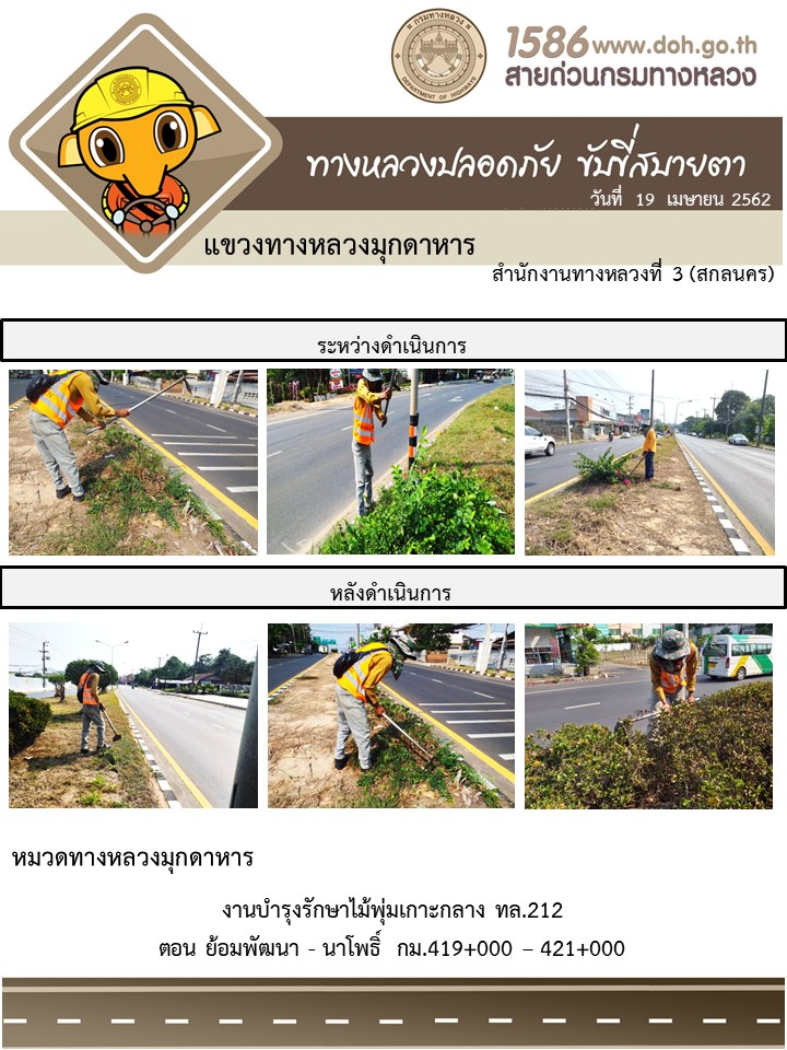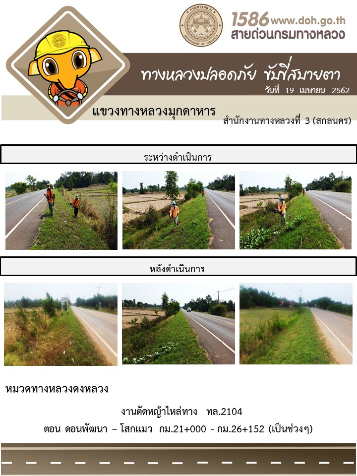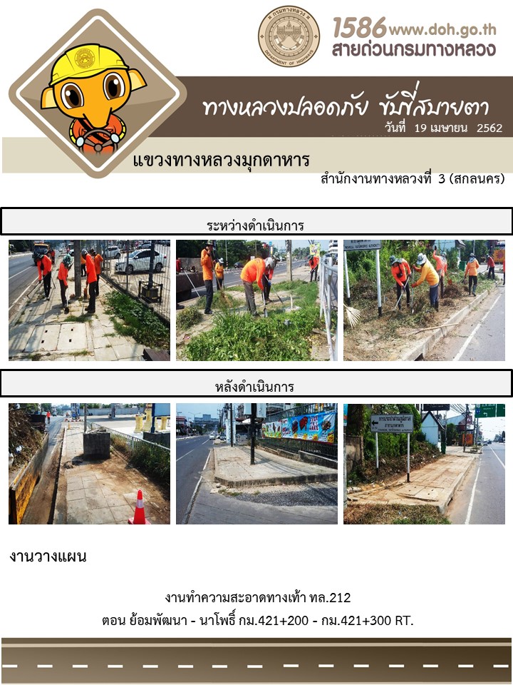 ข้อมูลภาพกิจกรรม : โครงการทางหลวงปลอดภัย ขับขี่สบายตา หน่วยงานในสังกัดแขวง เมษายน 19