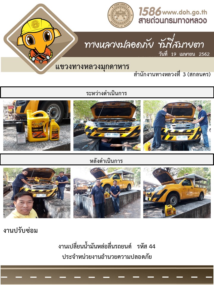 โครงการทางหลวงปลอดภัย ขับขี่สบายตา หน่วยงานในสังกัดแขวง เมษายน 19