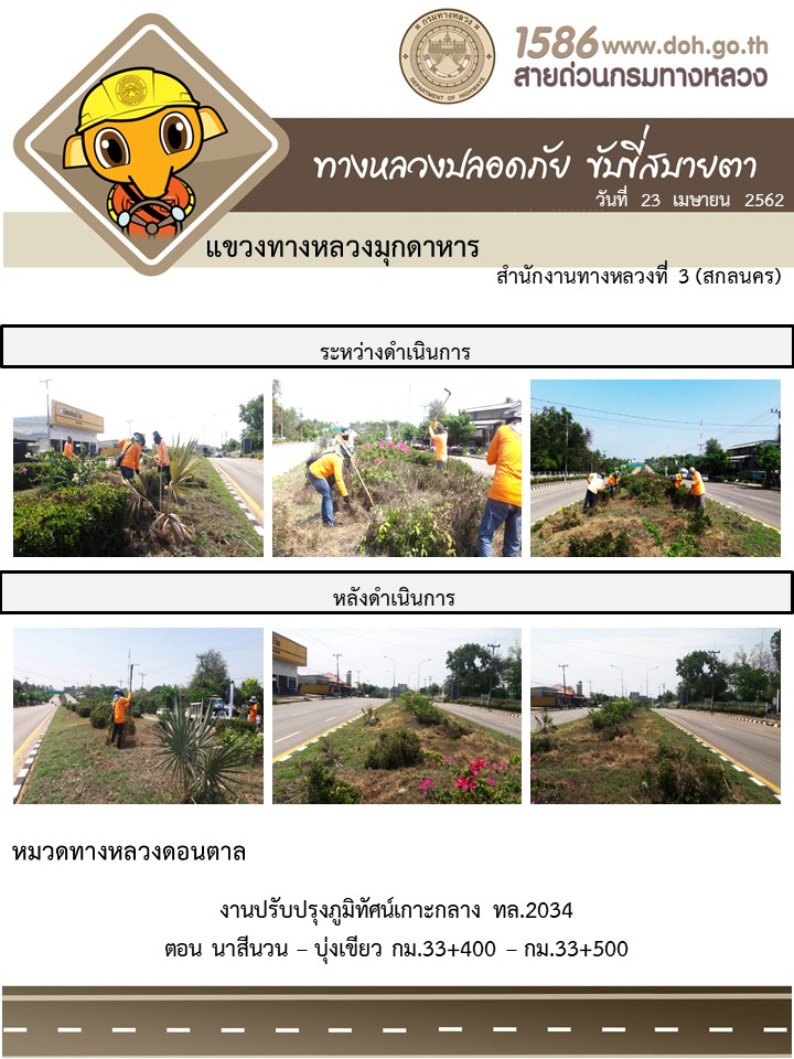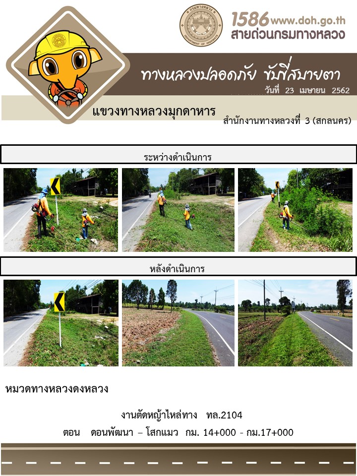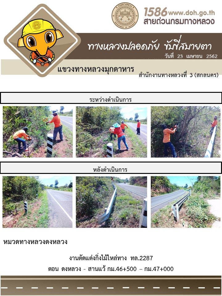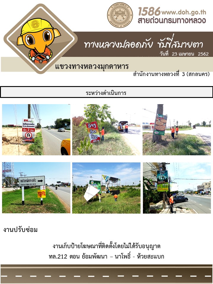 ข้อมูลภาพกิจกรรม : โครงการทางหลวงปลอดภัย ขับขี่สบายตา หน่วยงานในสังกัดแขวง เมษายน 23