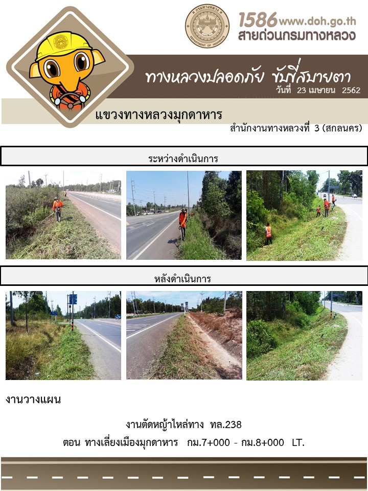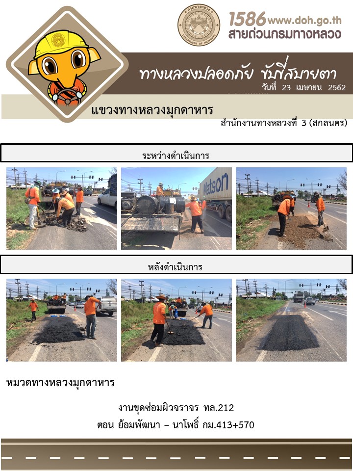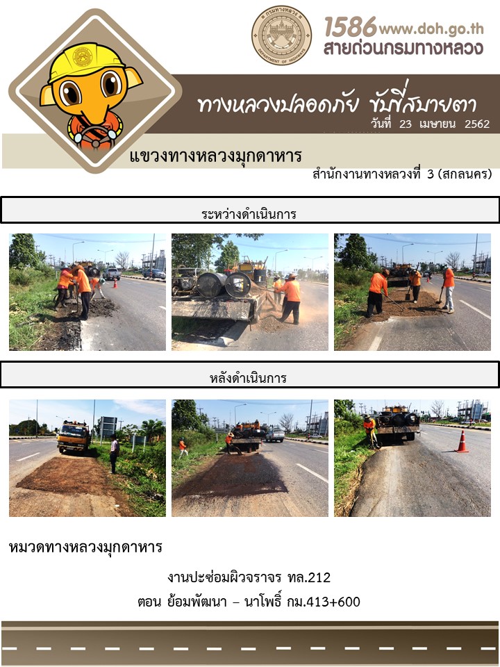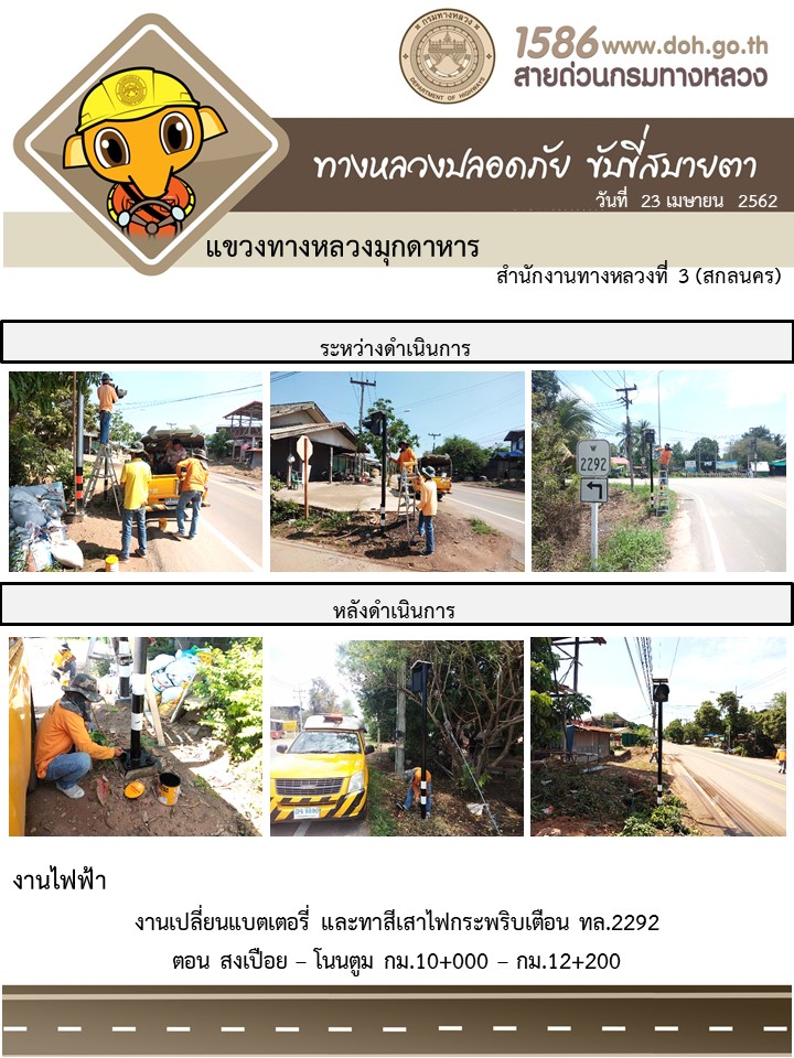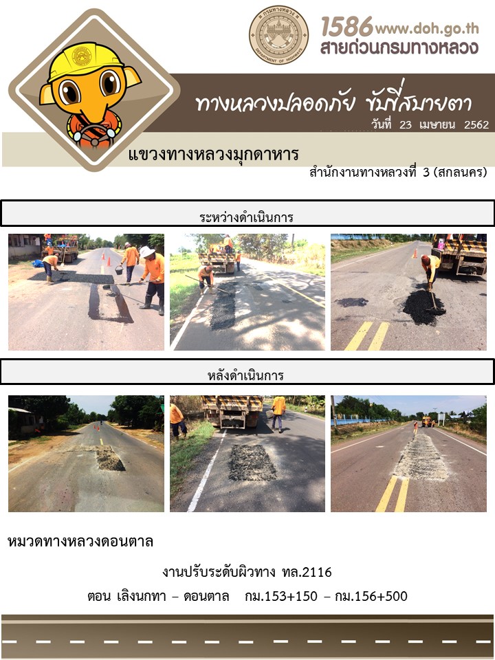 ข้อมูลภาพกิจกรรม : โครงการทางหลวงปลอดภัย ขับขี่สบายตา หน่วยงานในสังกัดแขวง เมษายน 23