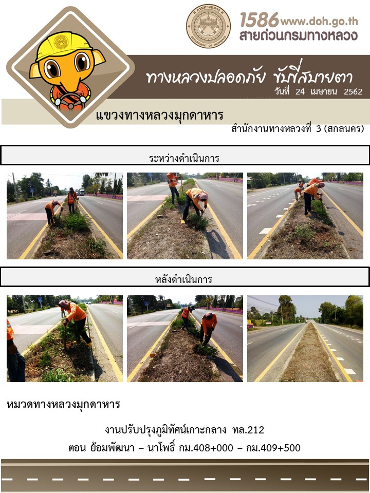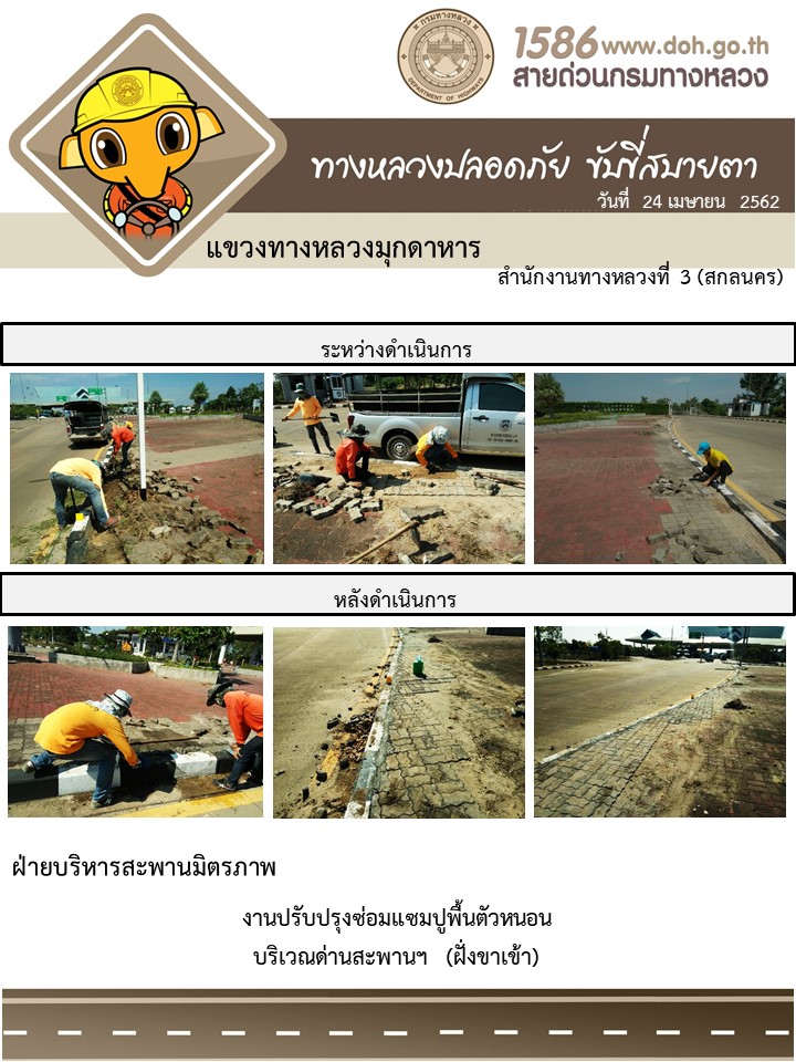 โครงการทางหลวงปลอดภัย ขับขี่สบายตา หน่วยงานในสังกัดแขวง เมษายน 24