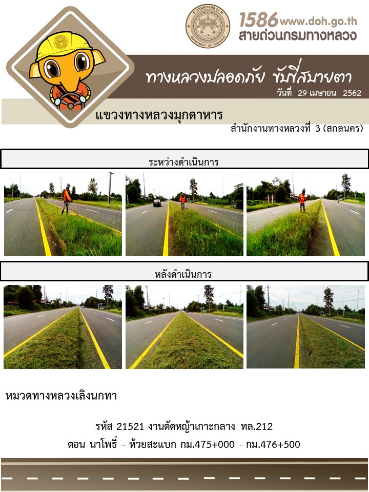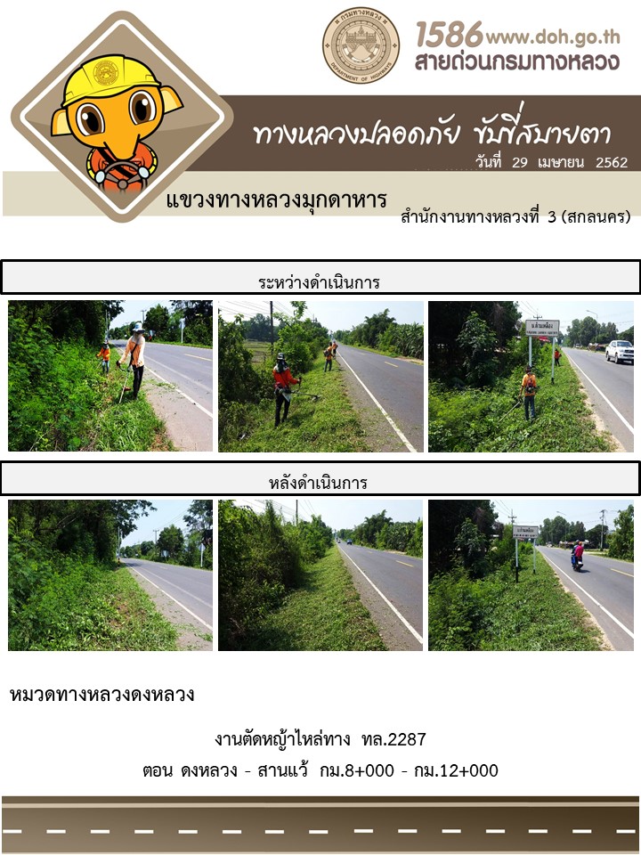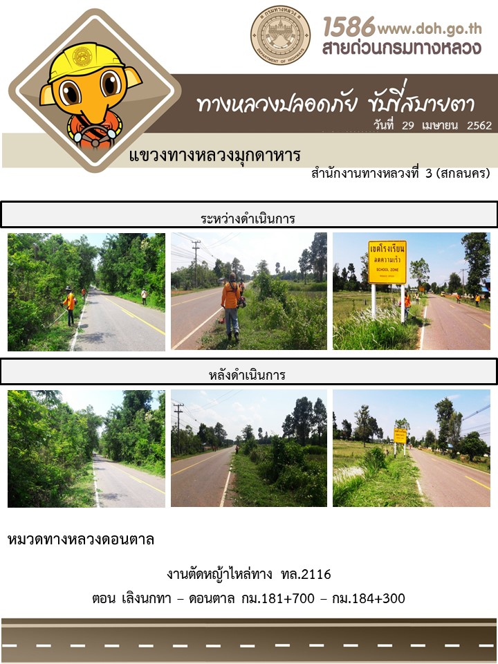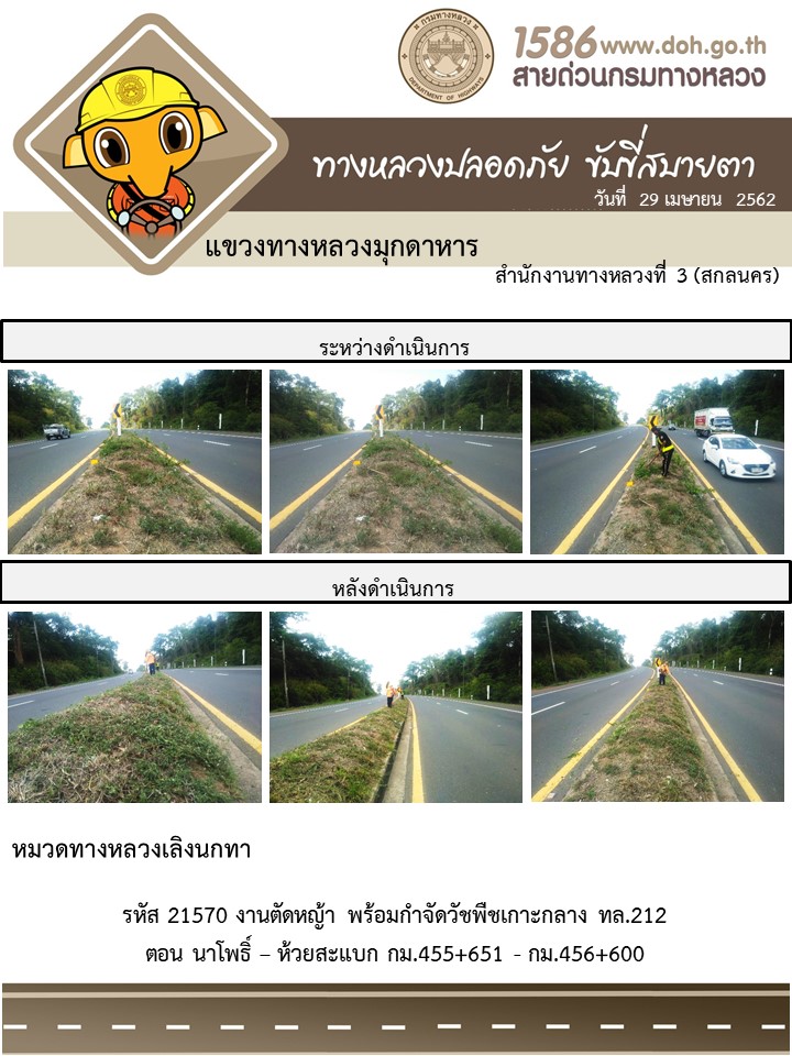 โครงการทางหลวงปลอดภัย ขับขี่สบายตา หน่วยงานในสังกัดแขวง เมษายน 29