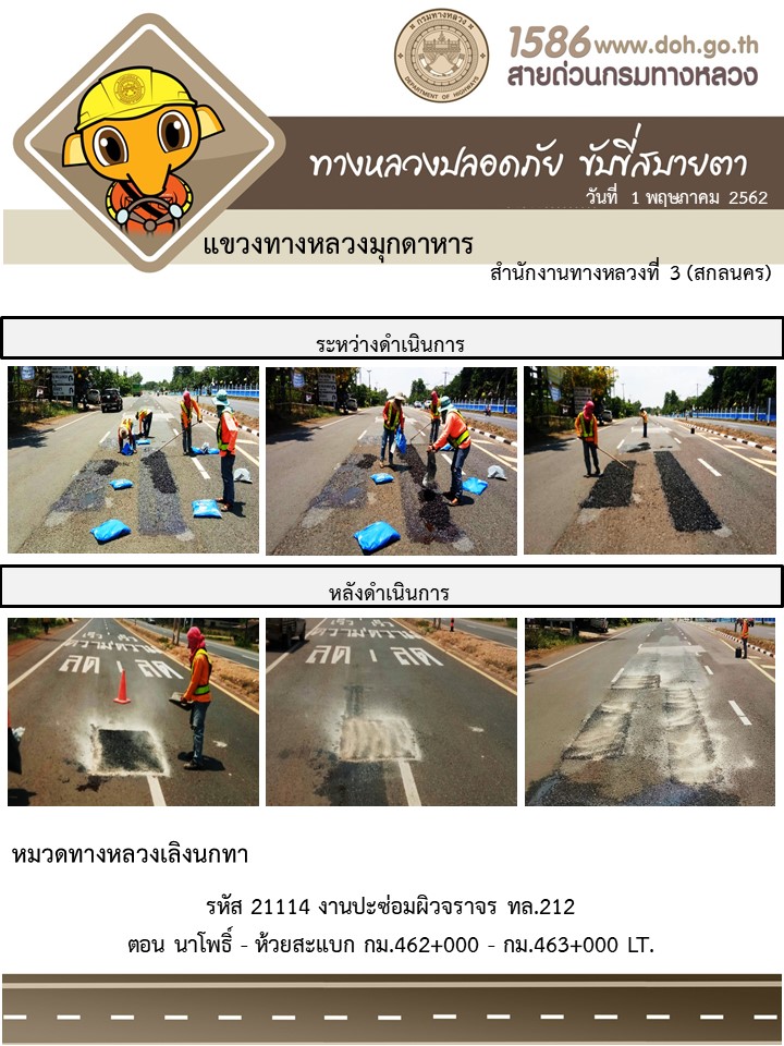 โครงการทางหลวงปลอดภัย ขับขี่สบายตา หน่วยงานในสังกัดแขวง พฤษภาคม 1