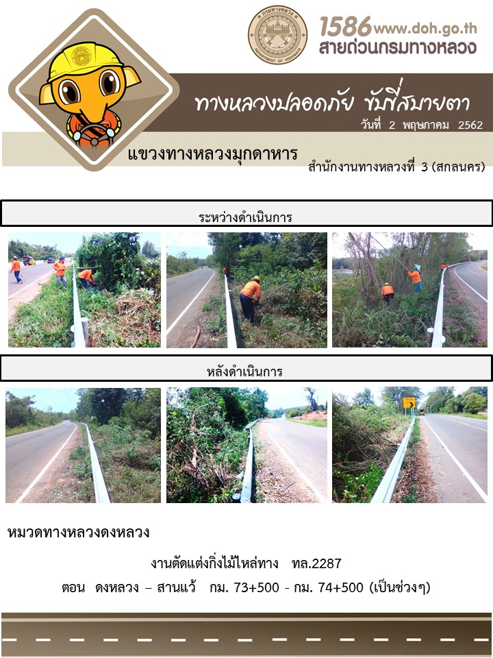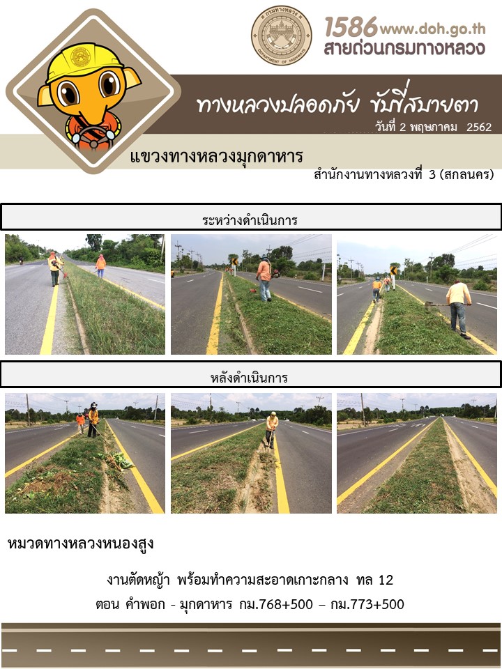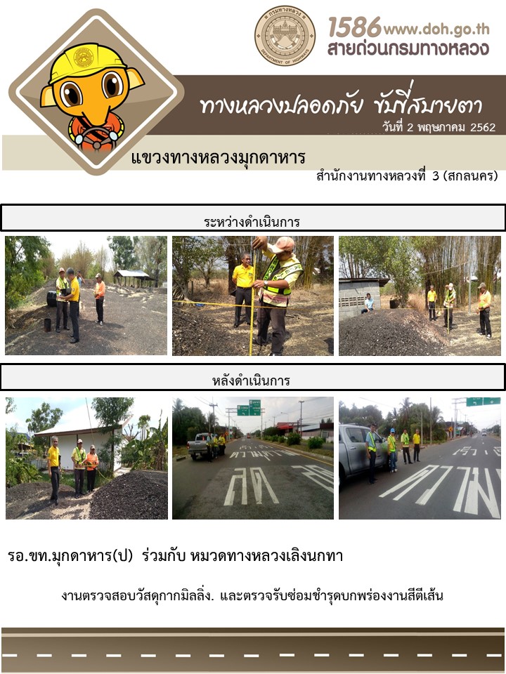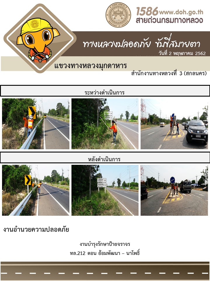 ข้อมูลภาพกิจกรรม : โครงการทางหลวงปลอดภัย ขับขี่สบายตา หน่วยงานในสังกัดแขวง พฤษภาคม 2