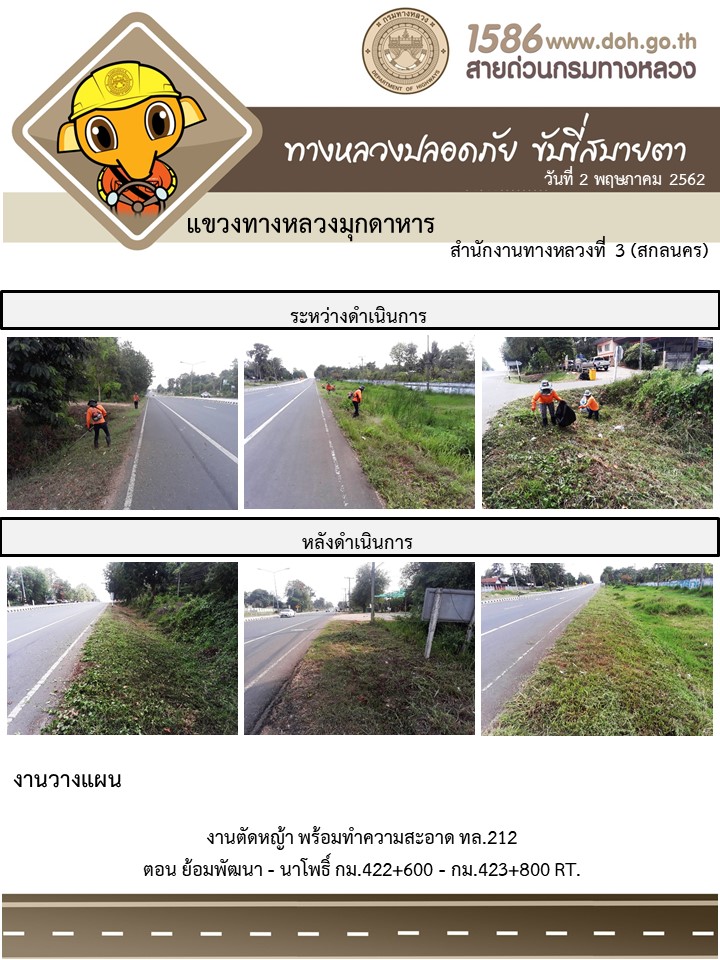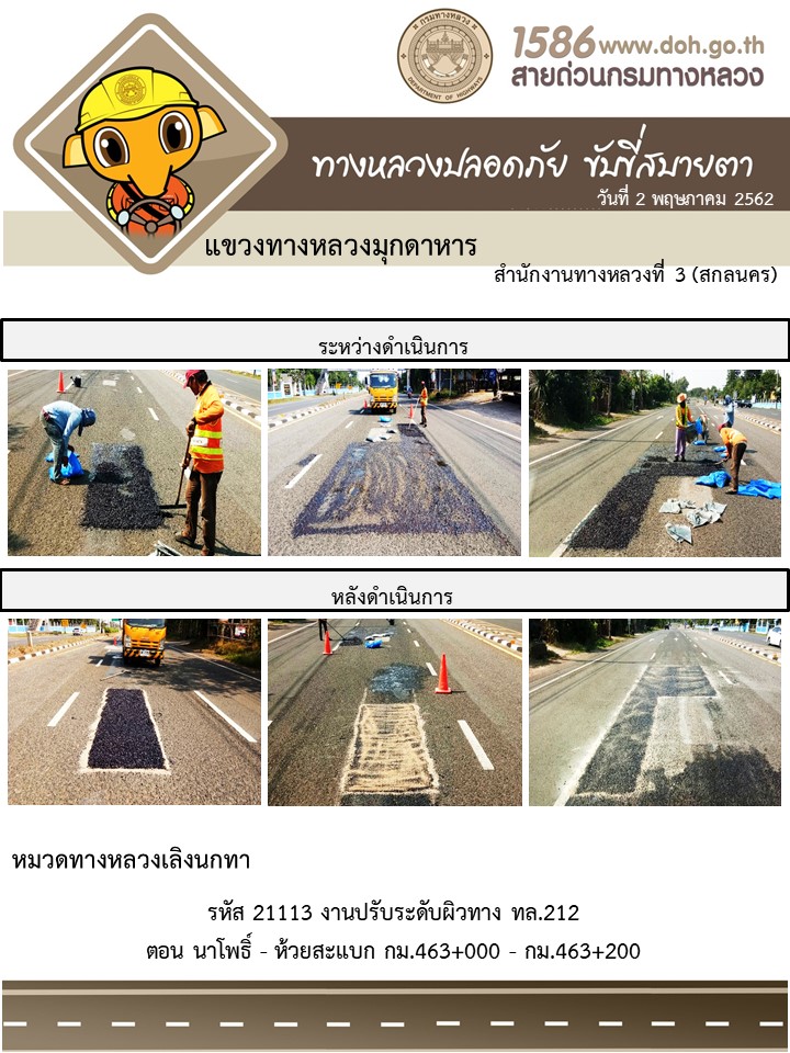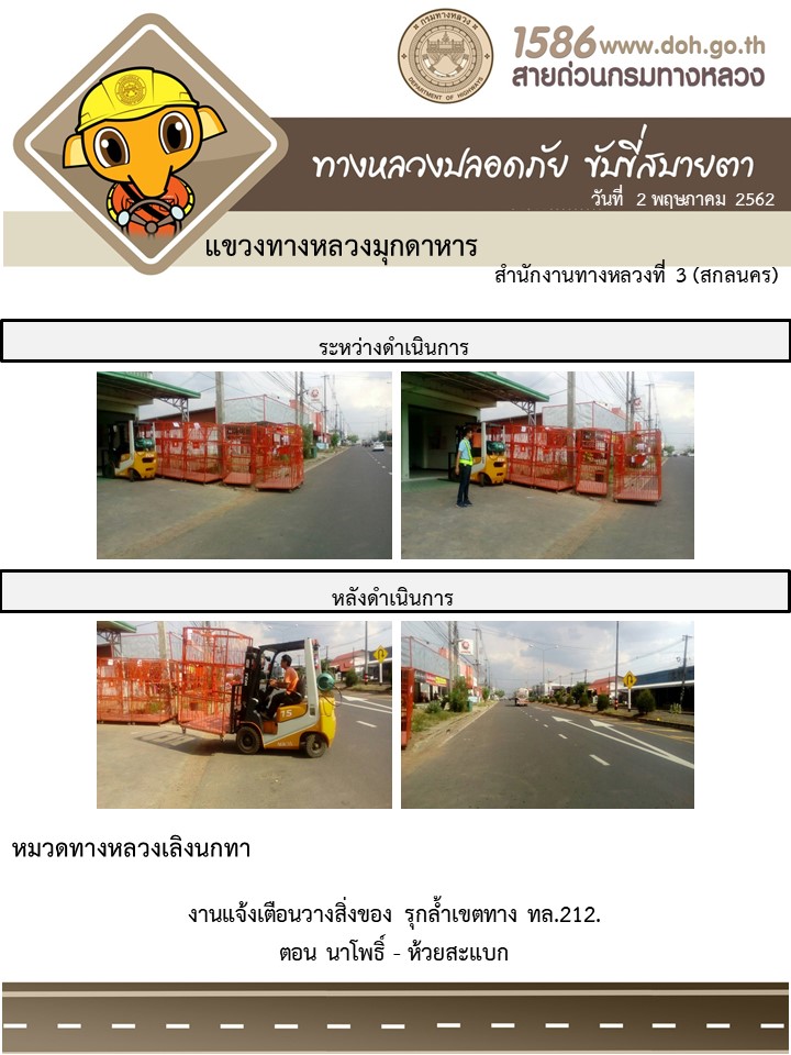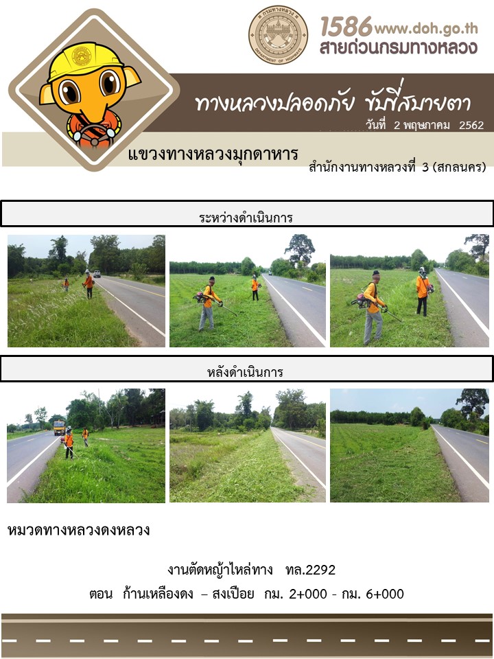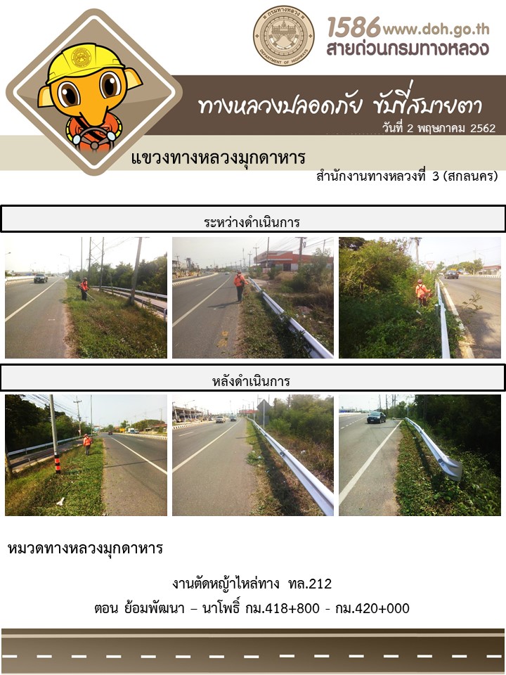 ข้อมูลภาพกิจกรรม : โครงการทางหลวงปลอดภัย ขับขี่สบายตา หน่วยงานในสังกัดแขวง พฤษภาคม 2
