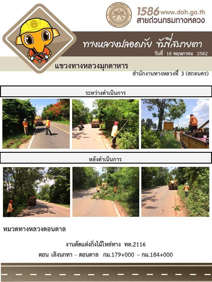 โครงการทางหลวงปลอดภัย ขับขี่สบายตา หน่วยงานในสังกัดแขวง พฤษภาคม 16